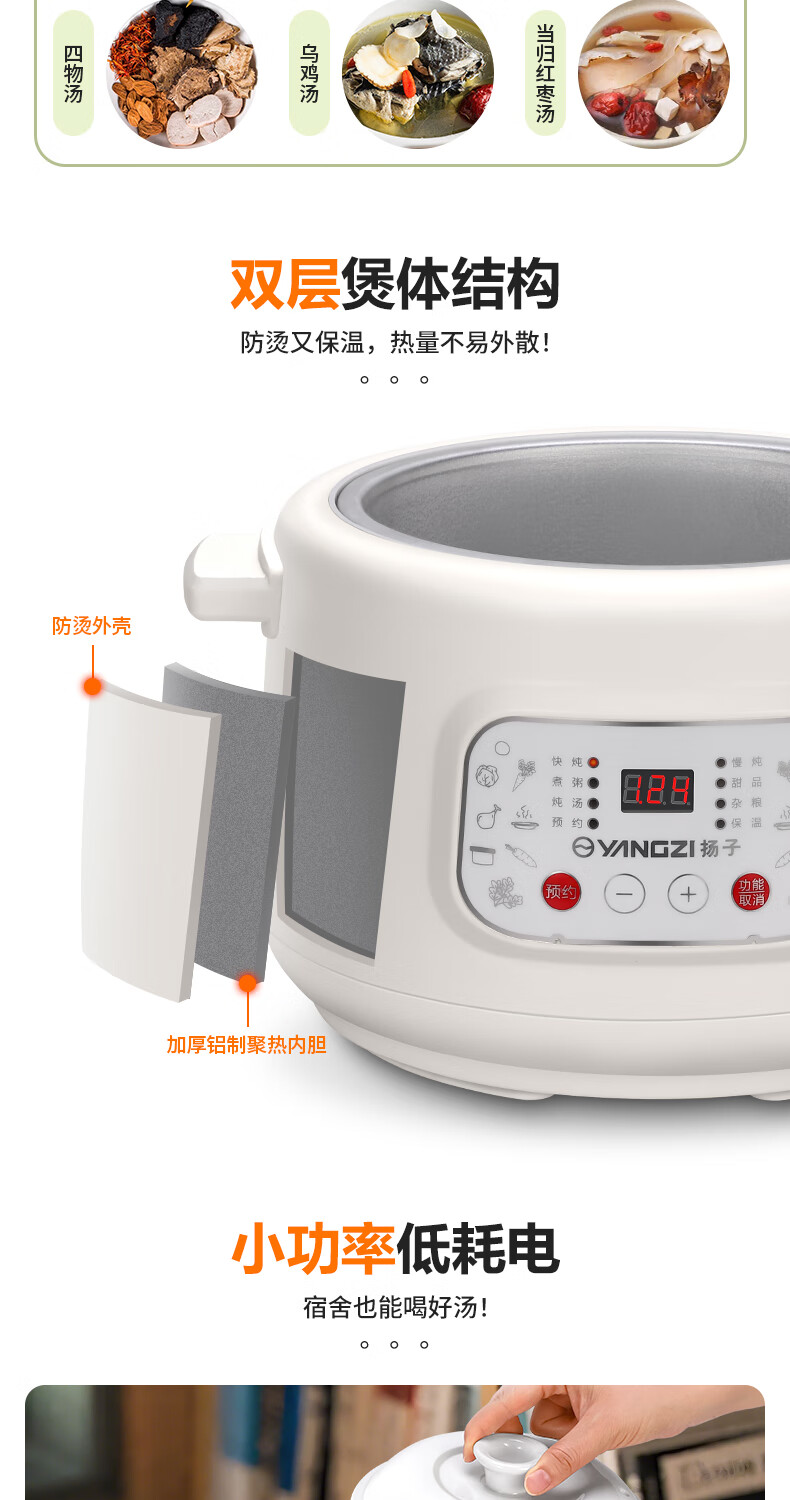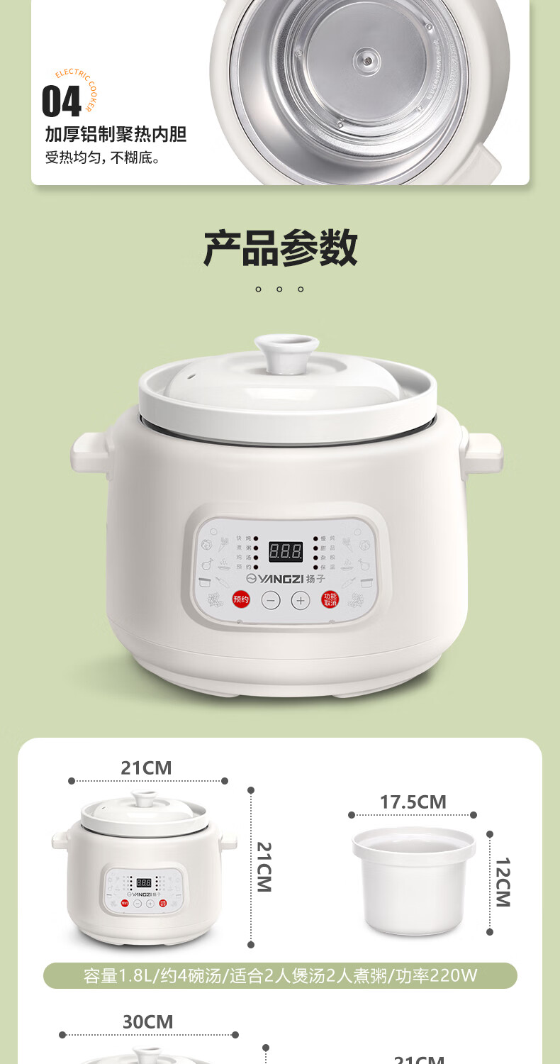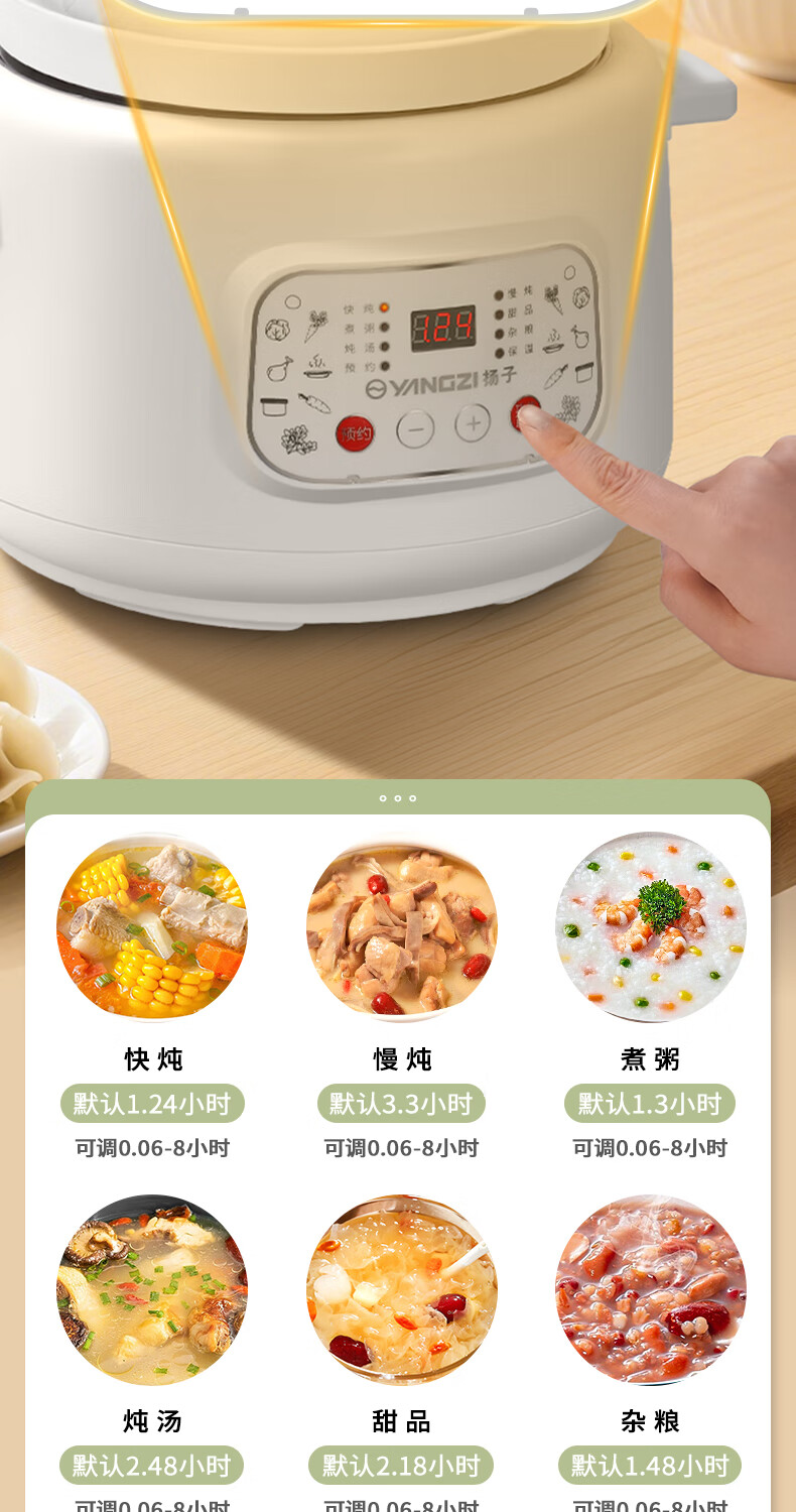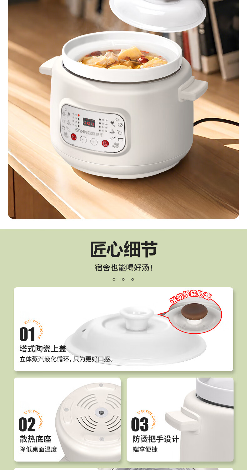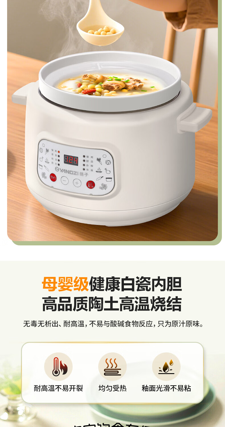 Yangzi electric stew pot, fully automatic ceramic soup cooker, can cook soup for 3-4 people. 3-liter household electric casserole can cook soup for 3-4 people. It can be slow-cooked and can be simmered quickly. It can be multi-functional for cooking millet porridge. It can be reserved and kept warm. 2.8L white porcelain inner pot can be simmered quickly for 1-4 people.