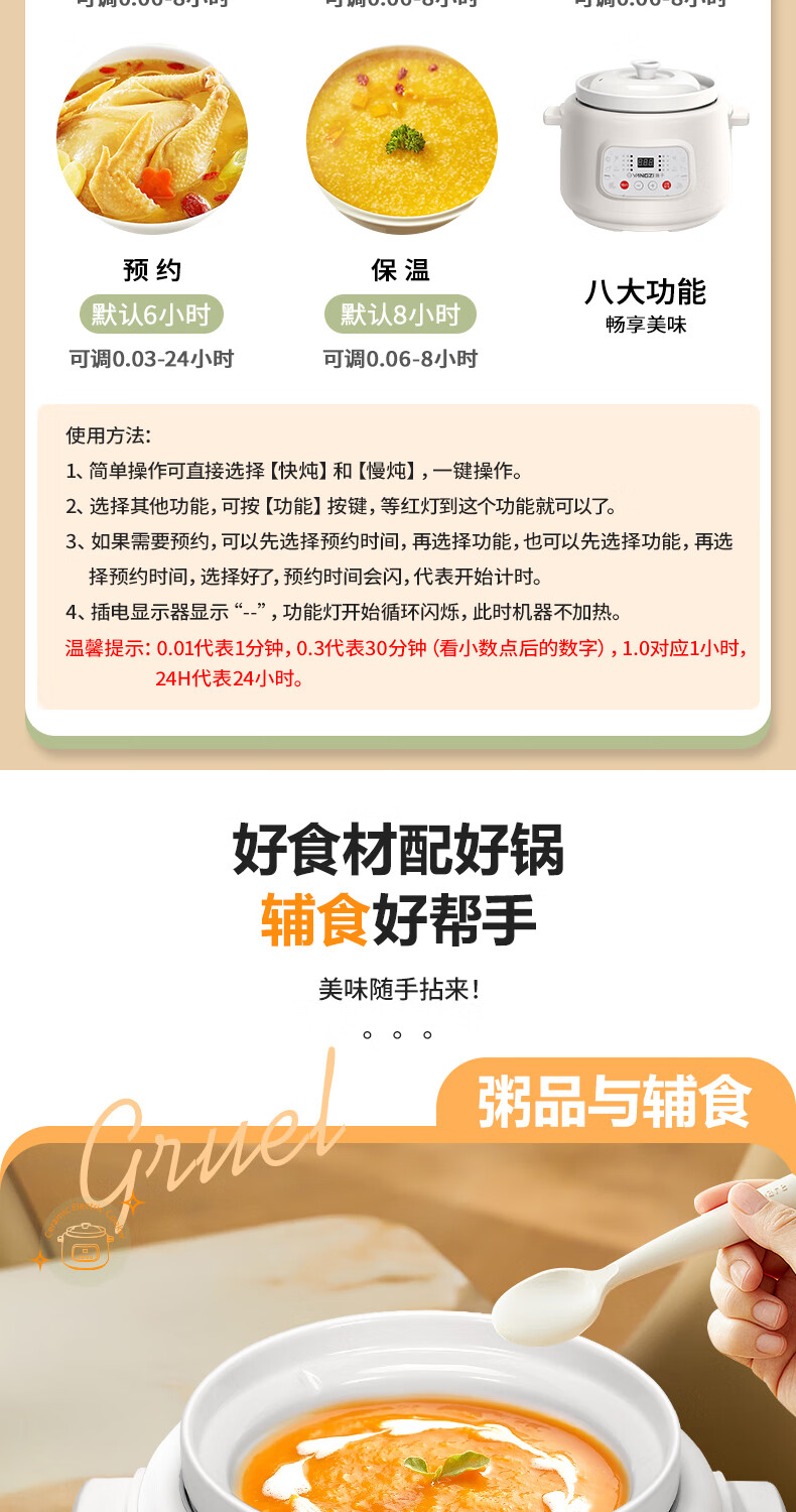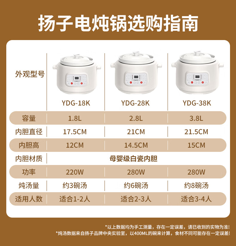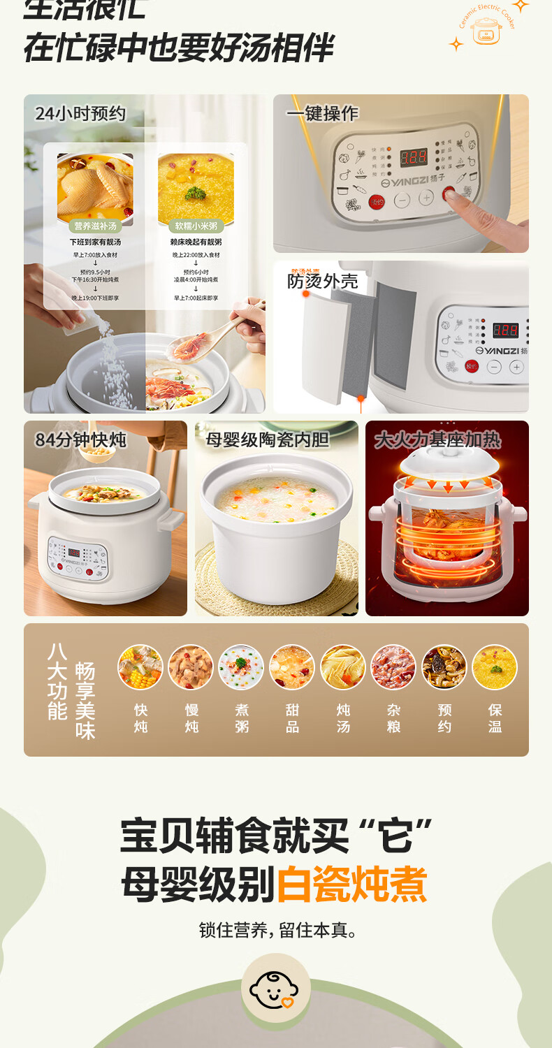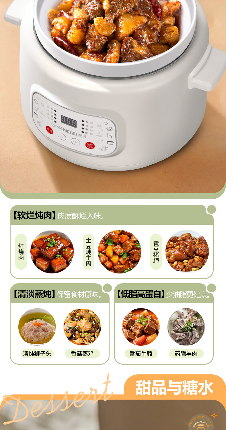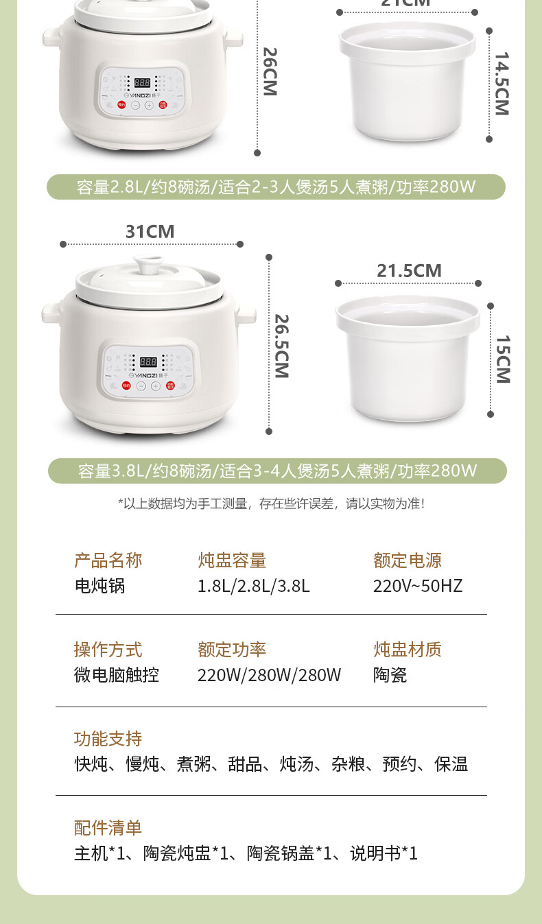 Yangzi electric stew pot, fully automatic ceramic soup cooker, can cook soup for 3-4 people. 3-liter household electric casserole can cook soup for 3-4 people. It can be slow-cooked and can be simmered quickly. It can be multi-functional for cooking millet porridge. It can be reserved and kept warm. 2.8L white porcelain inner pot can be simmered quickly for 1-4 people.