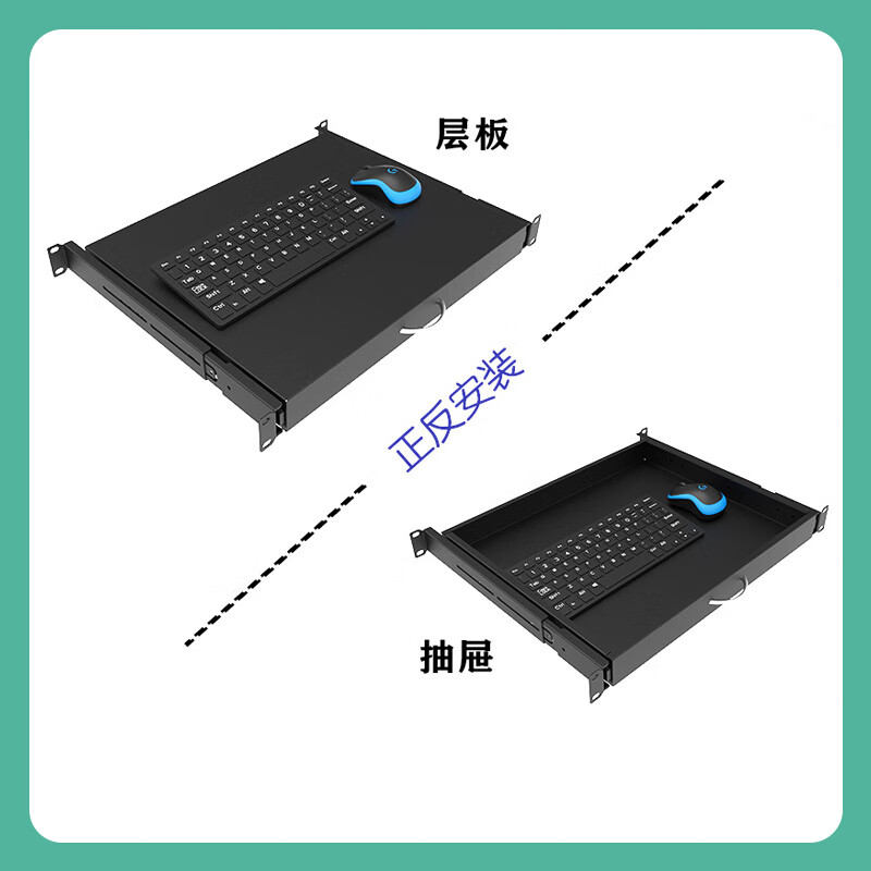 Network cabinet sliding layer thickened 1U drawer keyboard tray telescopic tray computer room keyboard and mouse storage rack monitor bracket + keyboard drawer (combination) 1x1x1cm