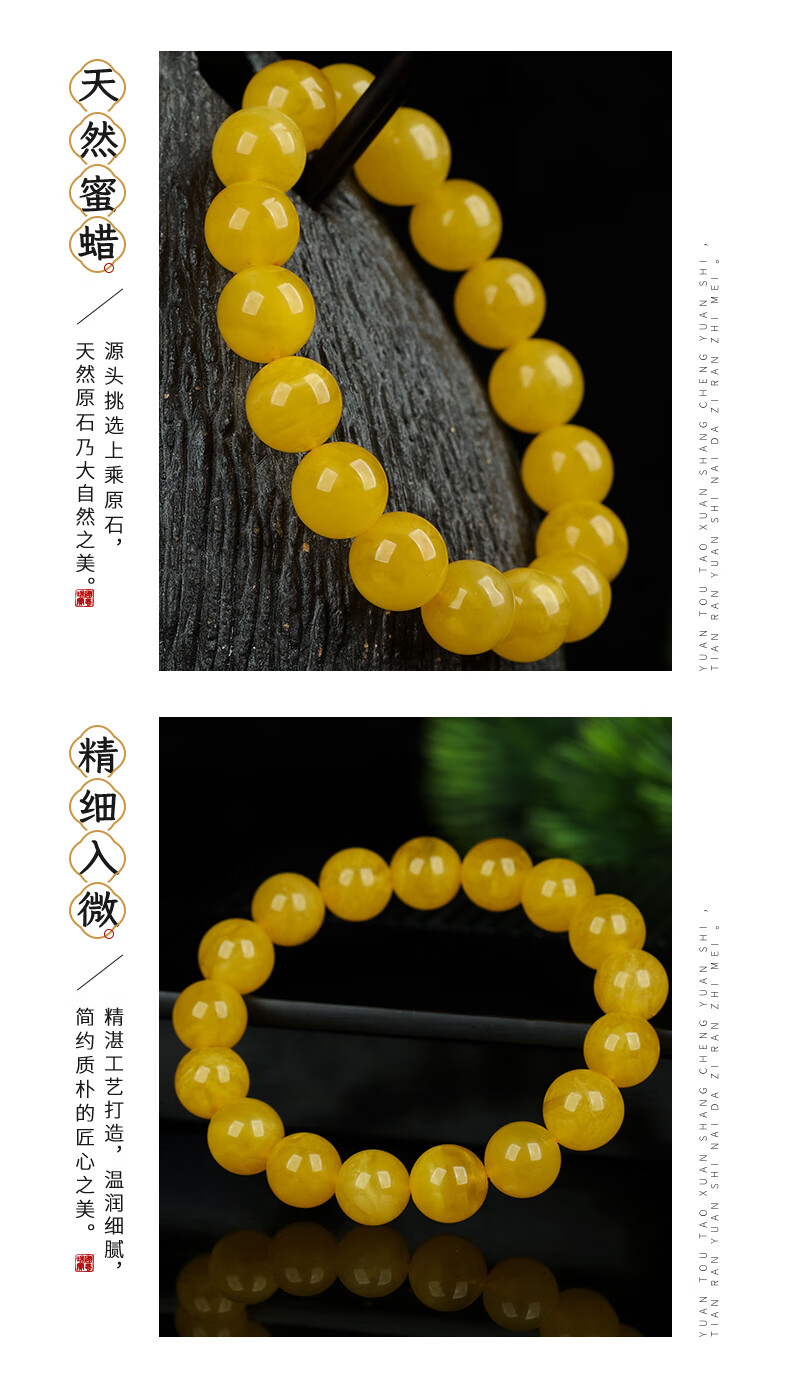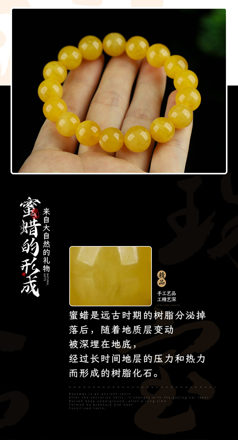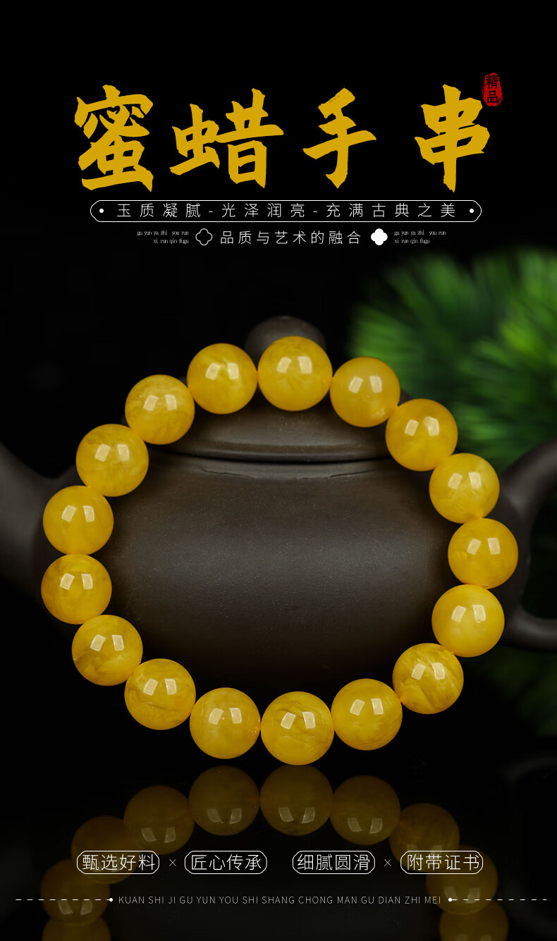 OUCERNY beeswax bracelet, burnt leather unique product, natural raw stone amber round bead dense and non-optimized chicken fat yellow bracelet, natural unique product, one item, one certificate, one shot
