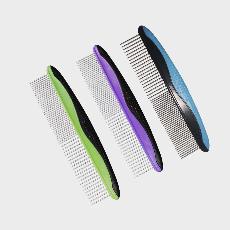 Dog comb steel comb pet comb to remove floating hair Samoyed Bichon golden hair removal beauty brush cat special comb dense double tooth comb - purple