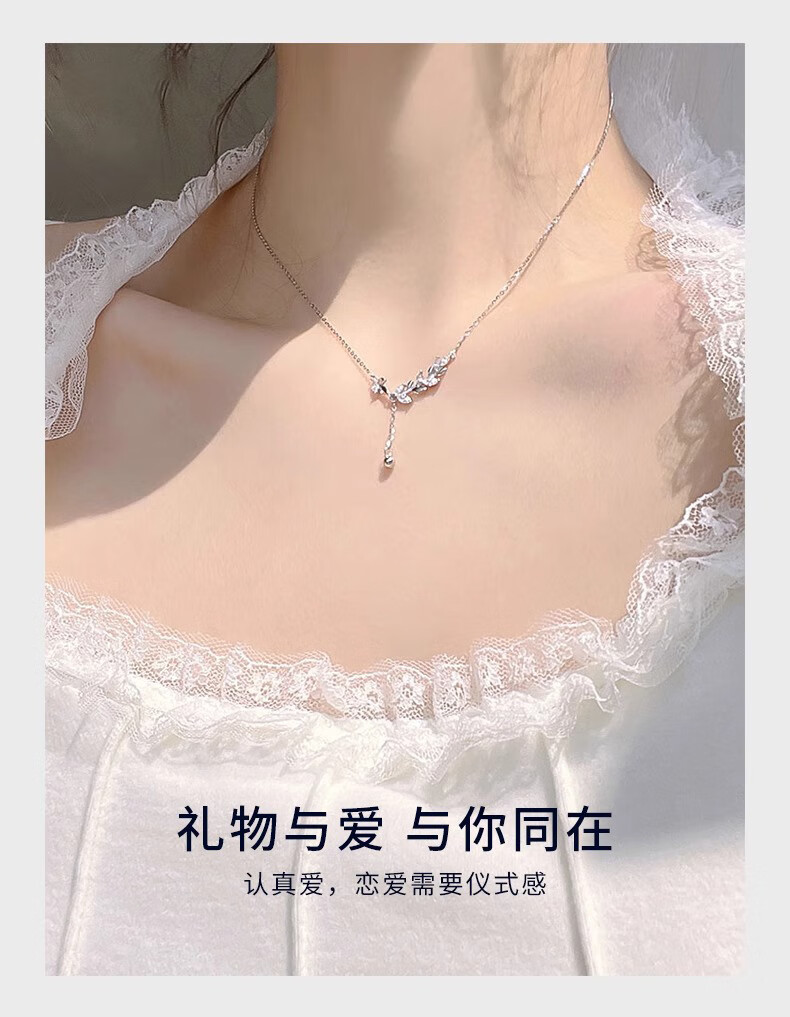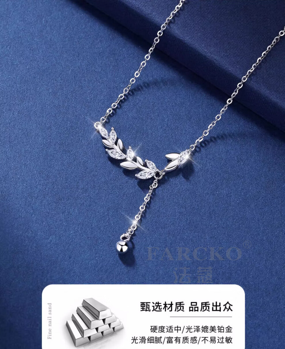 Fakou pt950 platinum necklace women's wheat ear platinum clavicle chain Valentine's Day birthday gift for girlfriend and wife pt950 platinum necklace + wheat ear pendant