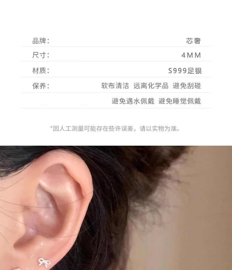 Xinshe s999 sterling silver wishful knot earrings for women with pierced ears, pure silver screw twist buckle anti-lost earrings, niche high-end earrings, silver pair, 999 pure silver