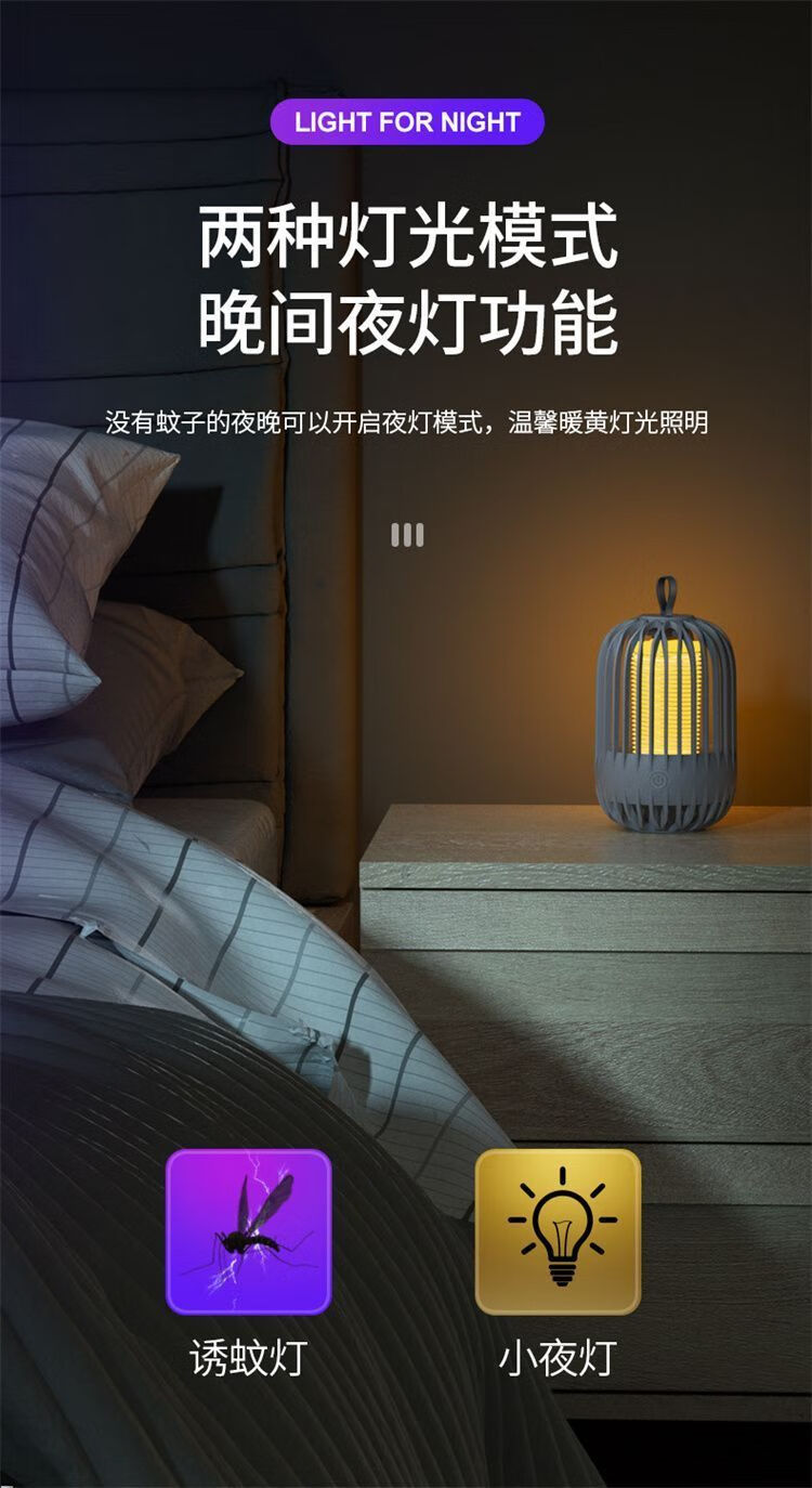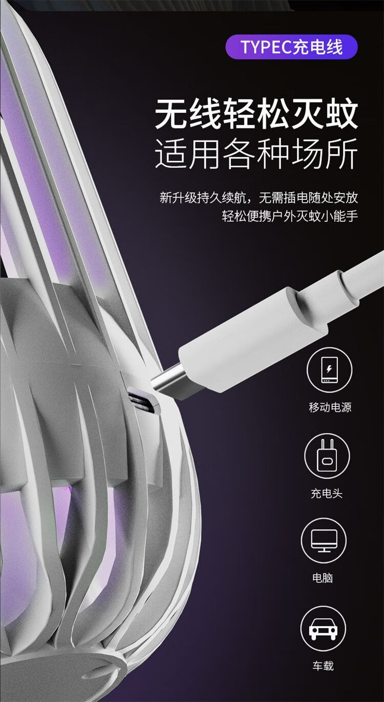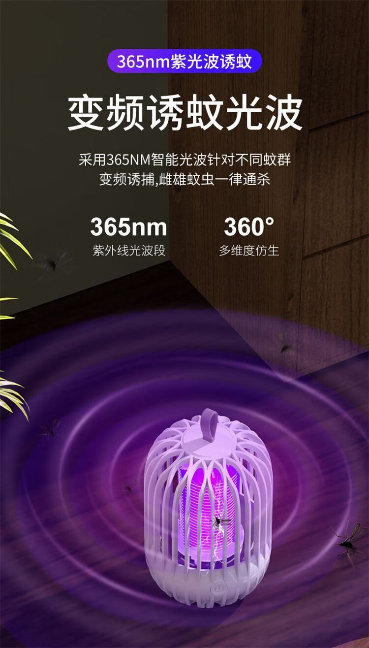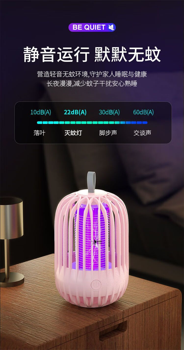 小米部依潮流护理电器鸟笼灭蚊灯USB家用户外露营灭蚊器充电式全自动静音驱蚊器 樱花粉+数据线 直插款