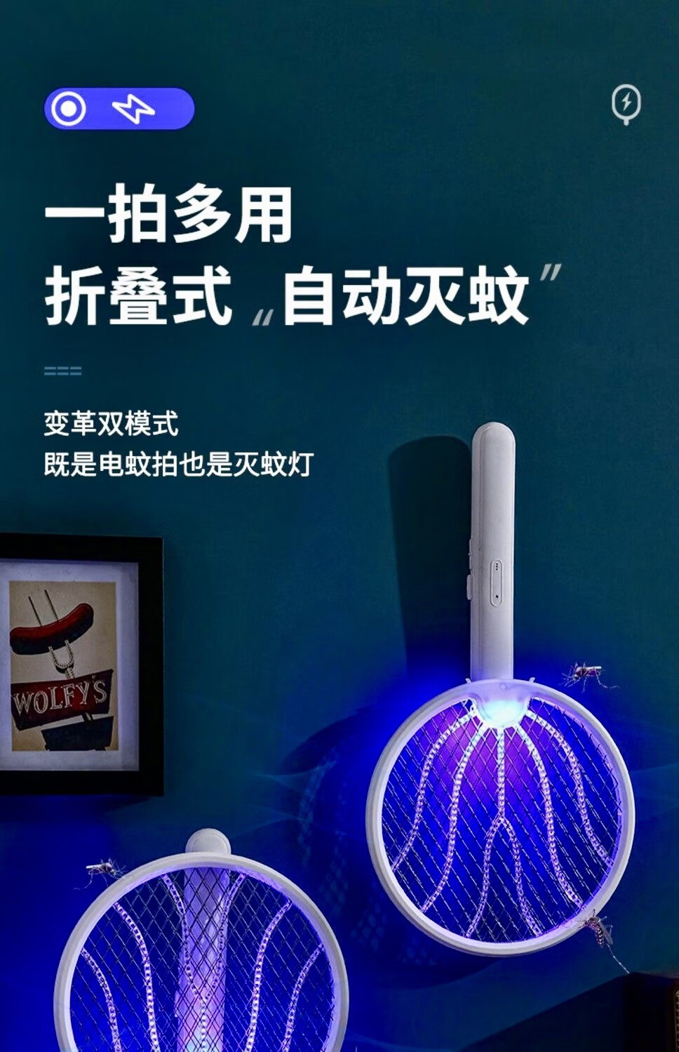 Xiaomi's trend care appliance electric mosquito swatter, mosquito killer lamp, mosquito killer swatter, foldable household two-in-one rechargeable automatic mosquito trap, powerful mosquito repellent 2025 new folding mosquito swatter丨silent mosquito trap丨automatic electric mosquito