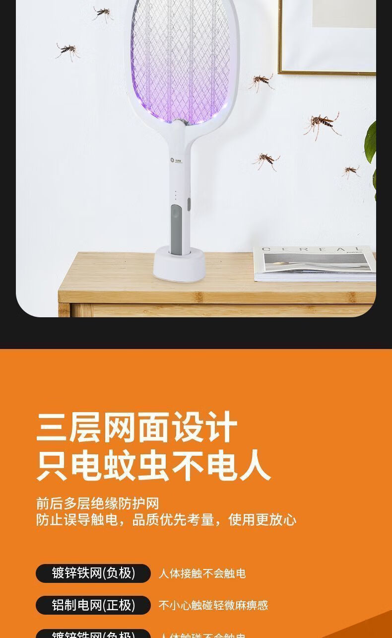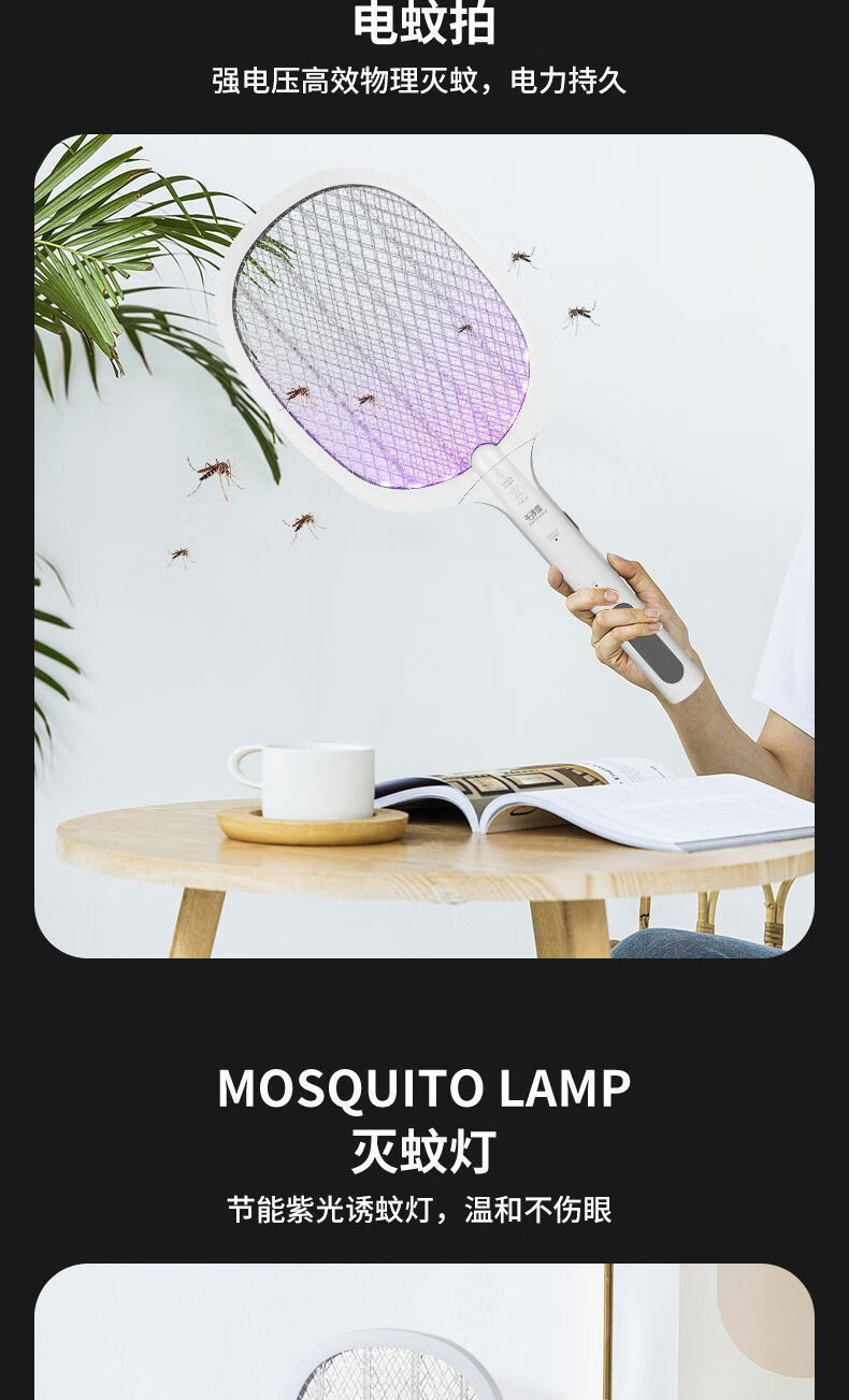 Xiaomi Buyi Trend Care Appliances Home Electric Mosquito Swatter Rechargeable Powerful Two-in-One Lithium Battery Mosquito Killer Lamp Electric Mosquito Swatter Fly Swatter Mosquito Killer Artifact Recommended Exclusive Model 12x Purple Light Mosquito Attraction #99999m