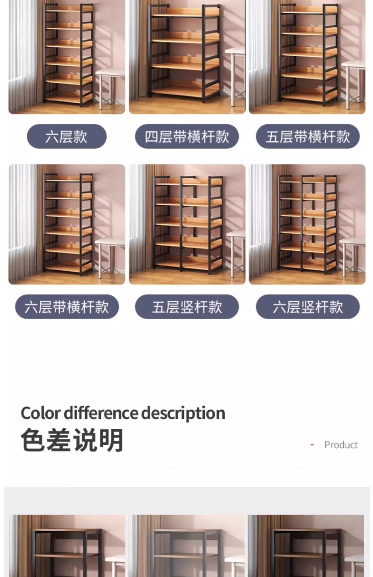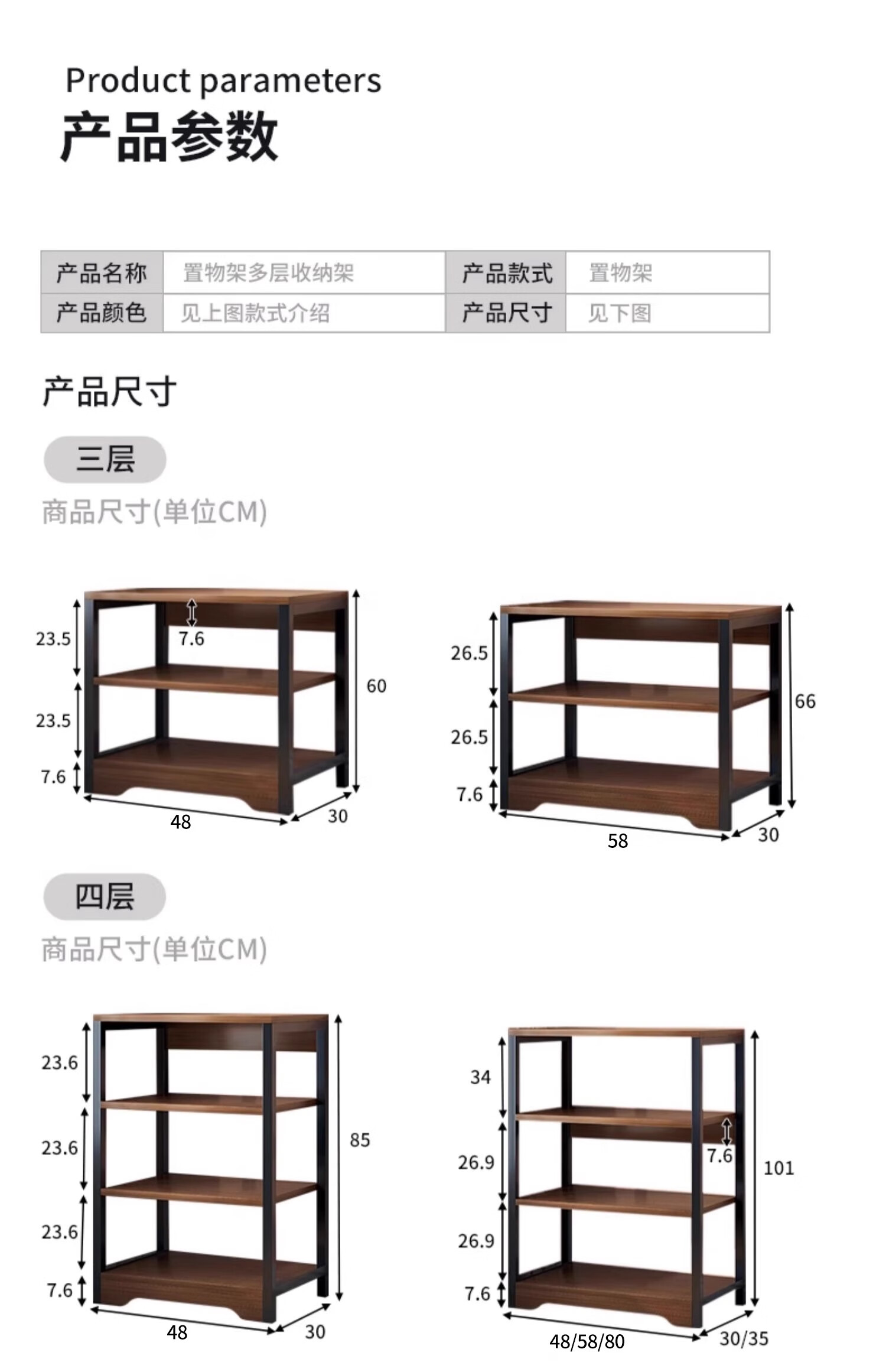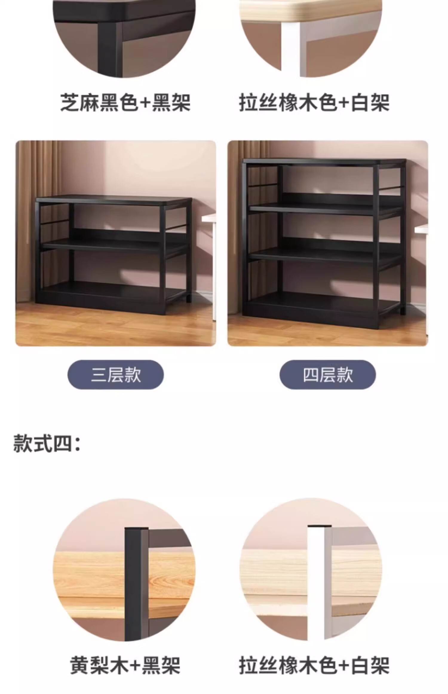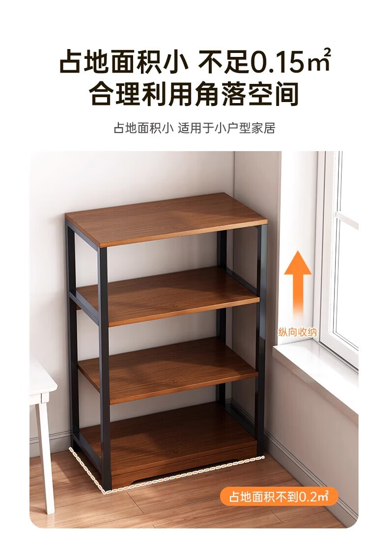 Litai rack floor-standing storage rack multi-functional all-in-one wall storage cabinet shelf multi-layer kitchen storage cabinet shelf recommended by the store manager 3-layer black oak color 48*60
