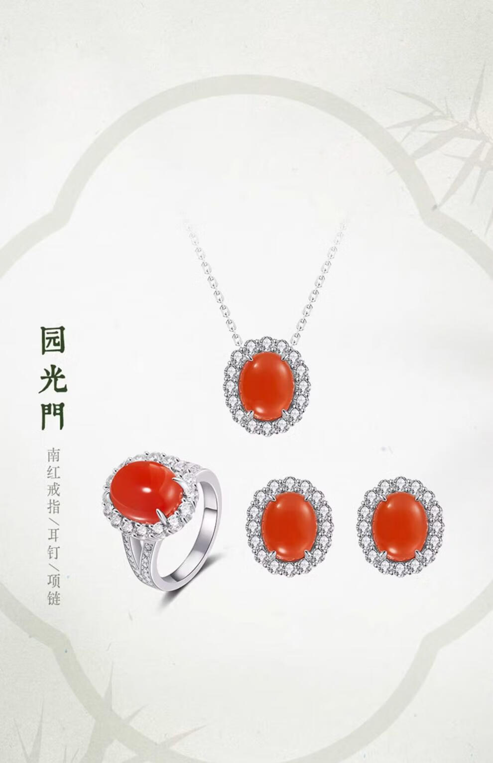 CIGA LONG Yuanguangmen Nanhong Ring Earrings Ring Dongfang Youran New Chinese Style Jewelry Yuanguangmen Nanhong Earrings