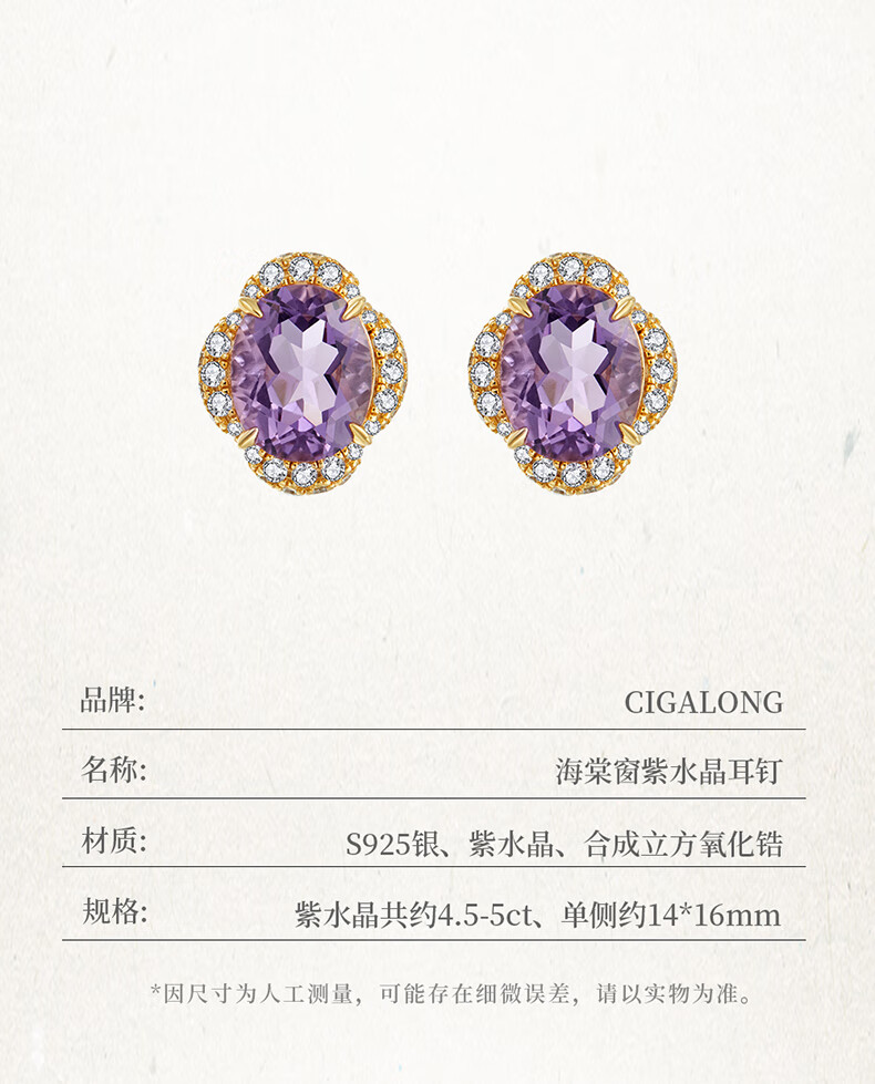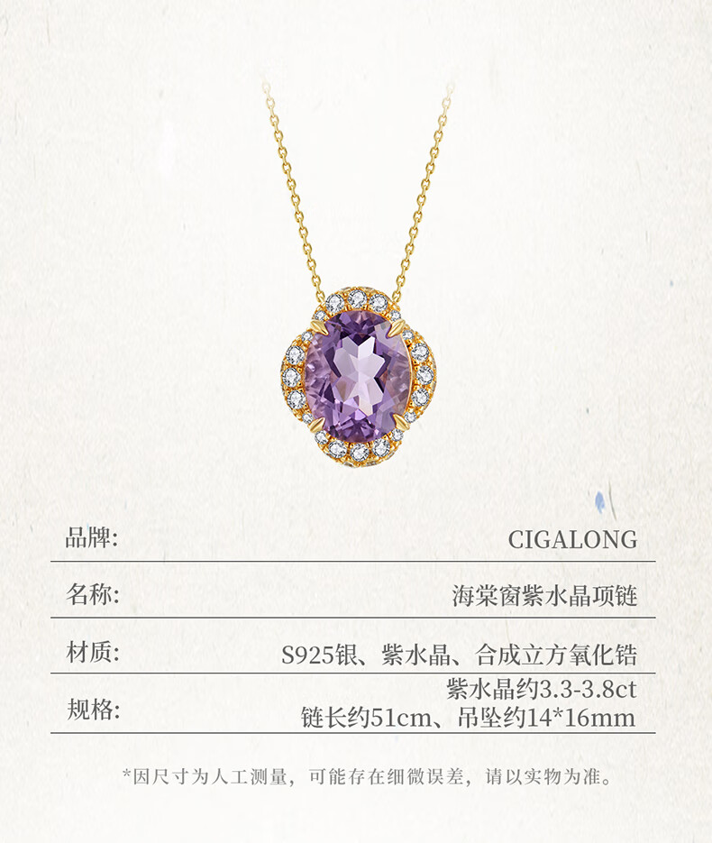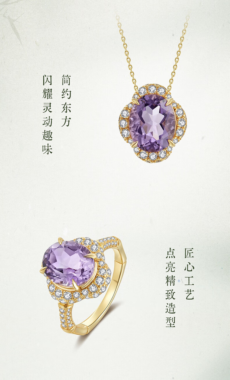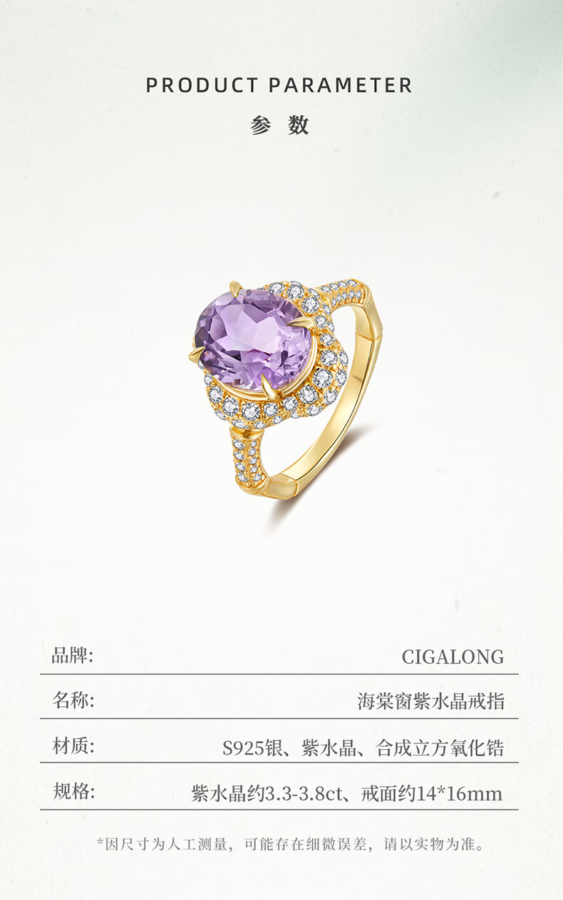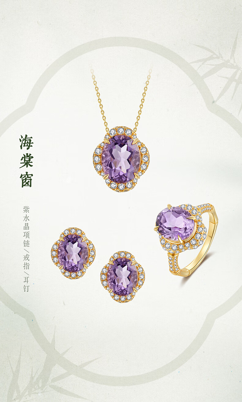 CIGA LONG Begonia Window Amethyst Ring Earrings Necklace Oriental Leisure Minimalist New Chinese Style Jewelry Begonia Window Amethyst Ring 15-16