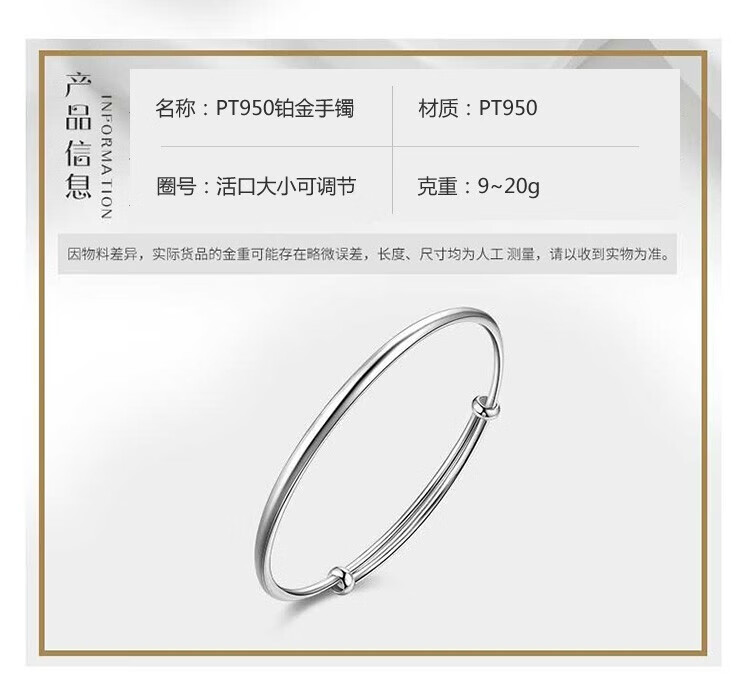 Jintiandi Platinum Push-pull Bracelet PT950 Smooth Round Rod Closed Bracelet Live Mouth Adjustable Size Gift for Wife 30.91g If the difference in weight is greater, refund or make up less.