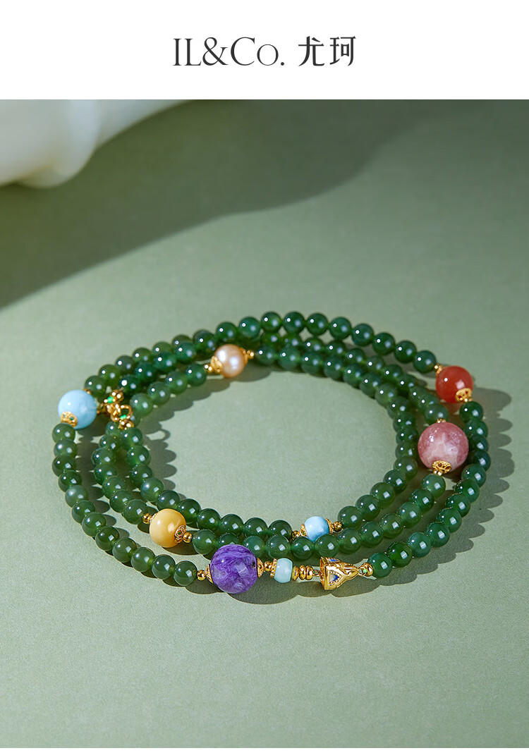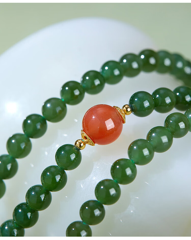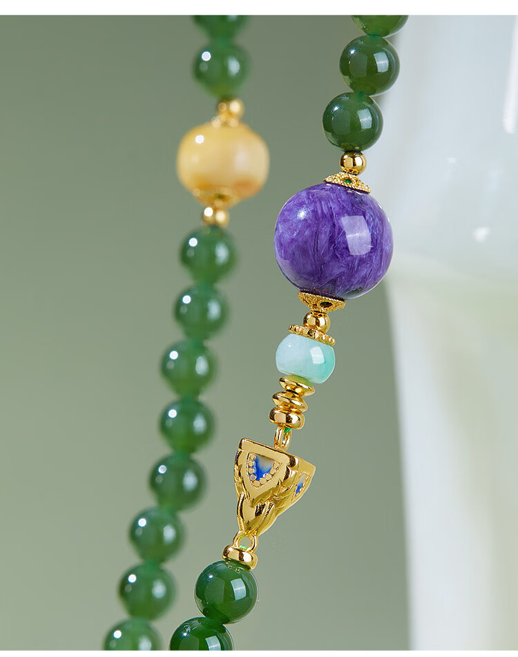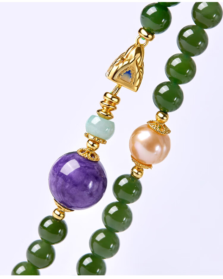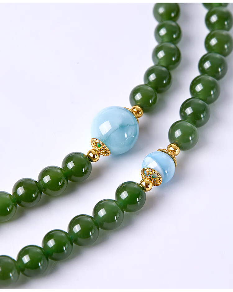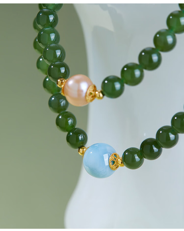 IL&CO Youke Oriental Tibetan Spirit Light Luxury Hetian Jade Necklace Women's Fashion Birthday Valentine's Day Gift for Girlfriend and Wife Everything is worry-free Jasper + Duobao Necklace
