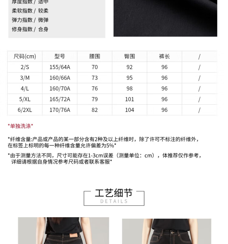 Outseam (cm) 99 cm 101.5 cm 104 cm 106.5 cm 109 cm