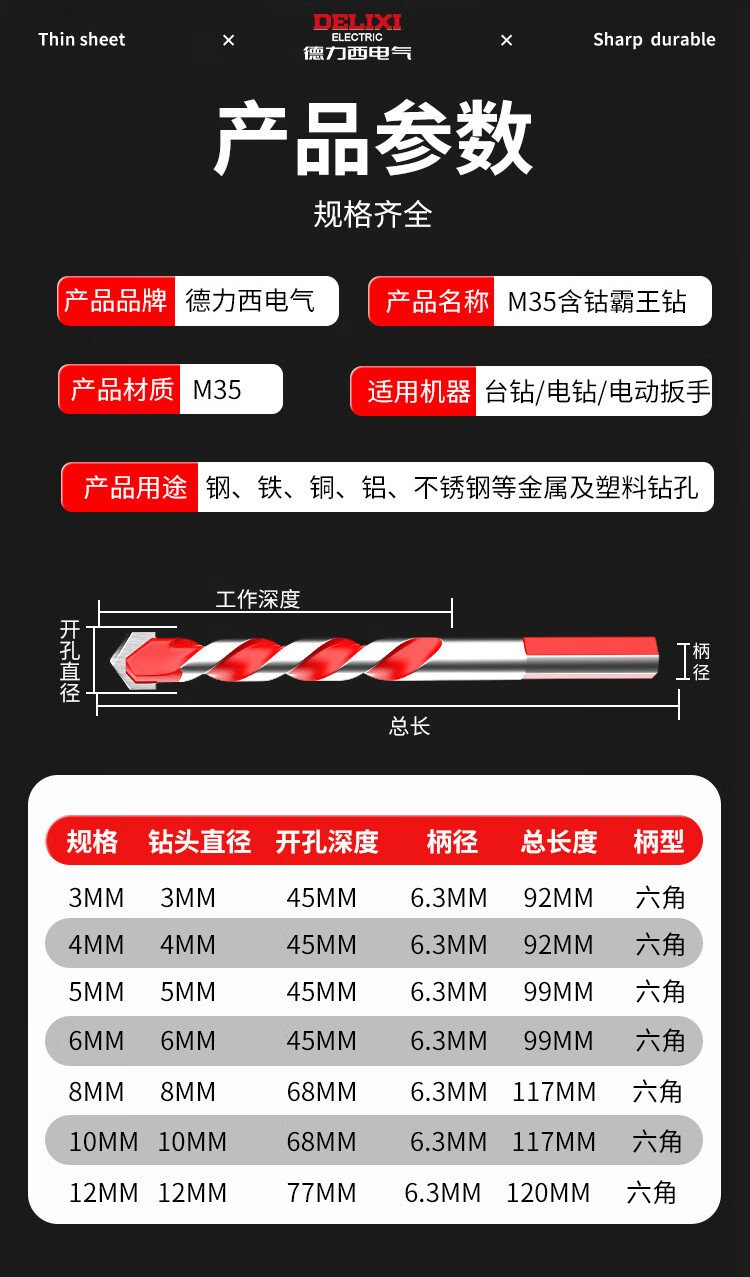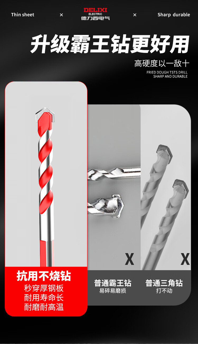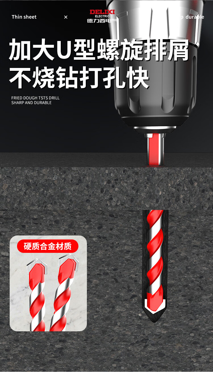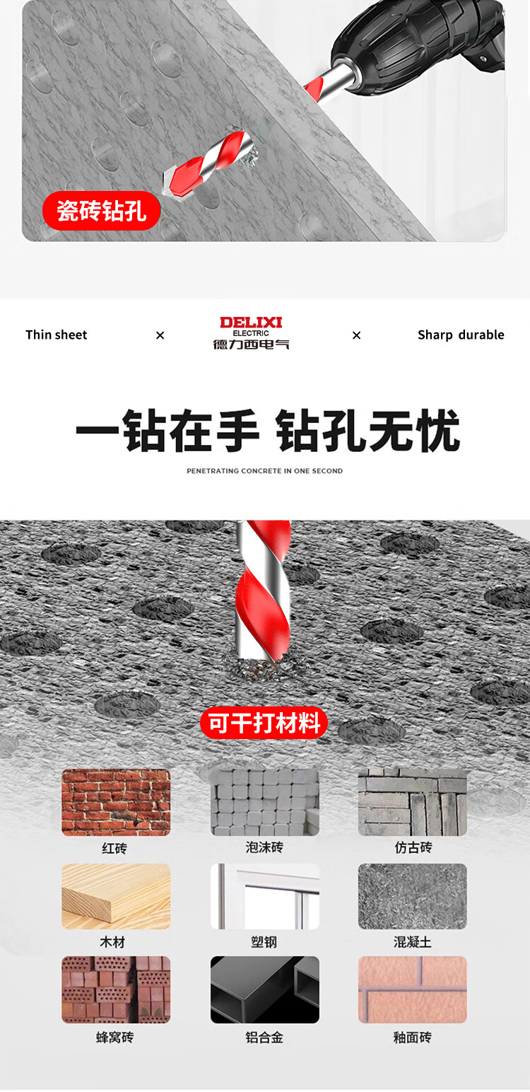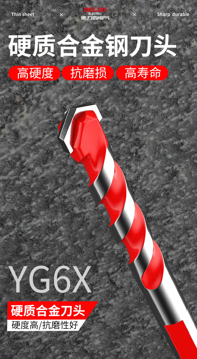 DELIXI ELECTRIC Tile Drill Bit Overlord Drill Perforation Drill Bit Alloy Concrete Electric Screwdriver Bit Set Wind Batch Hand Electric Drill Bit Upgraded Overlord Drill 6+8 Two Pairs + Gloves