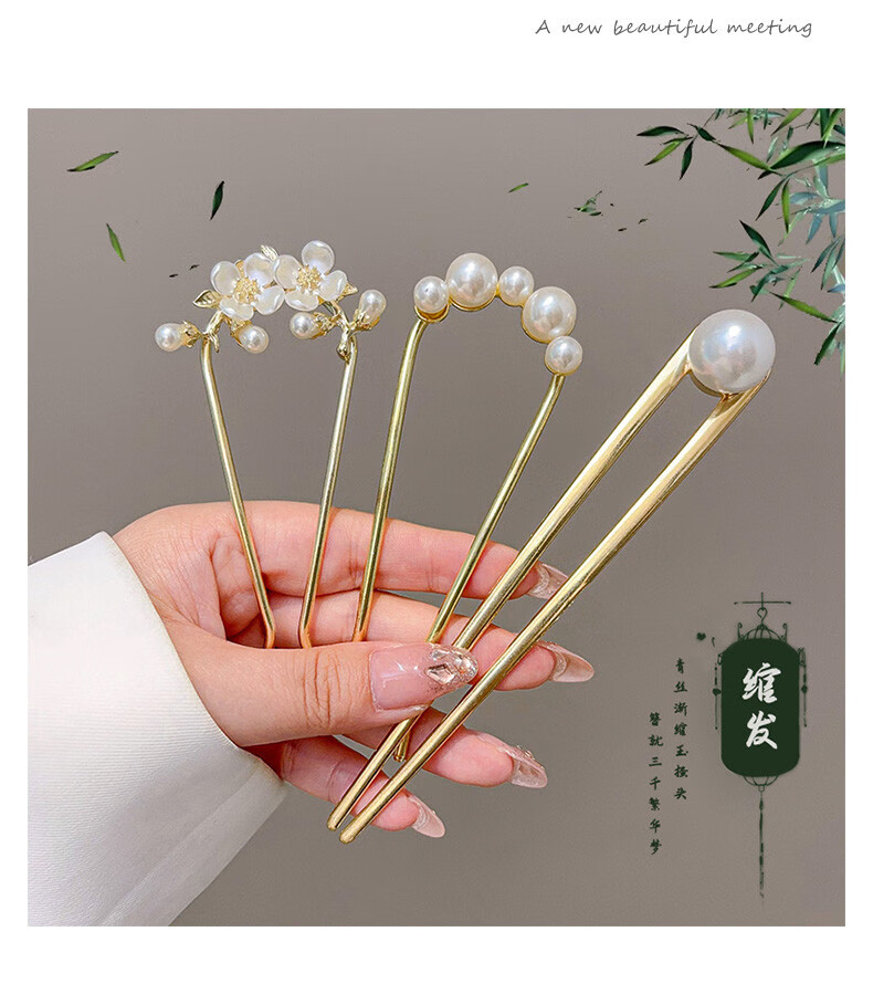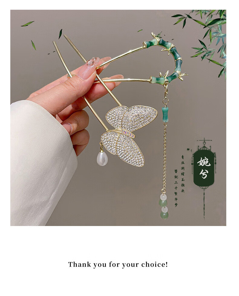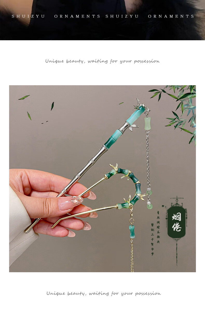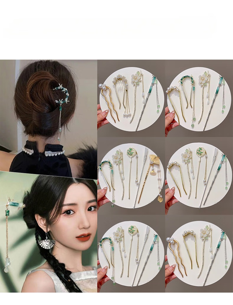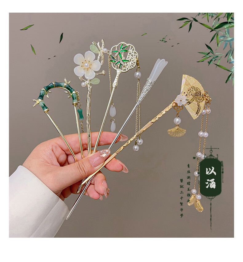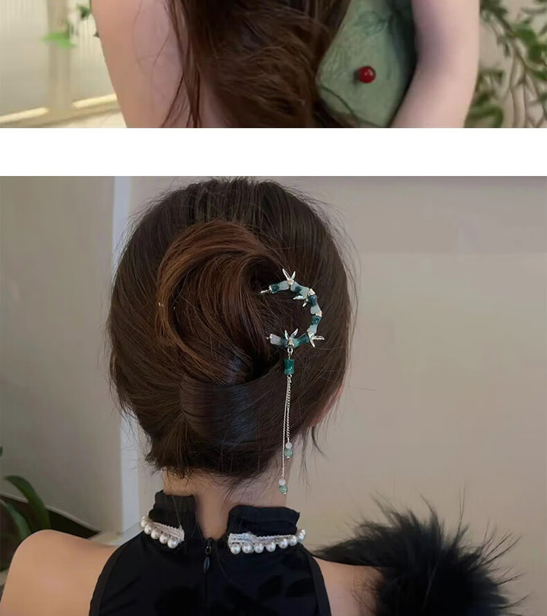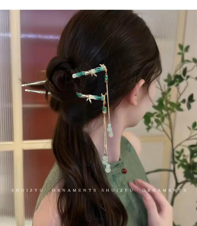 Rumei New Chinese Style Ancient Style Bamboo U-shaped Hairpin Women's Tassel Hairpin Horse Face Skirt Hanfu Hairpin Hairpin Artifact Headdress 28# Jianxue-2 pieces