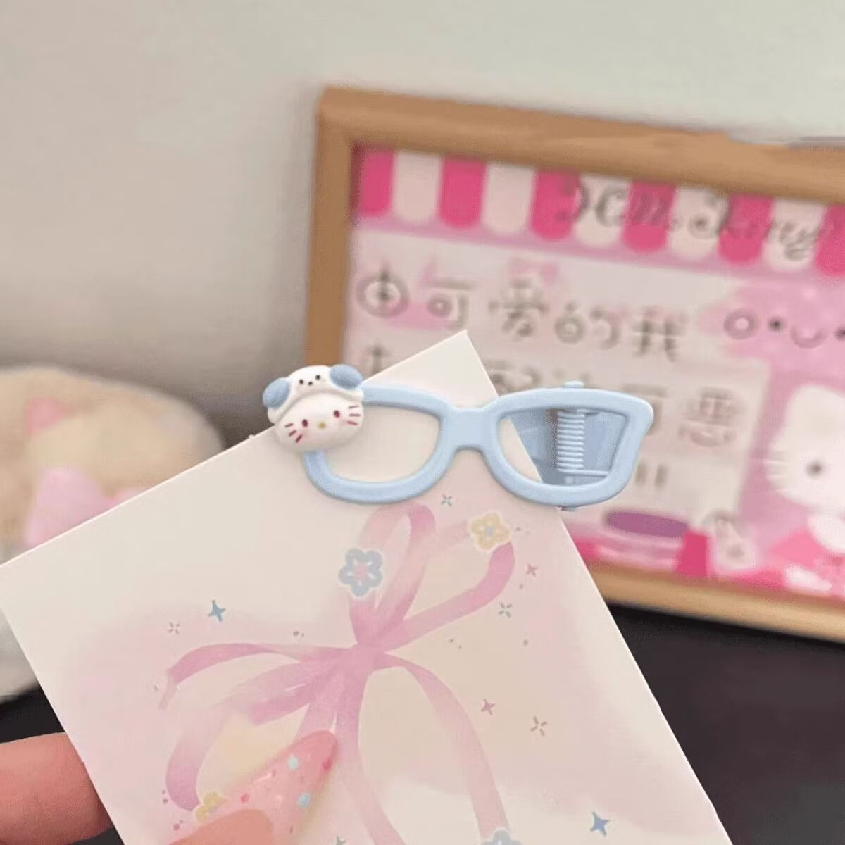 Spring and summer new style cartoon sweet glasses hairpin hair accessories girl hairpin bangs ins cute girls glasses hairpin blue + pink glasses side clip one each
