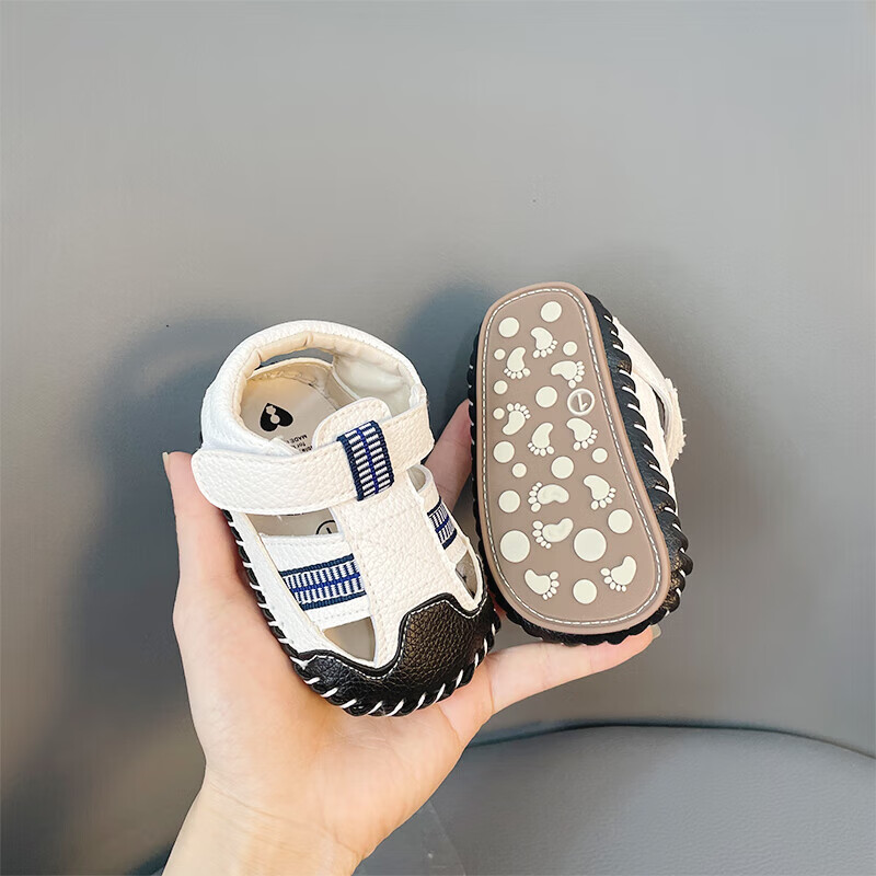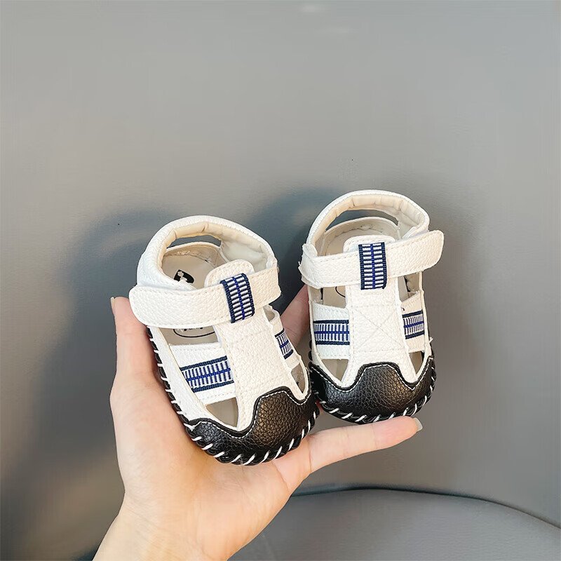 Wenzhi baby sandals 0-1 year old baby summer sandals soft sole anti-slip for men and women baby not easy to fall toddler shoes anti-kicking white inner length 13 cm suitable for 9-16 months