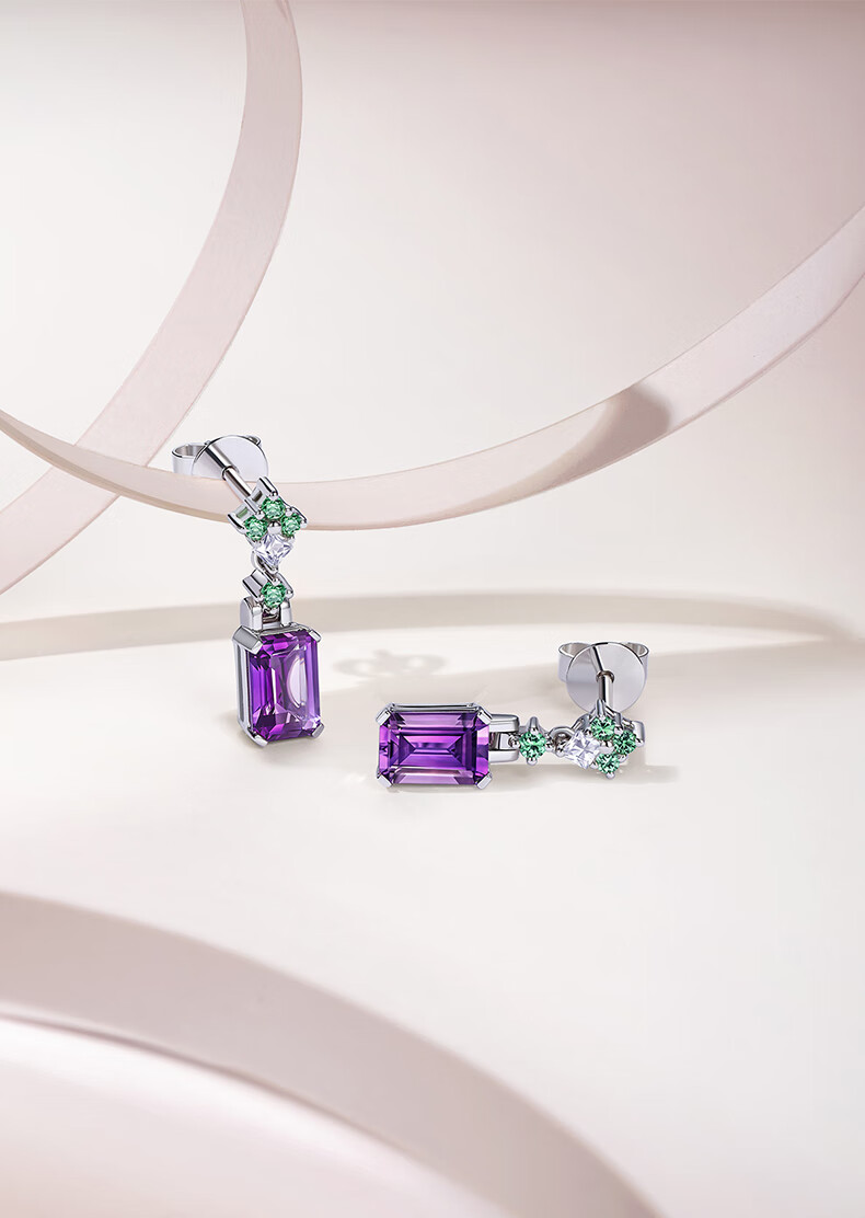 Xie Ruilin (TSL) Geometric Charm Series Amethyst Square Gemstone Platinum Stud Earrings BF238 Pricing Category