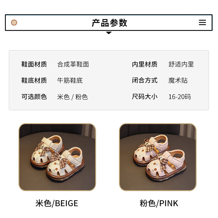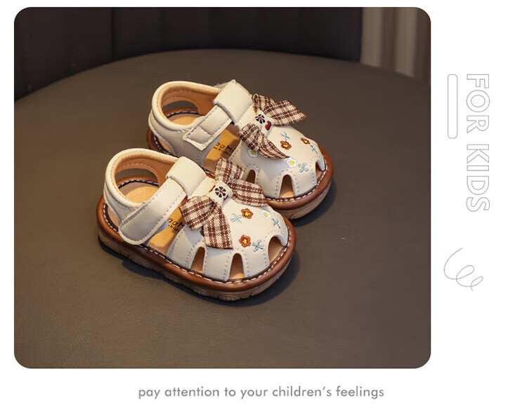 Pdmcms baby sandals girls cute princess shoes Baotou baby screaming shoes baby shoes children toddler shoes off-white 16 inner length 11.5cm