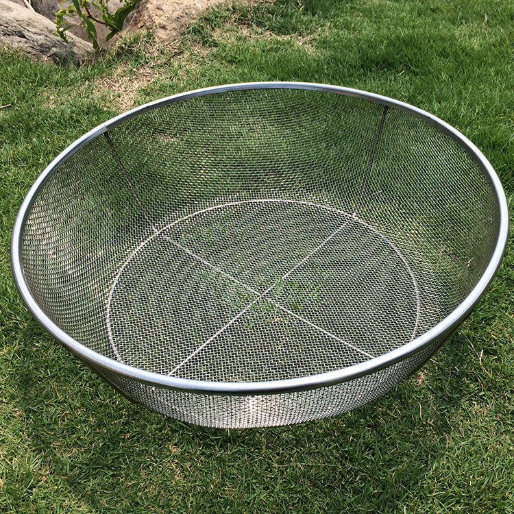 Enshousu stainless steel sieve iron sieve fried dough sticks steel wire oil filter basket round mesh fish drying restaurant draining and drying things household dustpan diameter 52 cm sieve hole 2 mm depth 8 cm