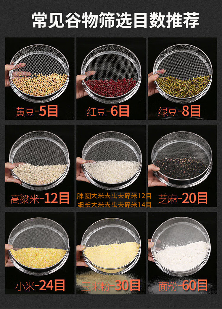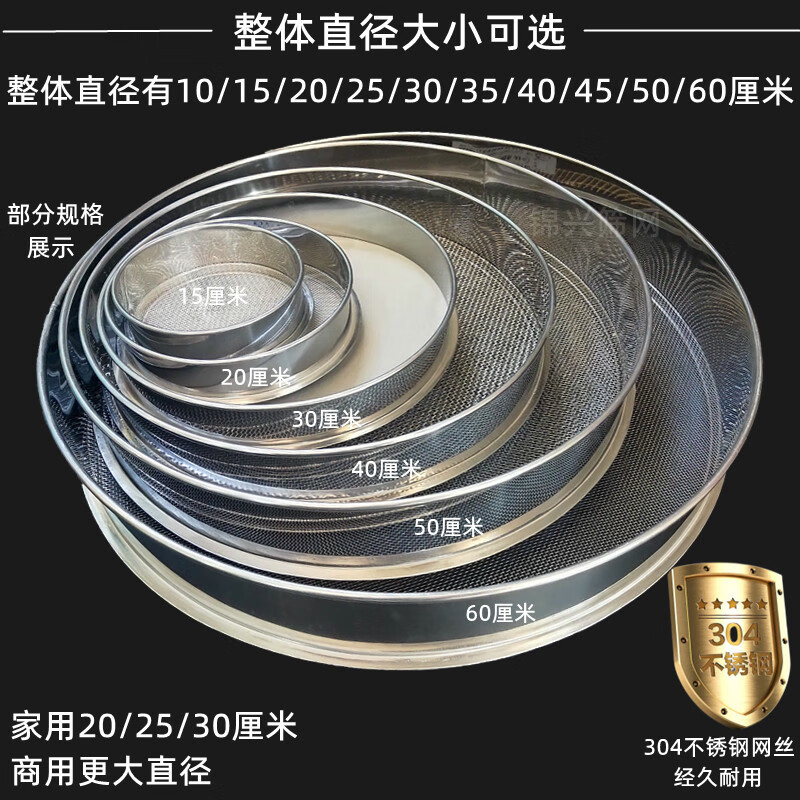 Enshousu rice sieve to remove rice worms, sieve broken rice, household fine hole sampling sieve 304 stainless steel sieve, round filter screen, household 20cm 304 steel mesh 14 mesh, fine fragrant rice to remove rice worms