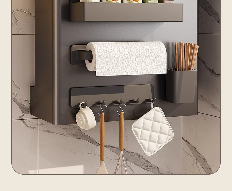 Lemuwei gas water heater shielding cover under the natural gas pipeline to hide the ugly artifact wall-mounted furnace decoration punch-free storage rack width 38 height 40 depth 15 arc gun gray no hole + storage package