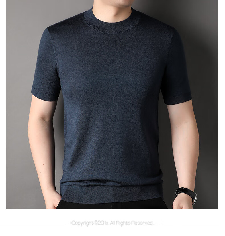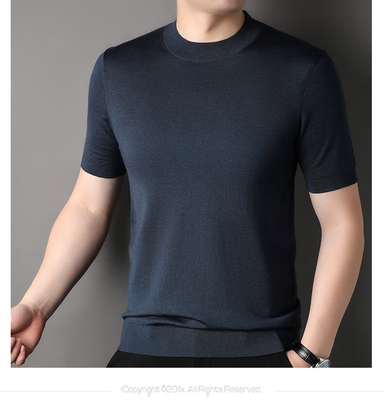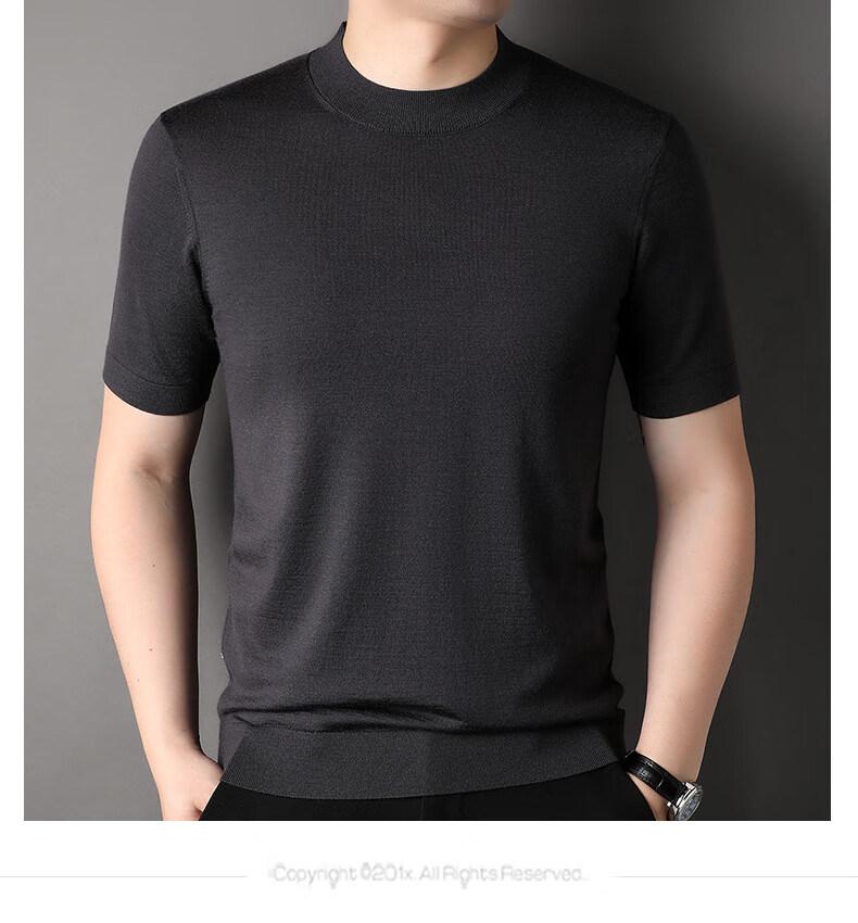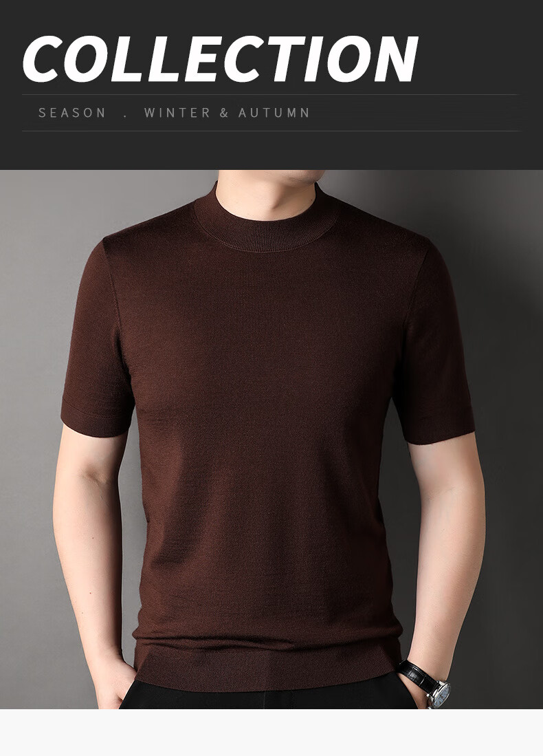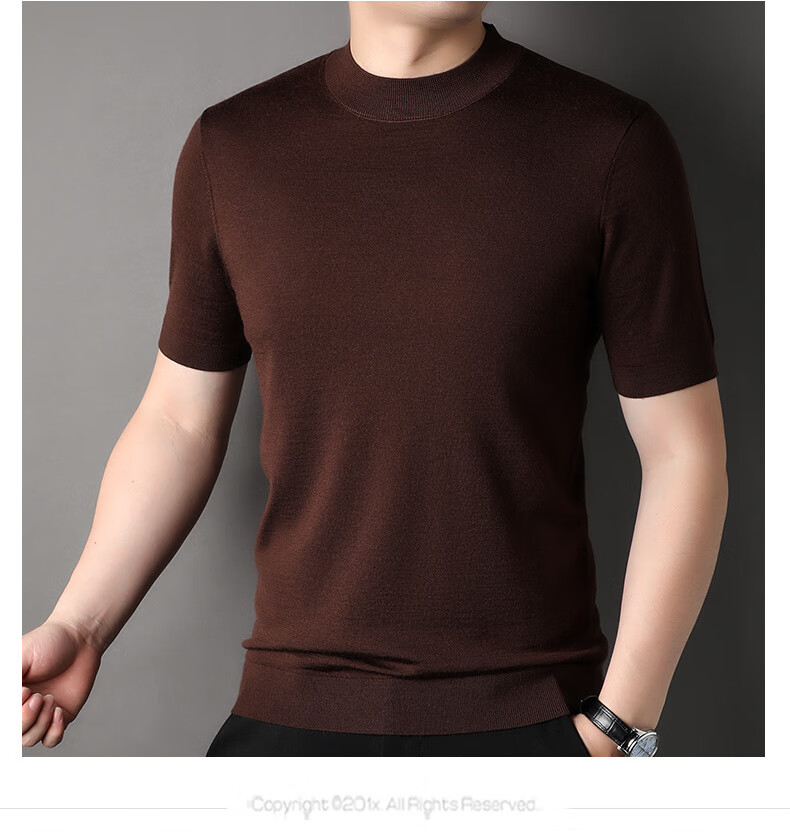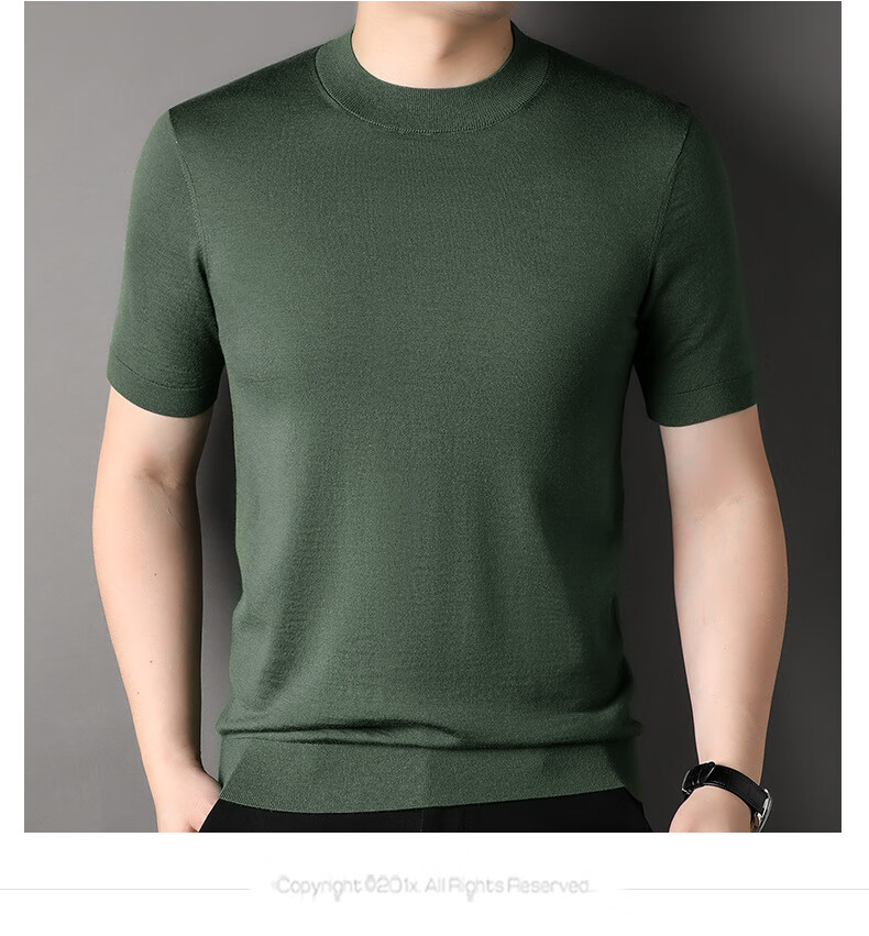 100% worsted pure wool sweater short-sleeved men's half-turtleneck sweater new Puyuan sweater half-sleeved versatile top trendy medium green XL 180/96A