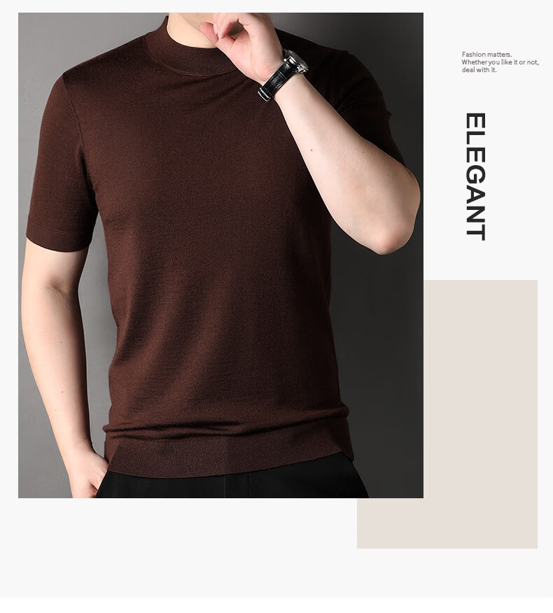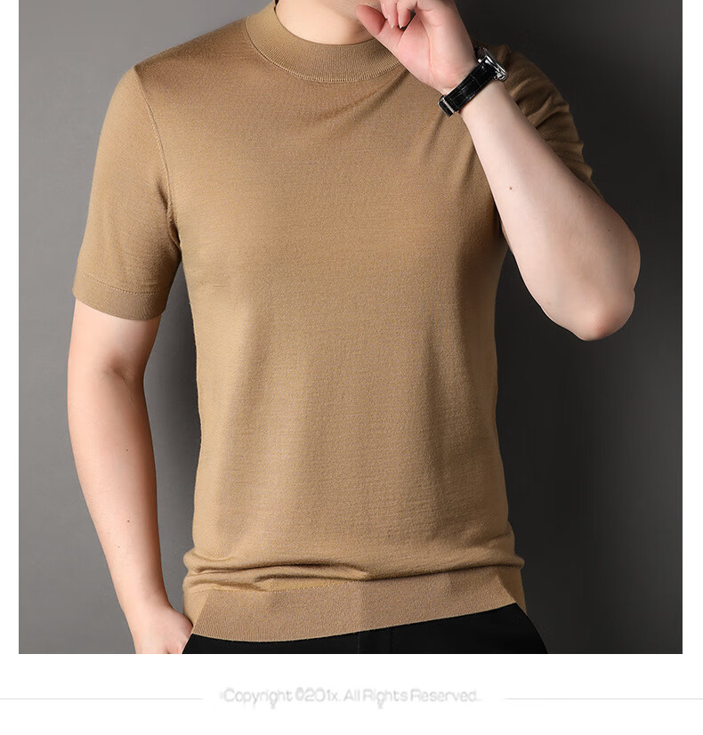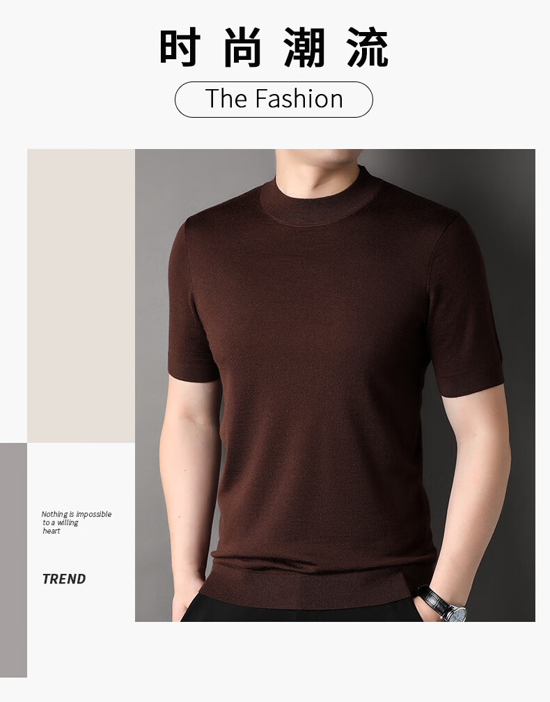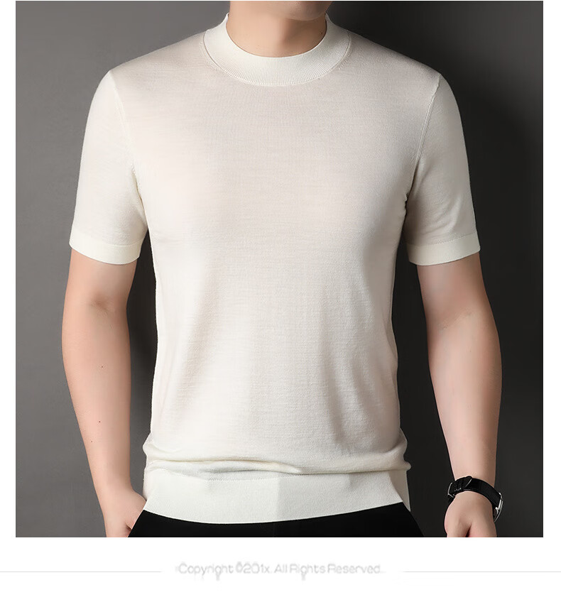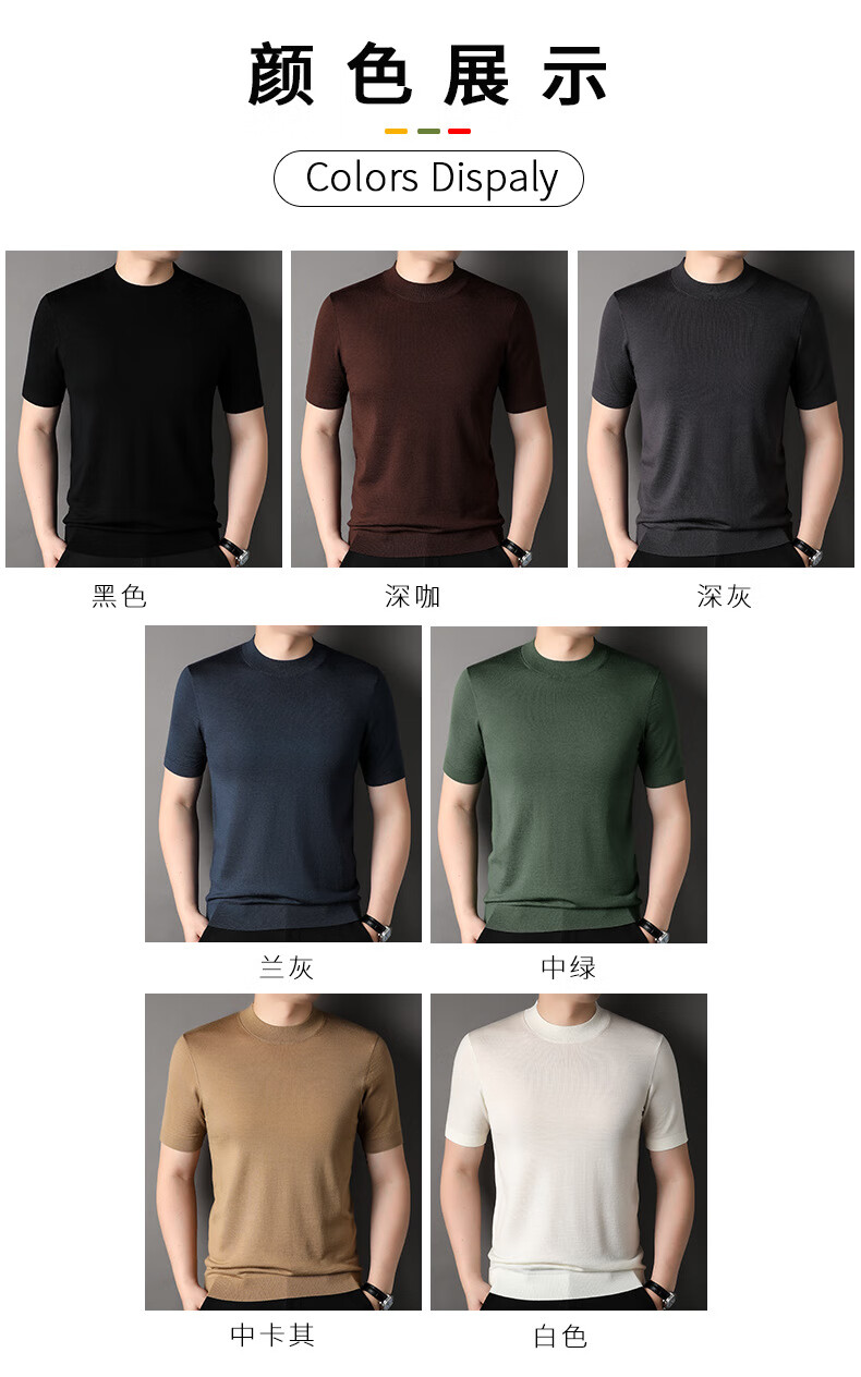 100% worsted pure wool sweater short-sleeved men's half-turtleneck sweater new Puyuan sweater half-sleeved versatile top trendy medium green XL 180/96A