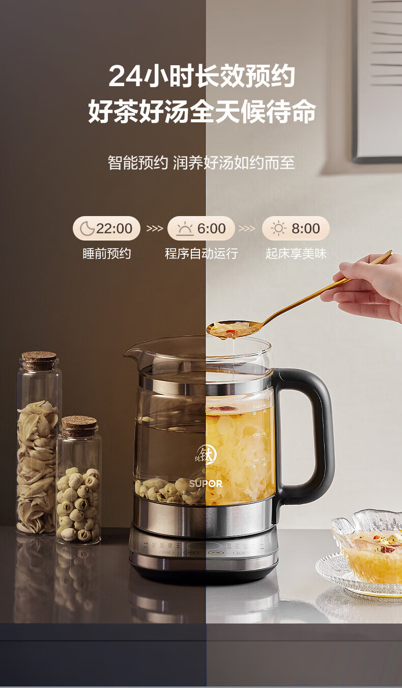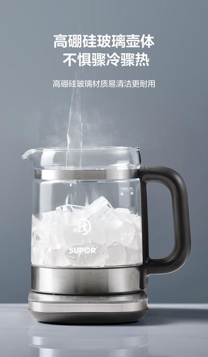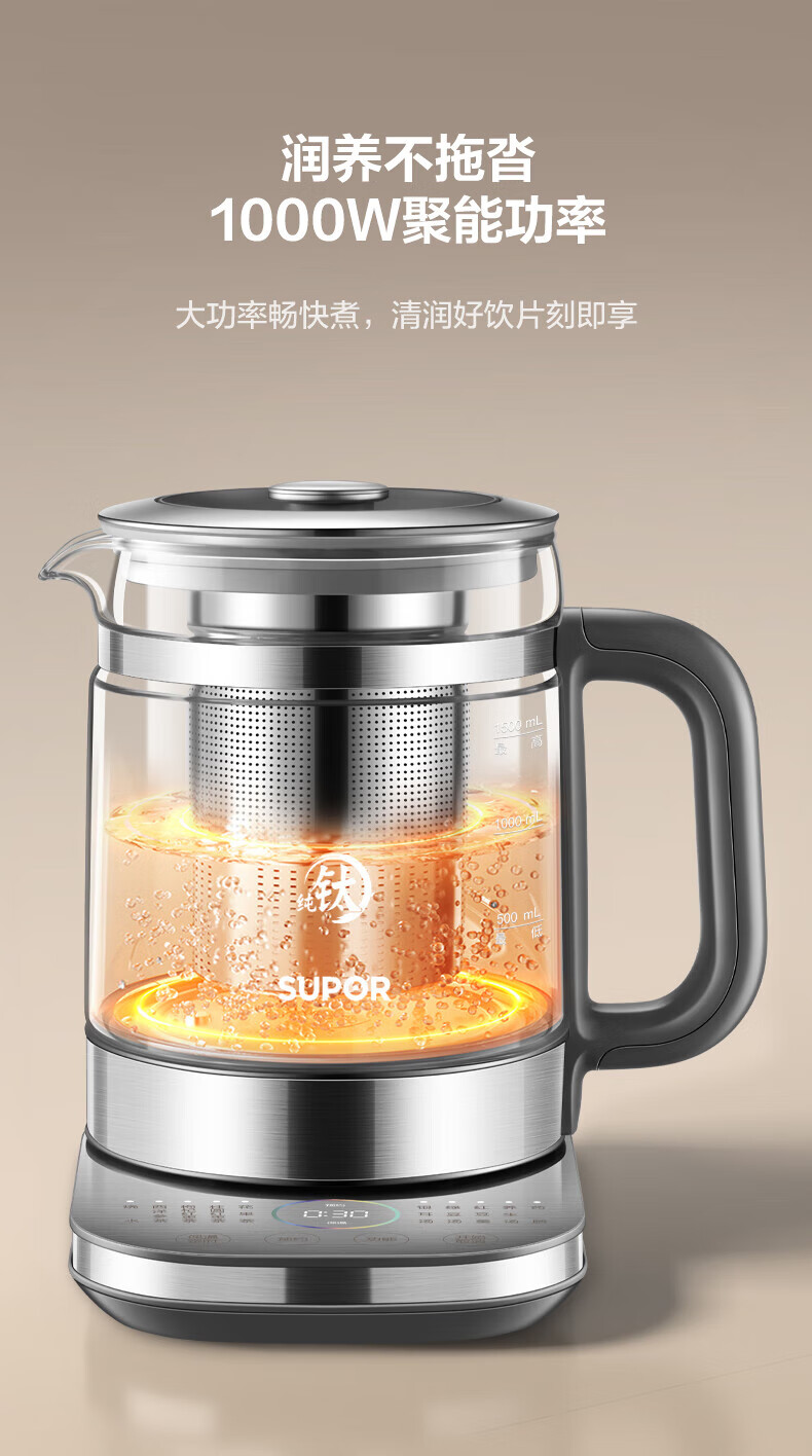 SUPOR Health Kettle Pure Titanium 0 Coating Health Kettle Household 1.5L Large Capacity Glass Electric Kettle Electric Kettle 316L Stainless Steel Multi-stage Temperature Control Supermarket Model Offline Same Style at Counter 1.5L