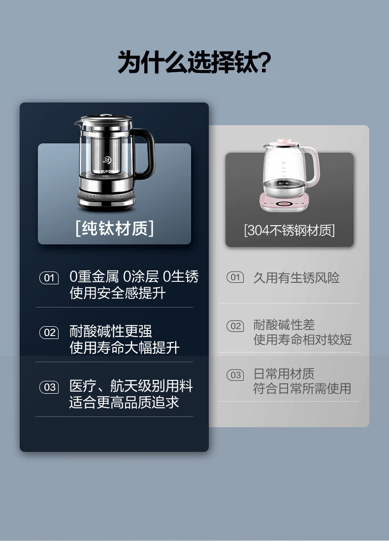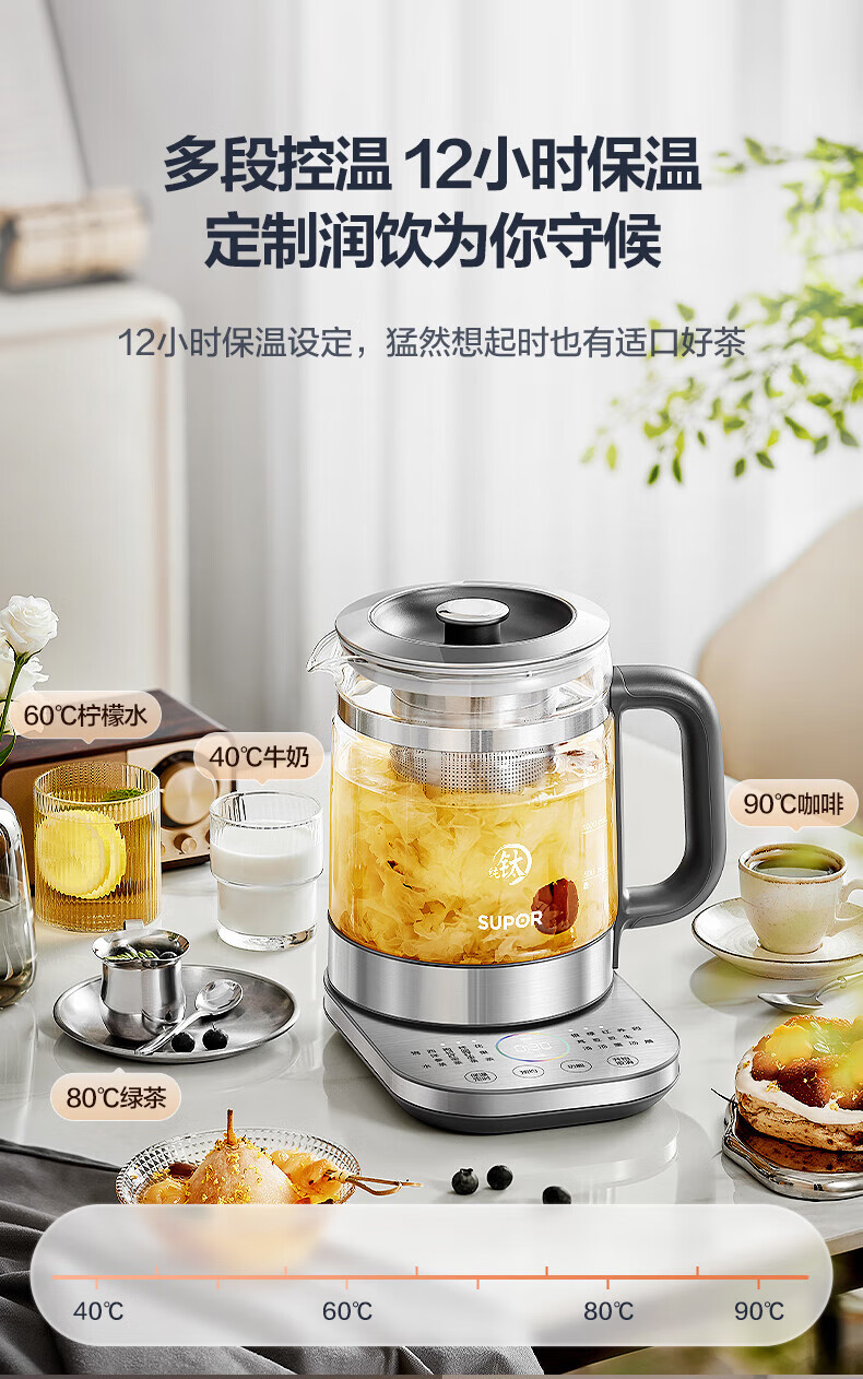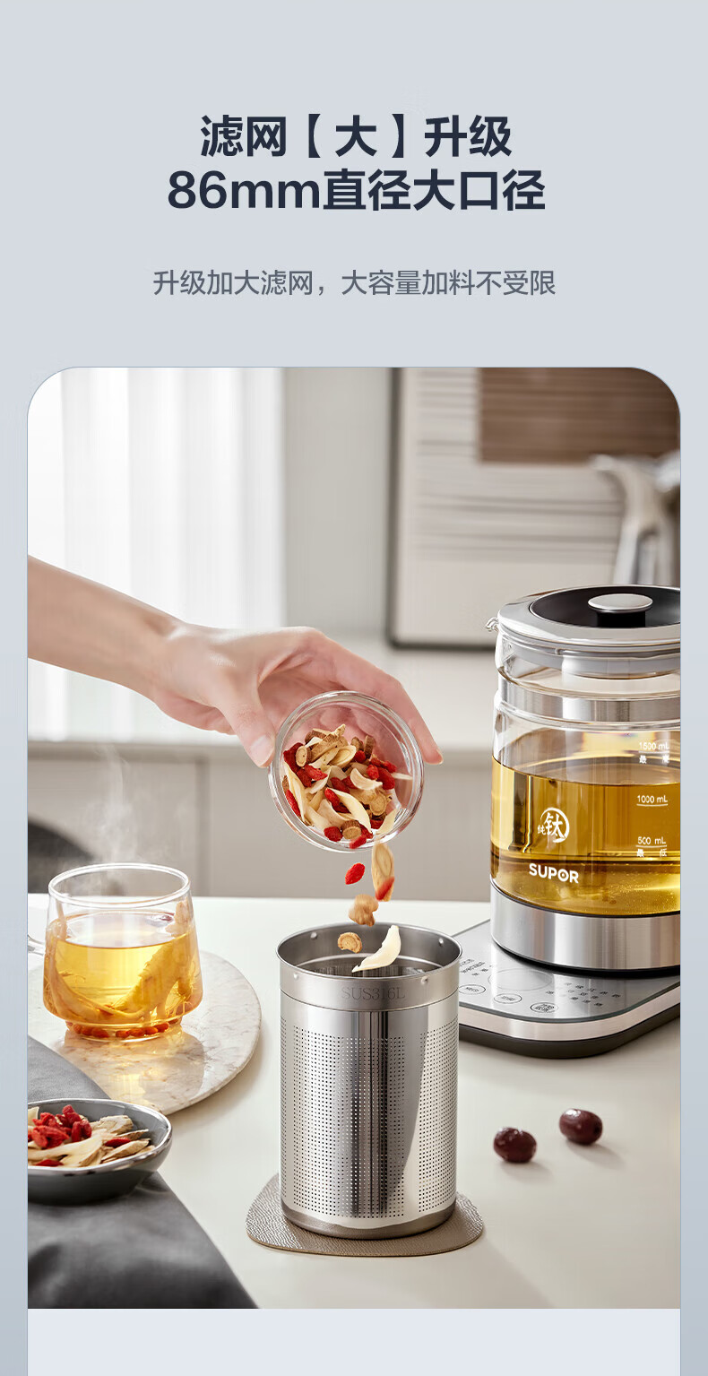 SUPOR Health Kettle Pure Titanium 0 Coating Health Kettle Household 1.5L Large Capacity Glass Electric Kettle Electric Kettle 316L Stainless Steel Multi-stage Temperature Control Supermarket Model Offline Same Style at Counter 1.5L
