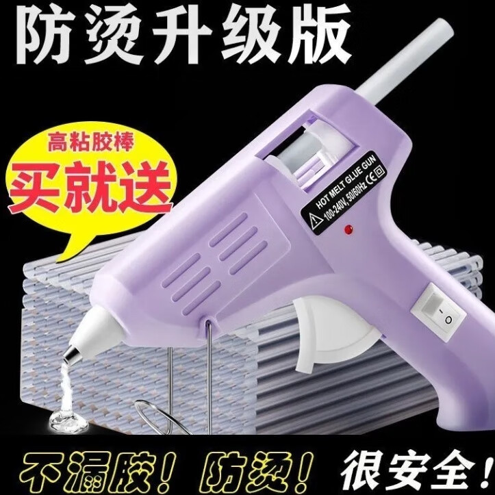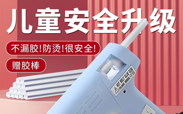 BEYZK hot melt glue gun children's anti-scalding electric glue gun home student kindergarten handmade 7mm stick instant gun glue stick rose pink upgrade safety special + buckle anti-scalding + 7mm high viscosity instant 3 pieces only glue stick