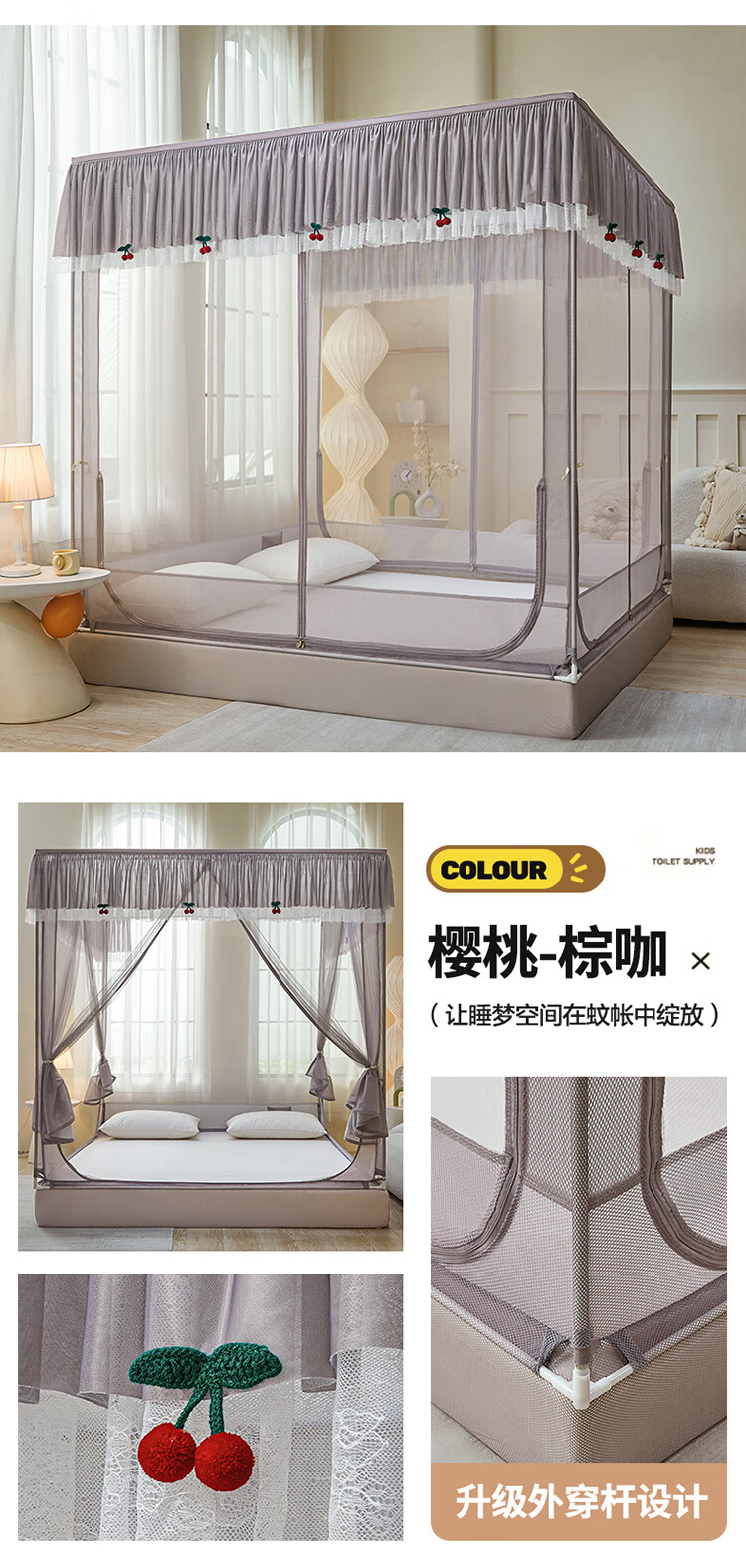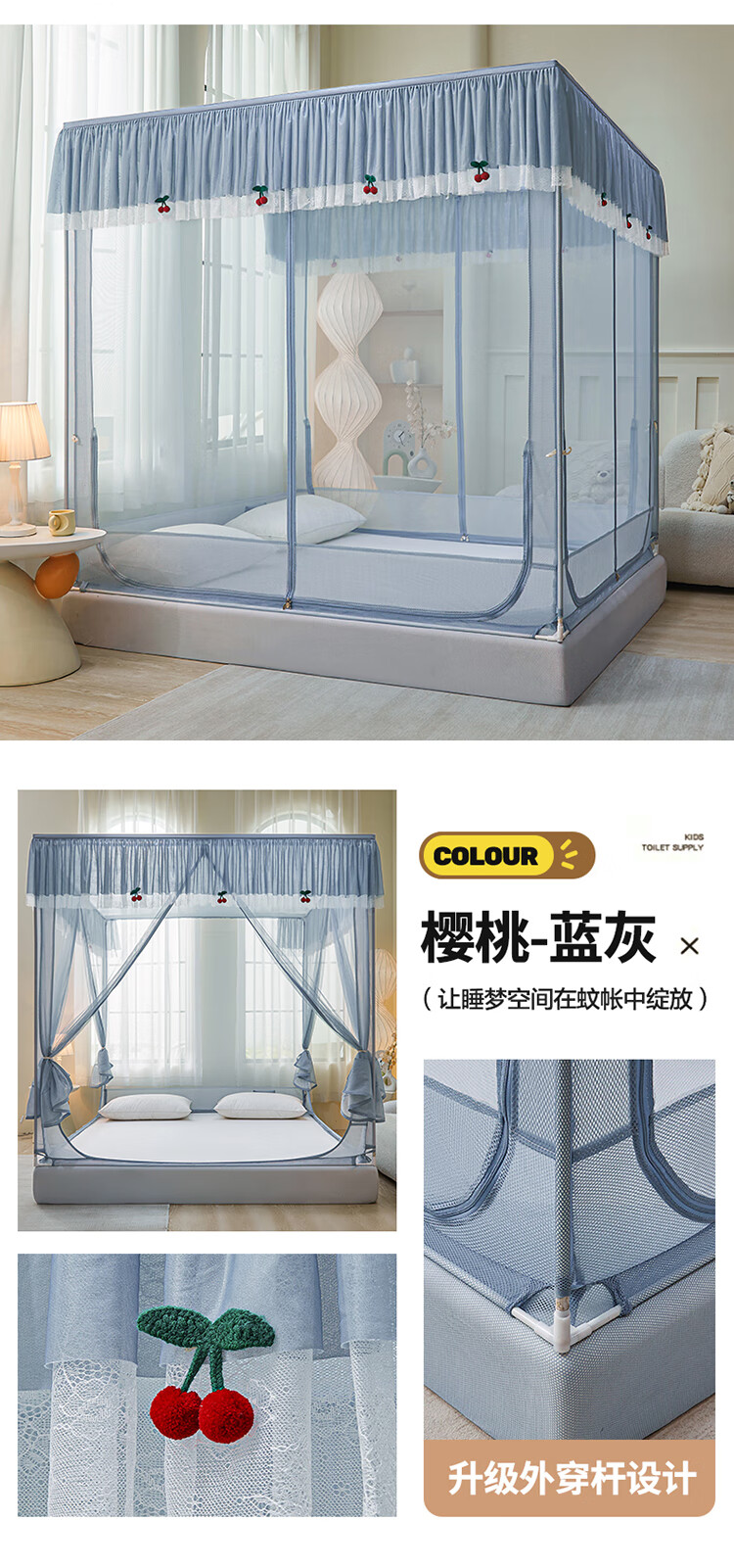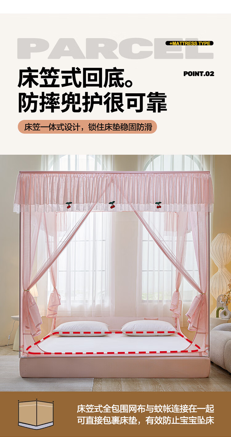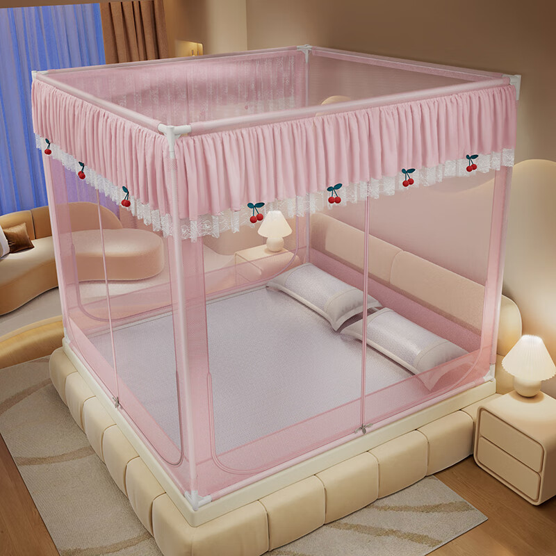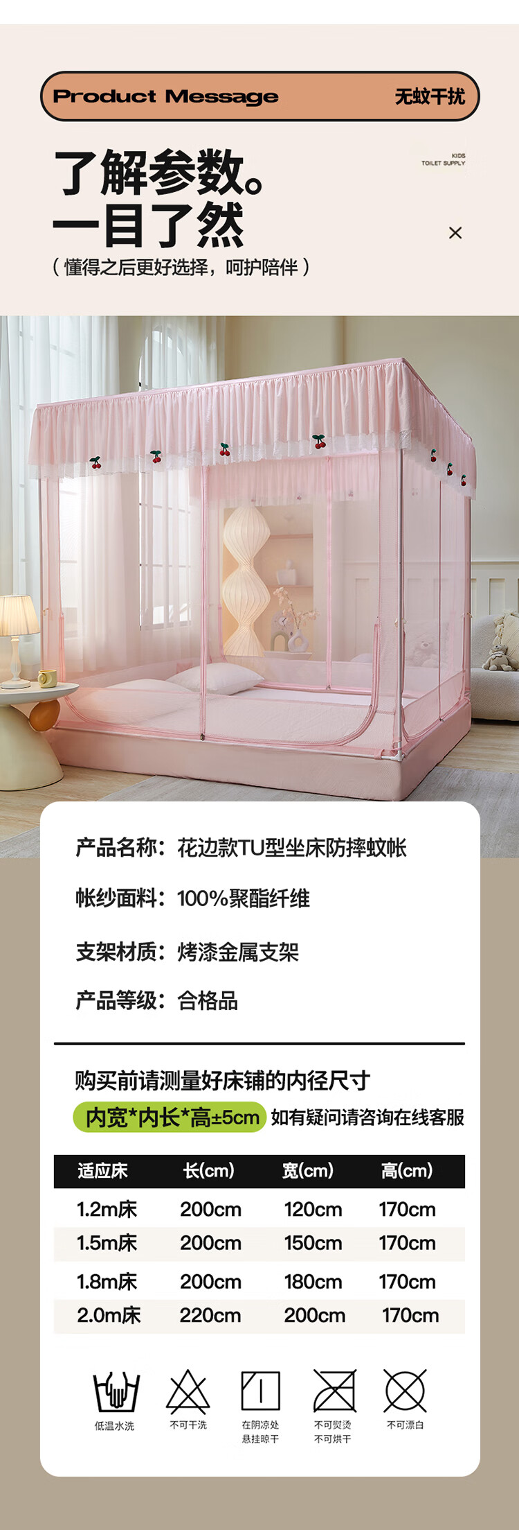 MUJI HOME summer anti-fall baby bed mosquito net 1.8x2m household anti-mosquito net 1.5x2m all-in-one fully surrounded Cherry-Mixing Class A standard encrypted net yarn 180cm*200cm*170cm self-connecting bracket