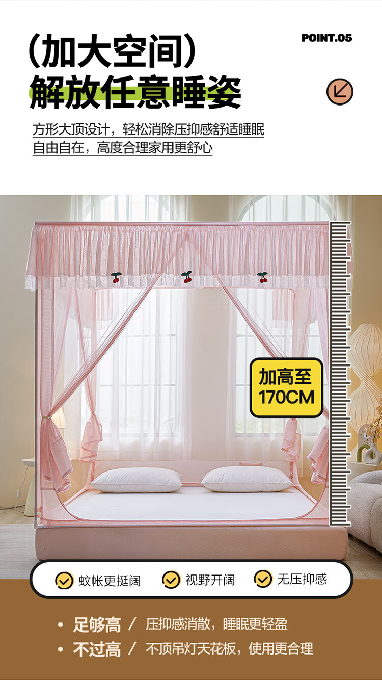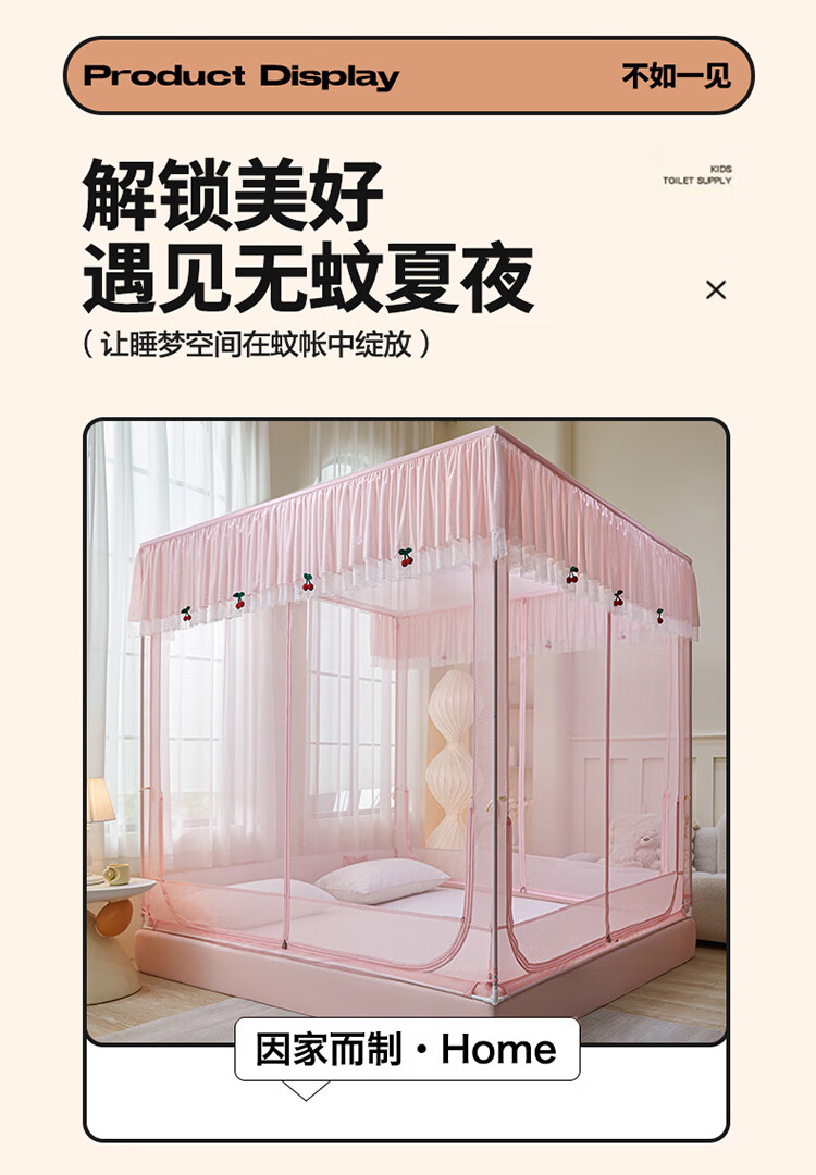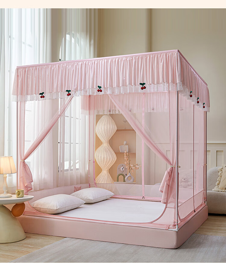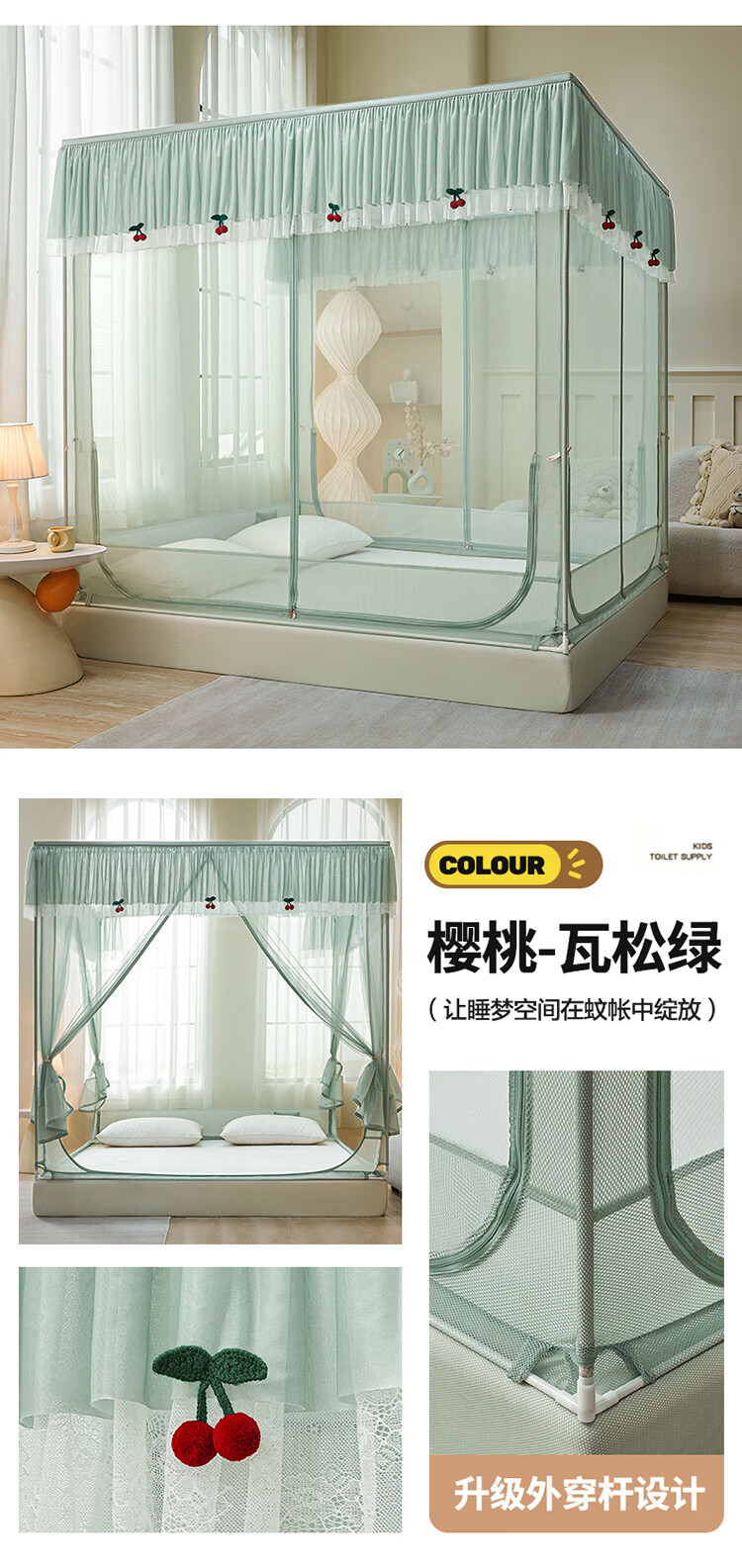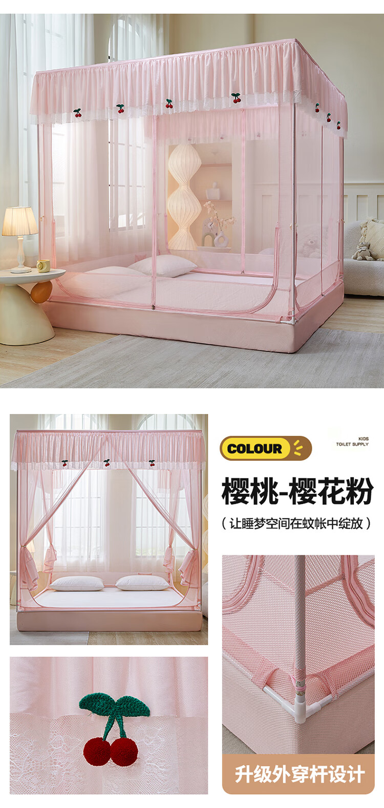 MUJI HOME summer anti-fall baby bed mosquito net 1.8x2m household anti-mosquito net 1.5x2m all-in-one fully surrounded Cherry-Mixing Class A standard encrypted net yarn 180cm*200cm*170cm self-connecting bracket
