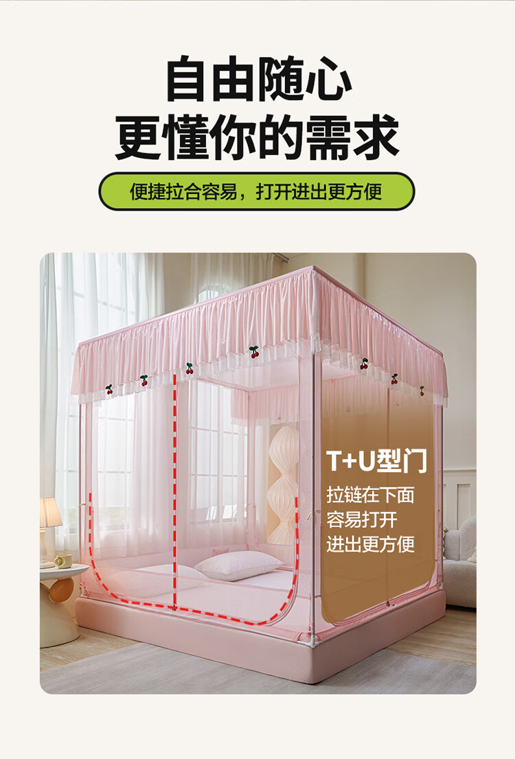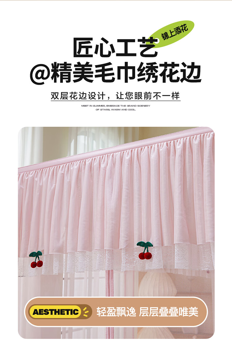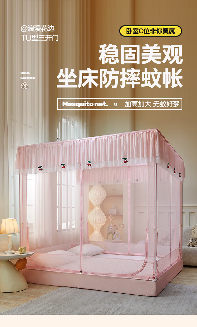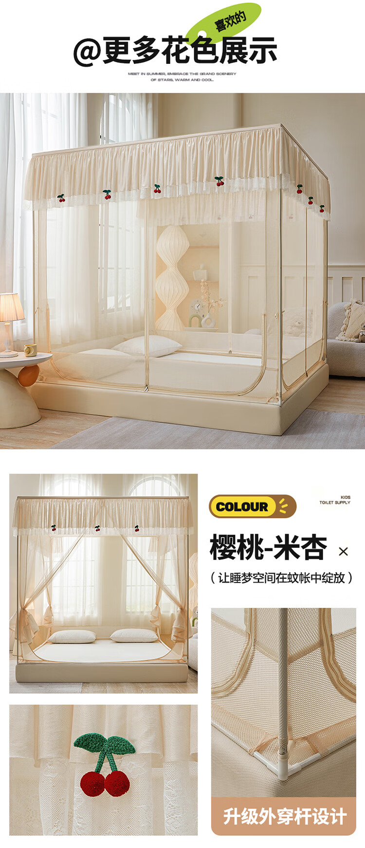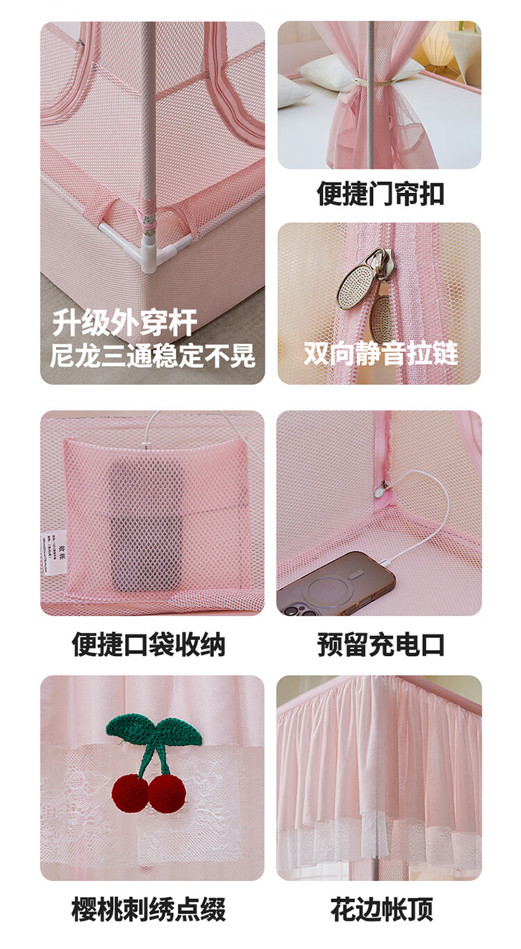MUJI HOME summer anti-fall baby bed mosquito net 1.8x2m household anti-mosquito net 1.5x2m all-in-one fully surrounded Cherry-Mixing Class A standard encrypted net yarn 180cm*200cm*170cm self-connecting bracket