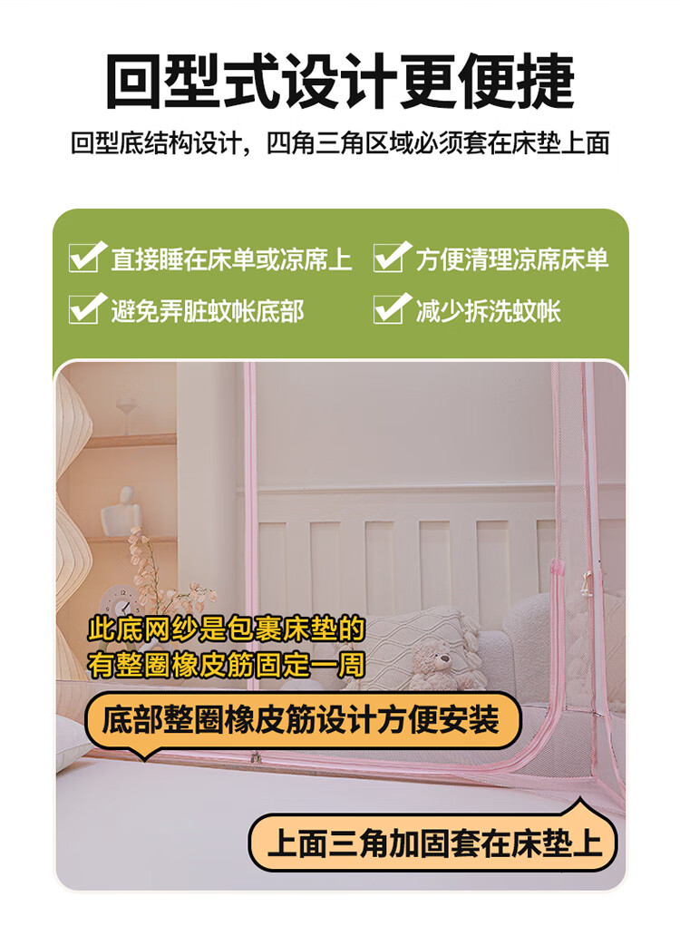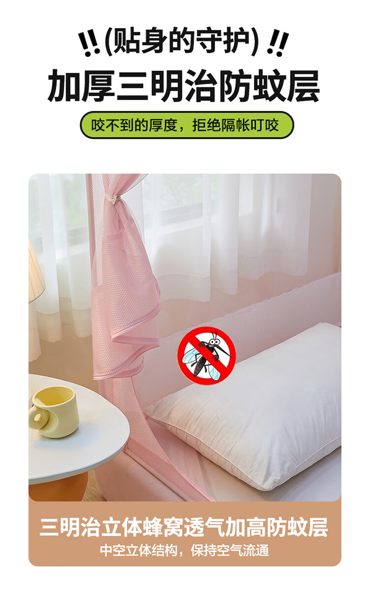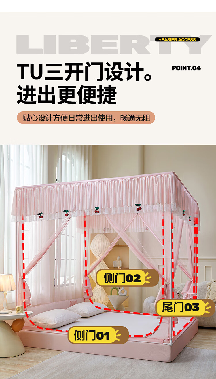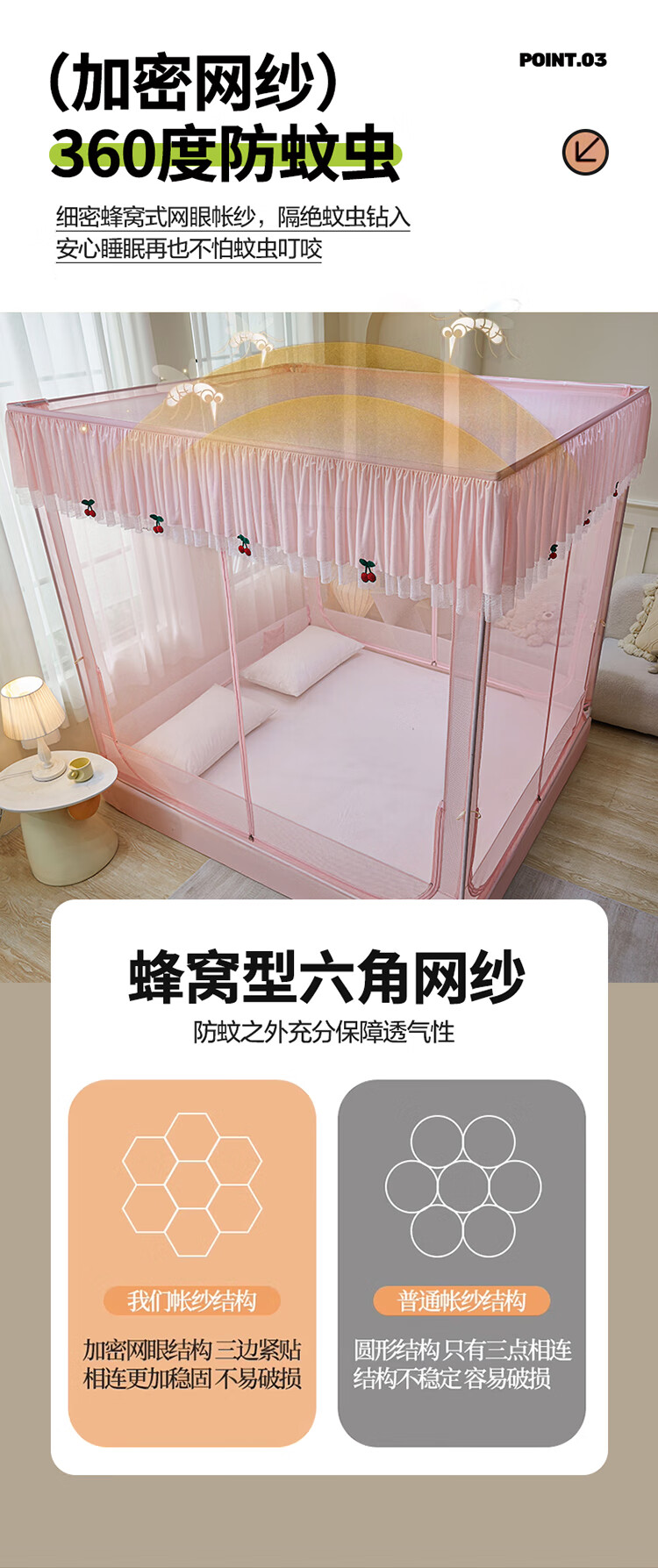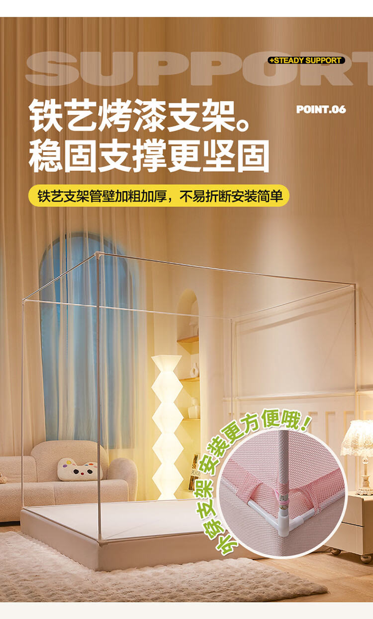 MUJI HOME summer anti-fall baby bed mosquito net 1.8x2m household anti-mosquito net 1.5x2m all-in-one fully surrounded Cherry-Mixing Class A standard encrypted net yarn 180cm*200cm*170cm self-connecting bracket