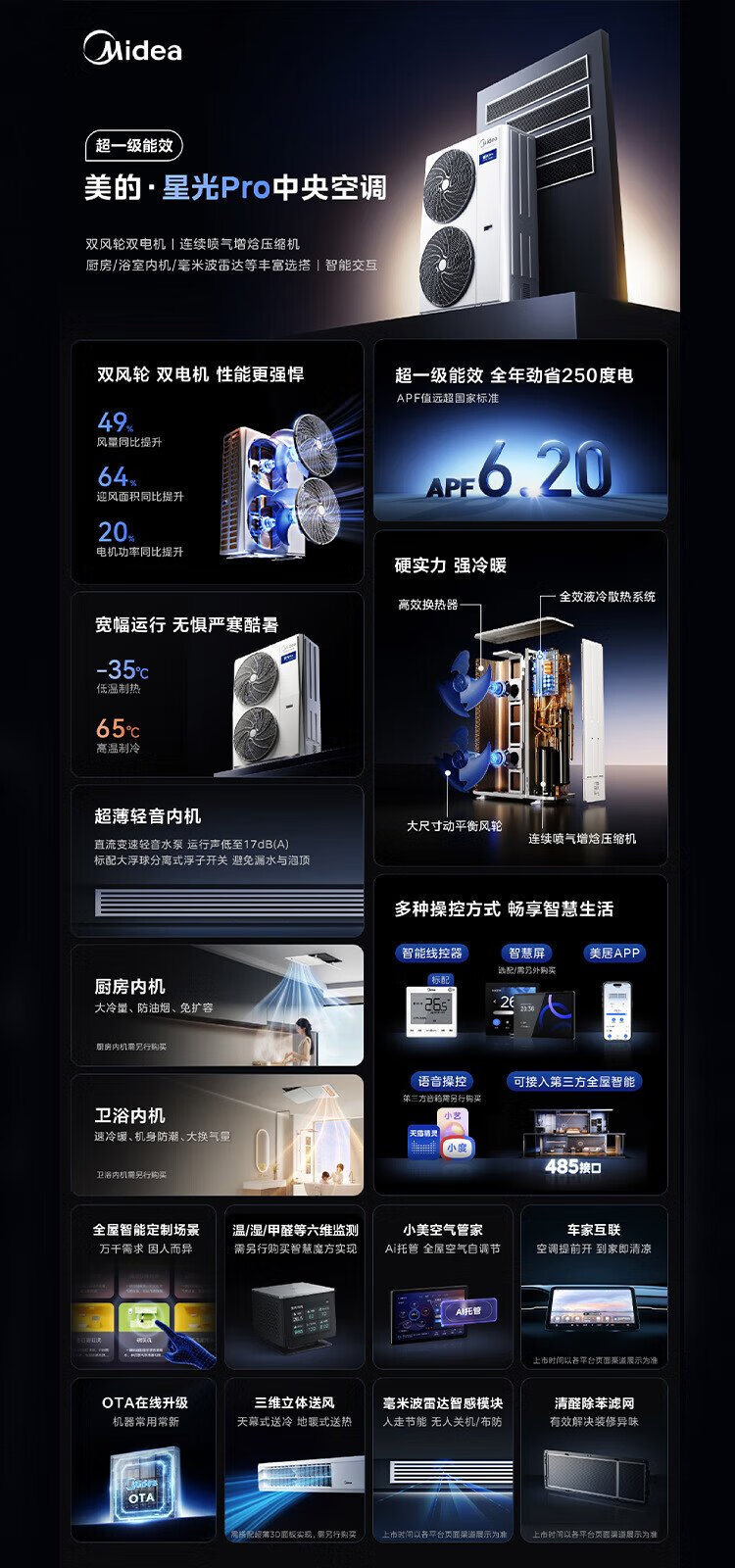 Midea Starlight Pro one-to-four, national subsidy reduced by 20%, multi-connection one-to-three, one-to-multiple, embedded, upgraded version, central air conditioner, 5 HP first-level energy efficiency, one-to-four, small three bedrooms and one living room