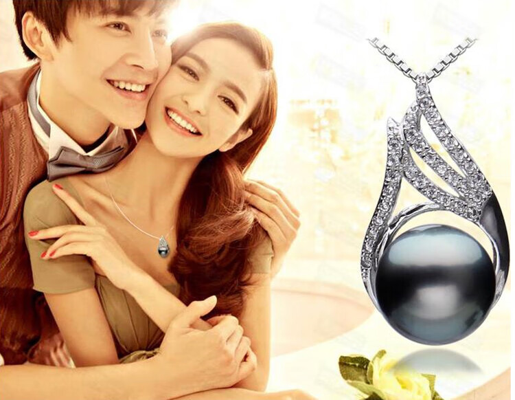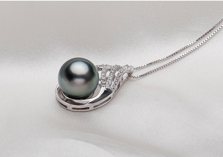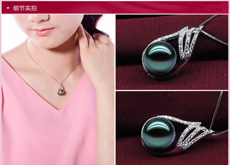 DL 1998 Fat Donglai same style Tahitian pearl pendant single short clavicle chain 925 silver round black mother-of-pearl necklace 12mm-13mm