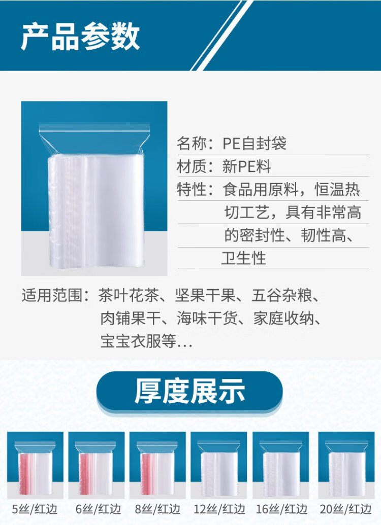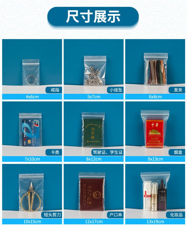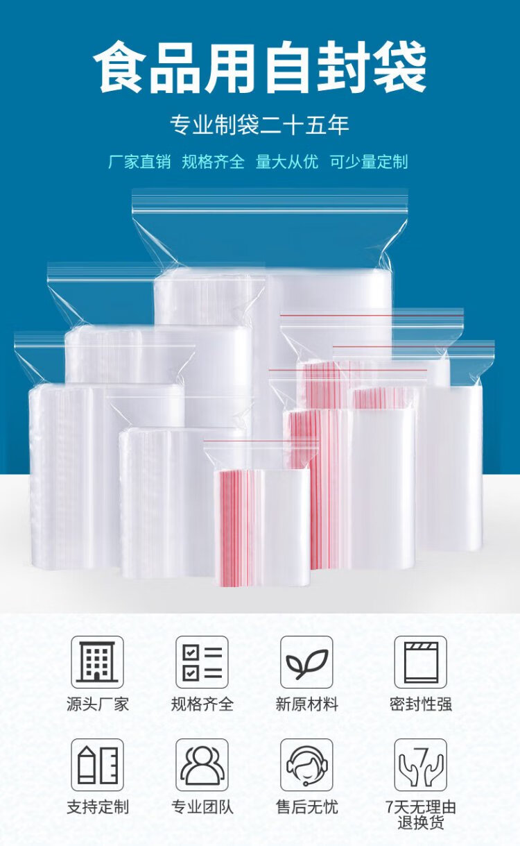 Thick transparent ziplock bag small plastic seal bag fresh storage food seal bag plastic PE large packaging bag 8 silk regular style 100 pieces No. 1 5*7cm