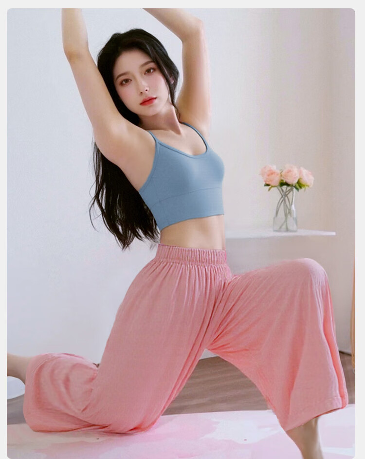 Shuangxiu Yoga Wear Set for Women 2025 New Dance Zen Loose Pilates Sports and Fitness Training Wear Summer Thin Gray Blue Top + Pink Pants Set L 110-120