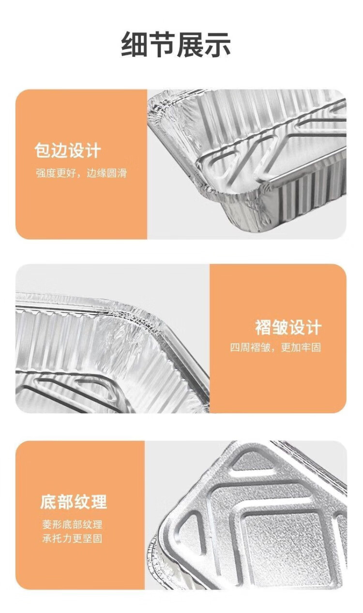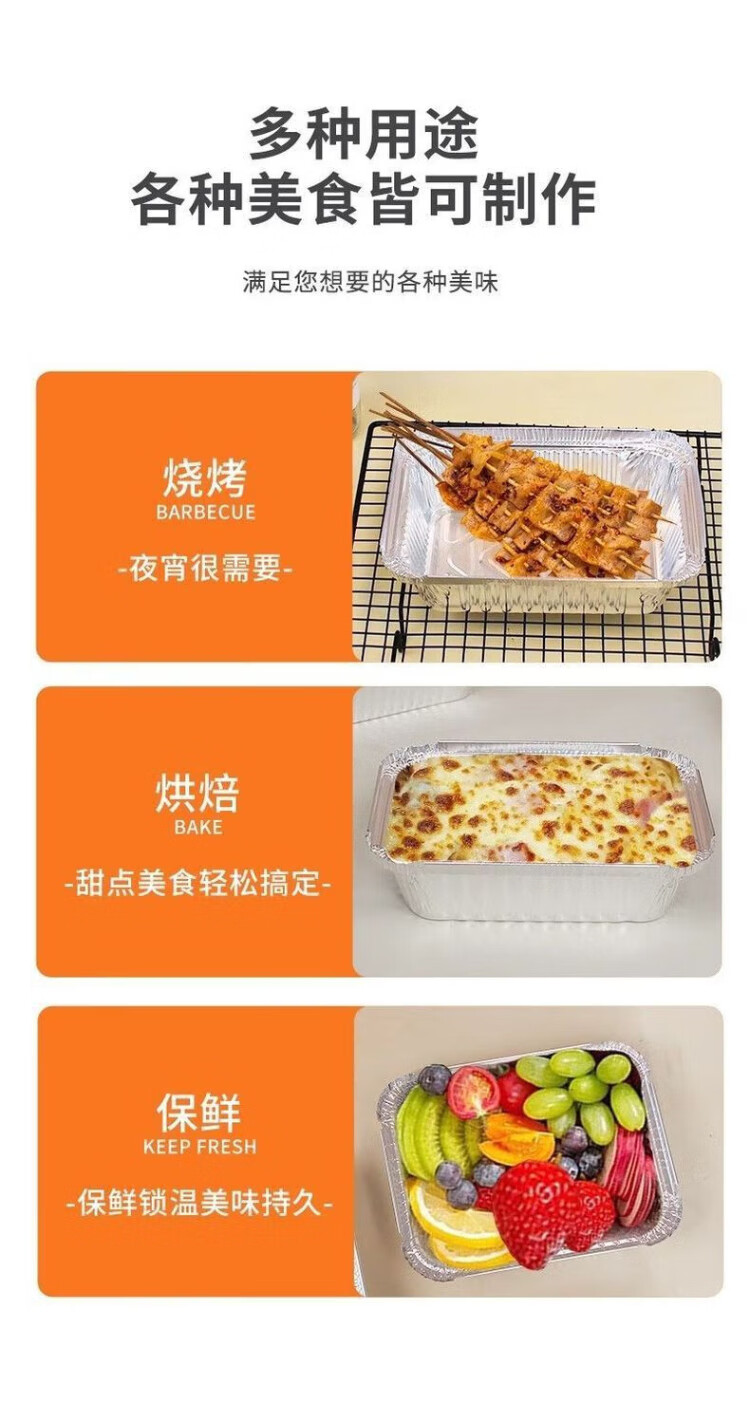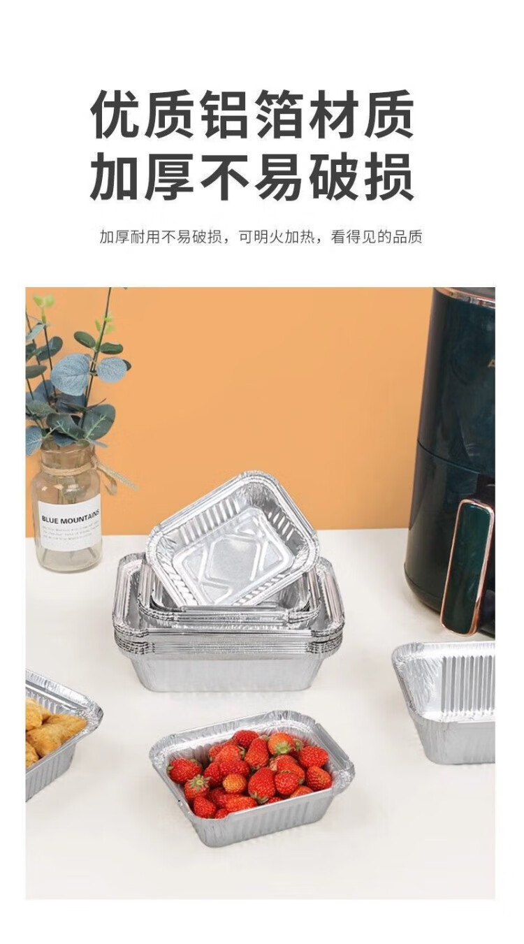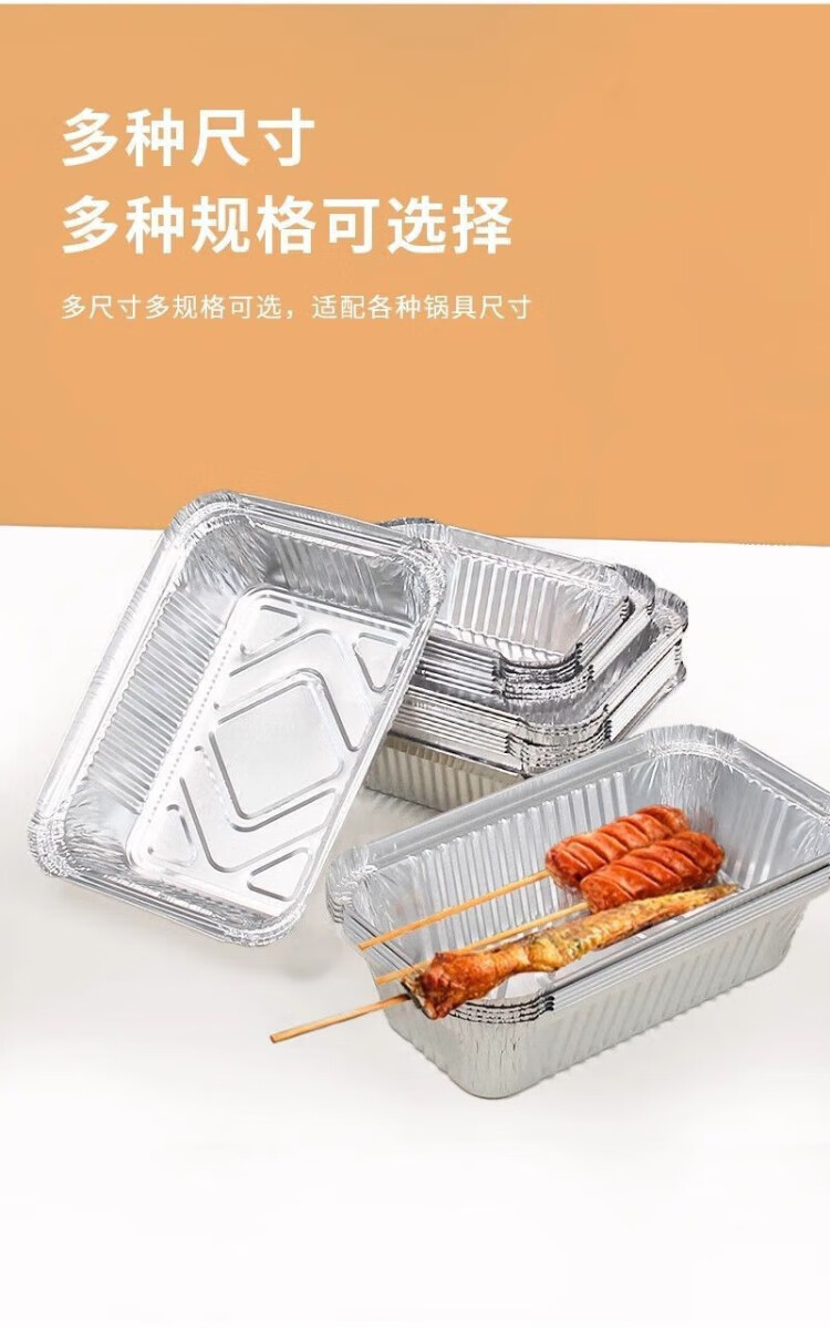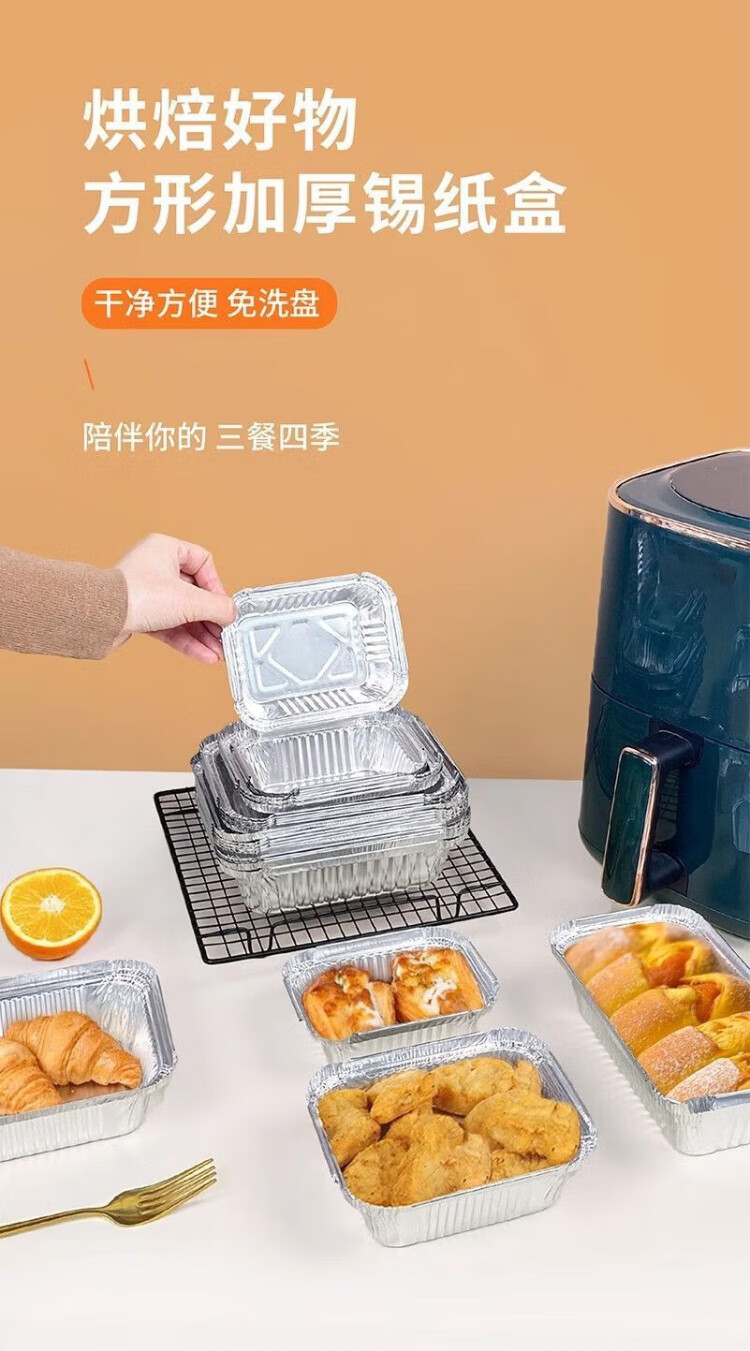 Zhongyuan Jiademei rectangular tin foil box with lid air fryer aluminum foil tray reusable oven barbecue special size packaging F185 700ml length 18.5CM*50 pieces