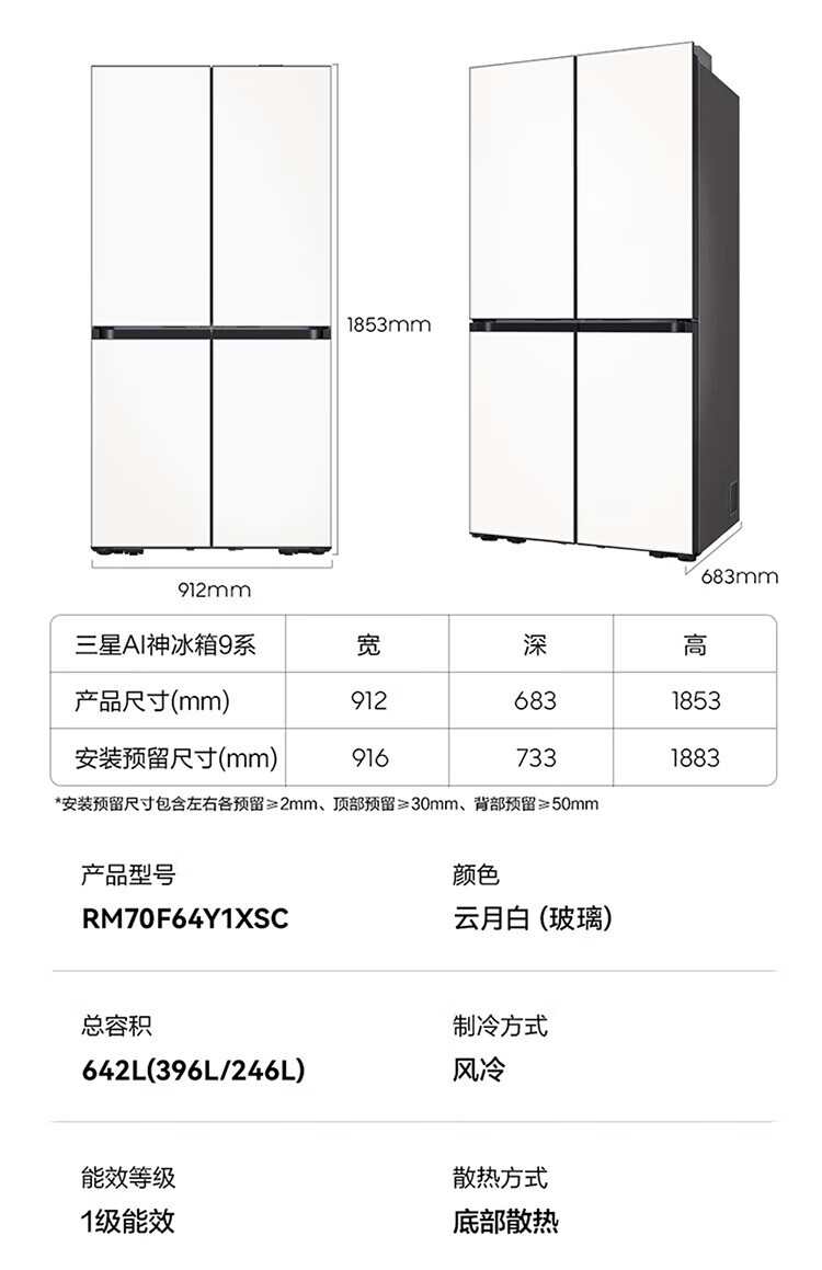 Samsung (SAMSUNG) government subsidy 15% original import Jinchen recommends AI Shen refrigerator 9 series PLUS model 642L four-door cross door super large capacity original import automatic ice making RM70F64Y1XSC
