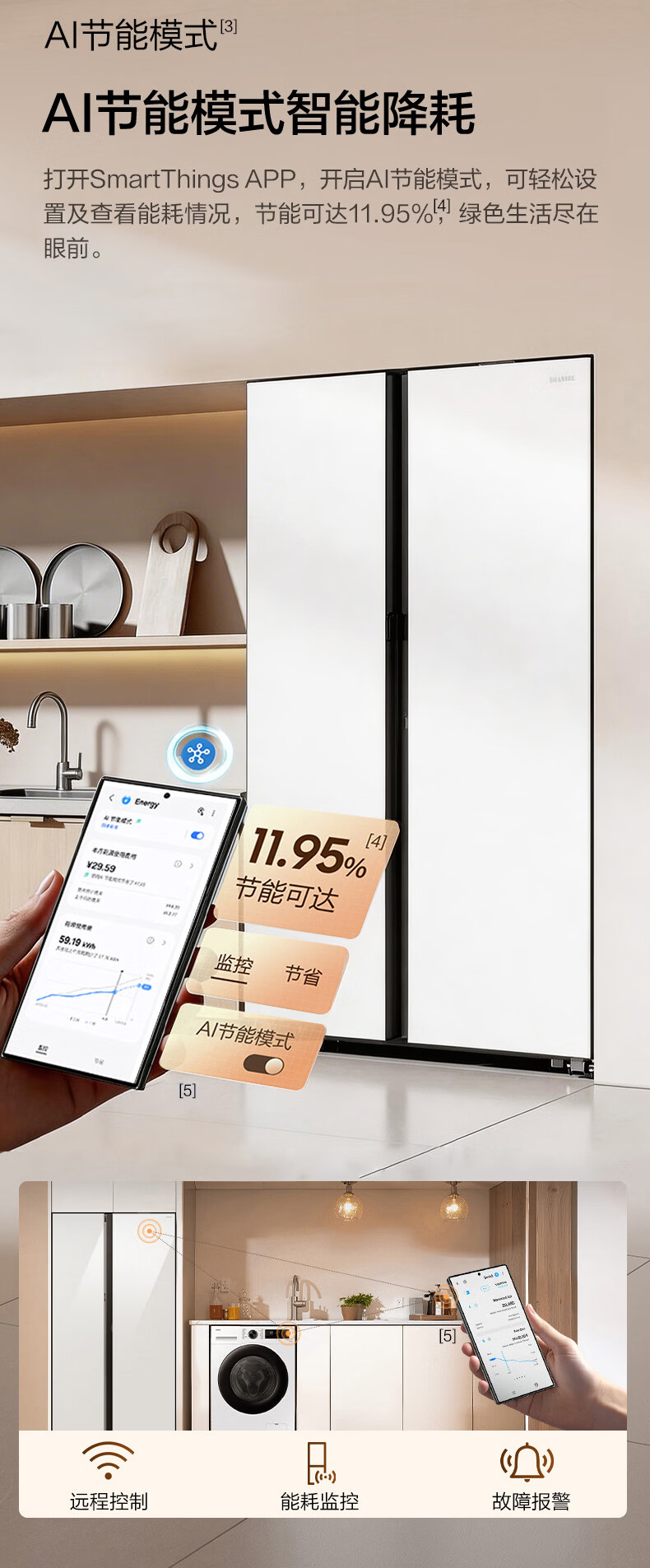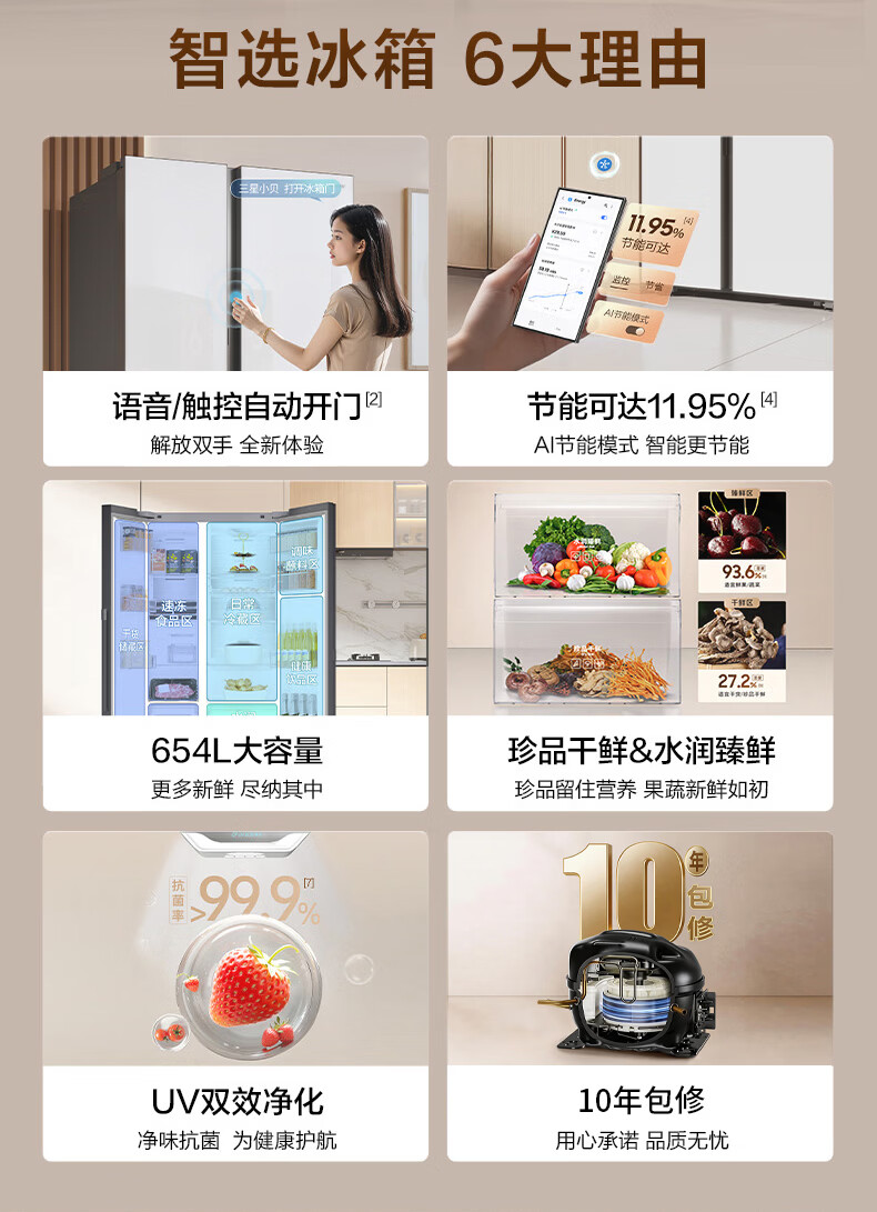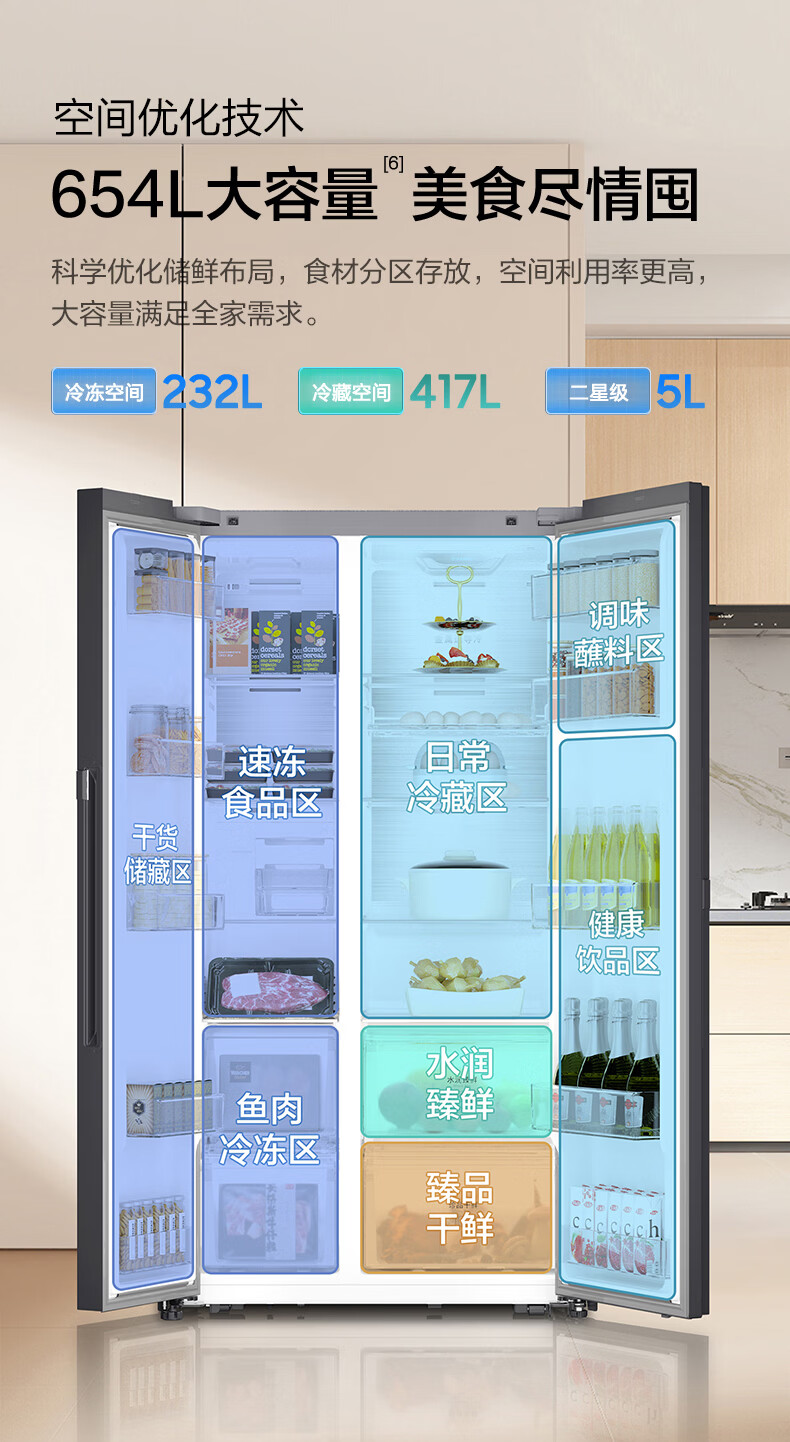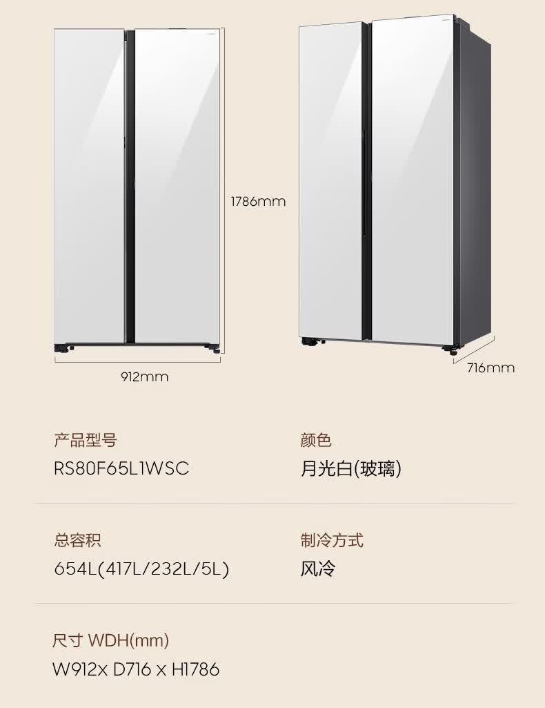 Samsung (SAMSUNG) government subsidy 15% new product AI God Refrigerator 5 Series Renewal Voice Intelligent Control Automatic Door Opening AI Butler 654L Double Door Ice Refrigerator Home Appliances RS80F65L1WSC