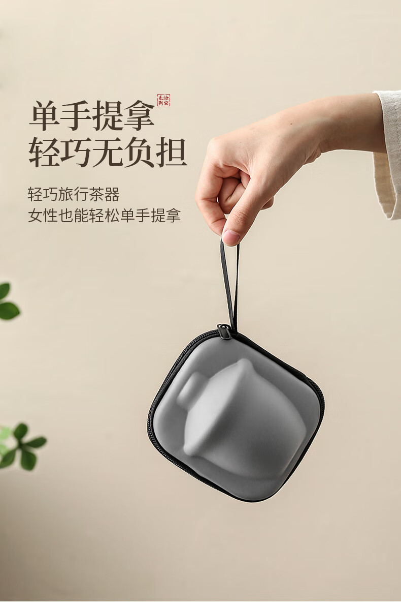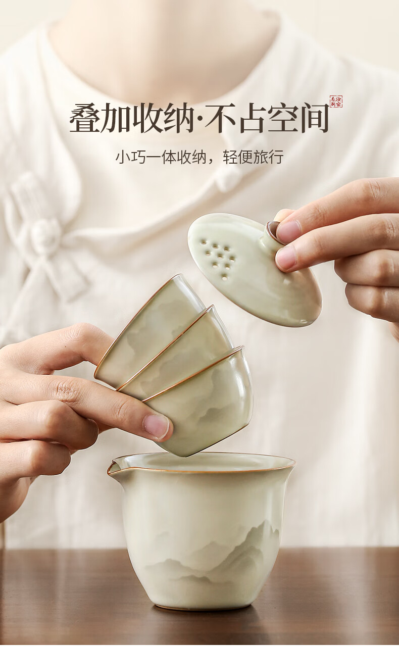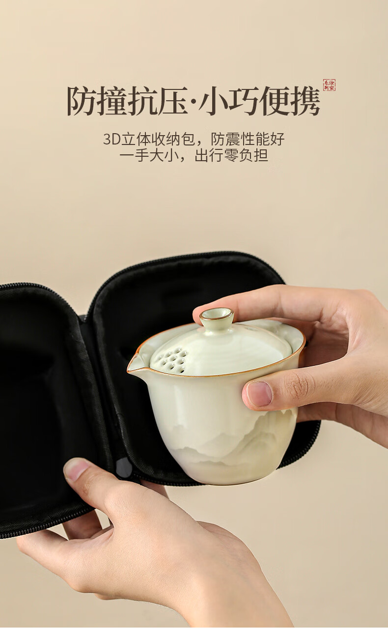 Ru Kiln Travel Tea Set Portable Tea Maker Kung Fu Tea Cup Gift Cup Outdoor Camping Tea Drinking Equipment Mountain and Sea Fog Handheld Pot Three-Cup 4-piece Set + Travel Bag