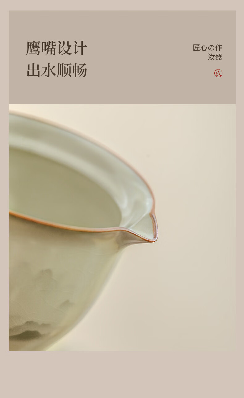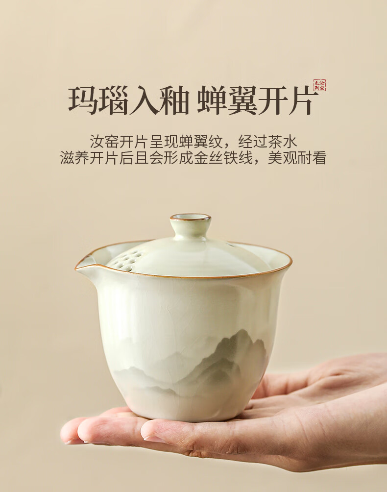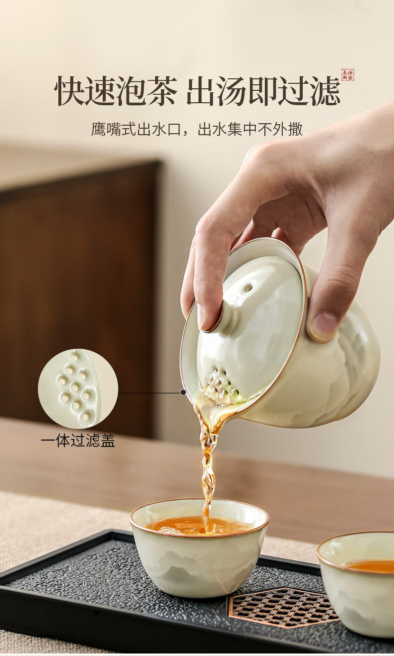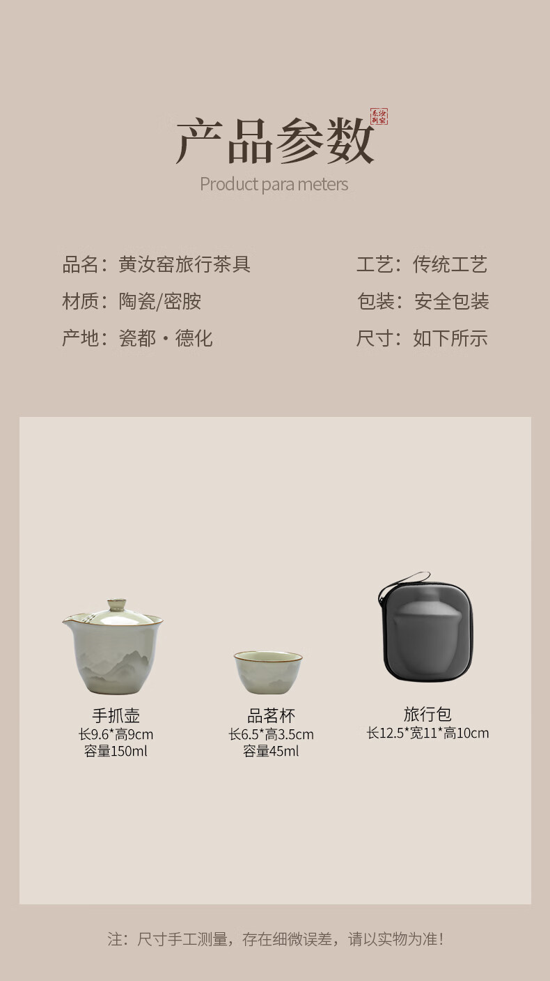 Ru Kiln Travel Tea Set Portable Tea Maker Kung Fu Tea Cup Gift Cup Outdoor Camping Tea Drinking Equipment Mountain and Sea Fog Handheld Pot Three-Cup 4-piece Set + Travel Bag