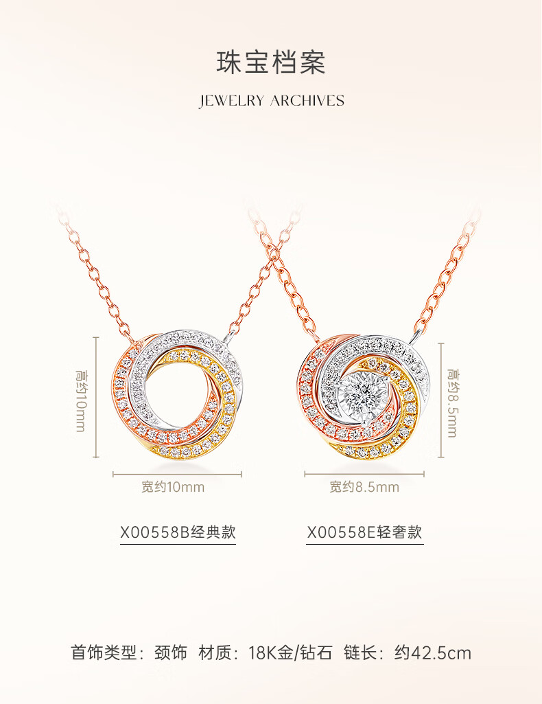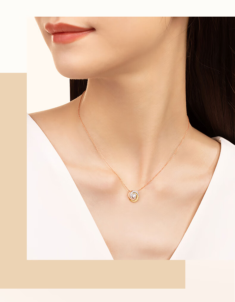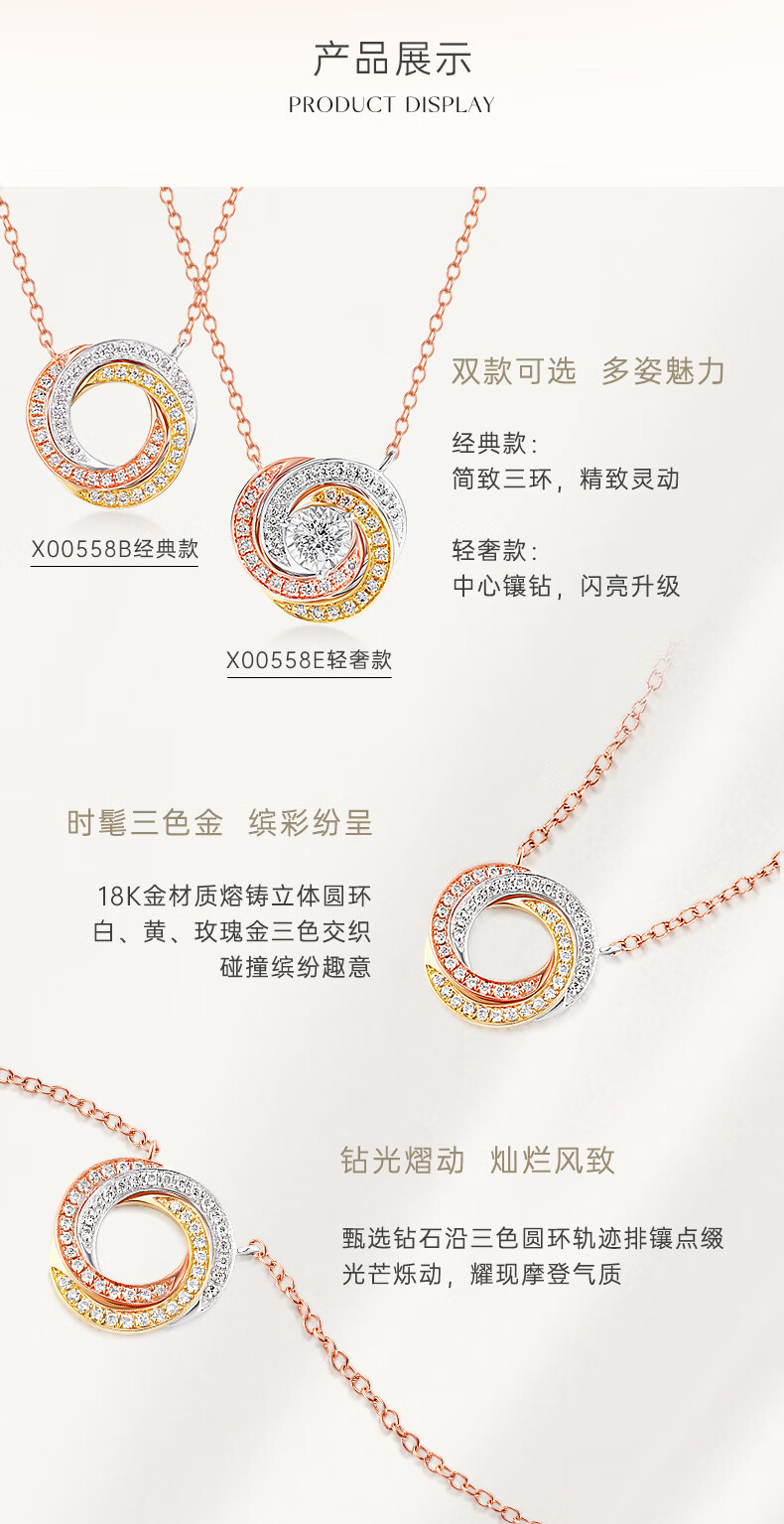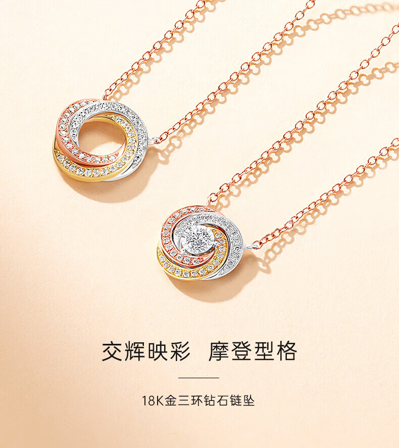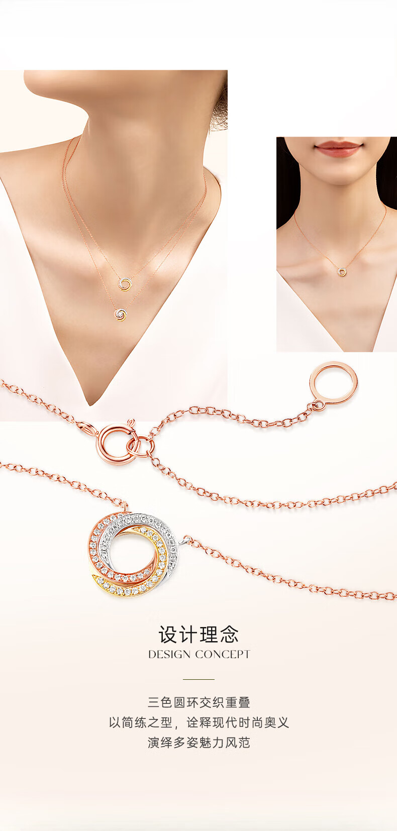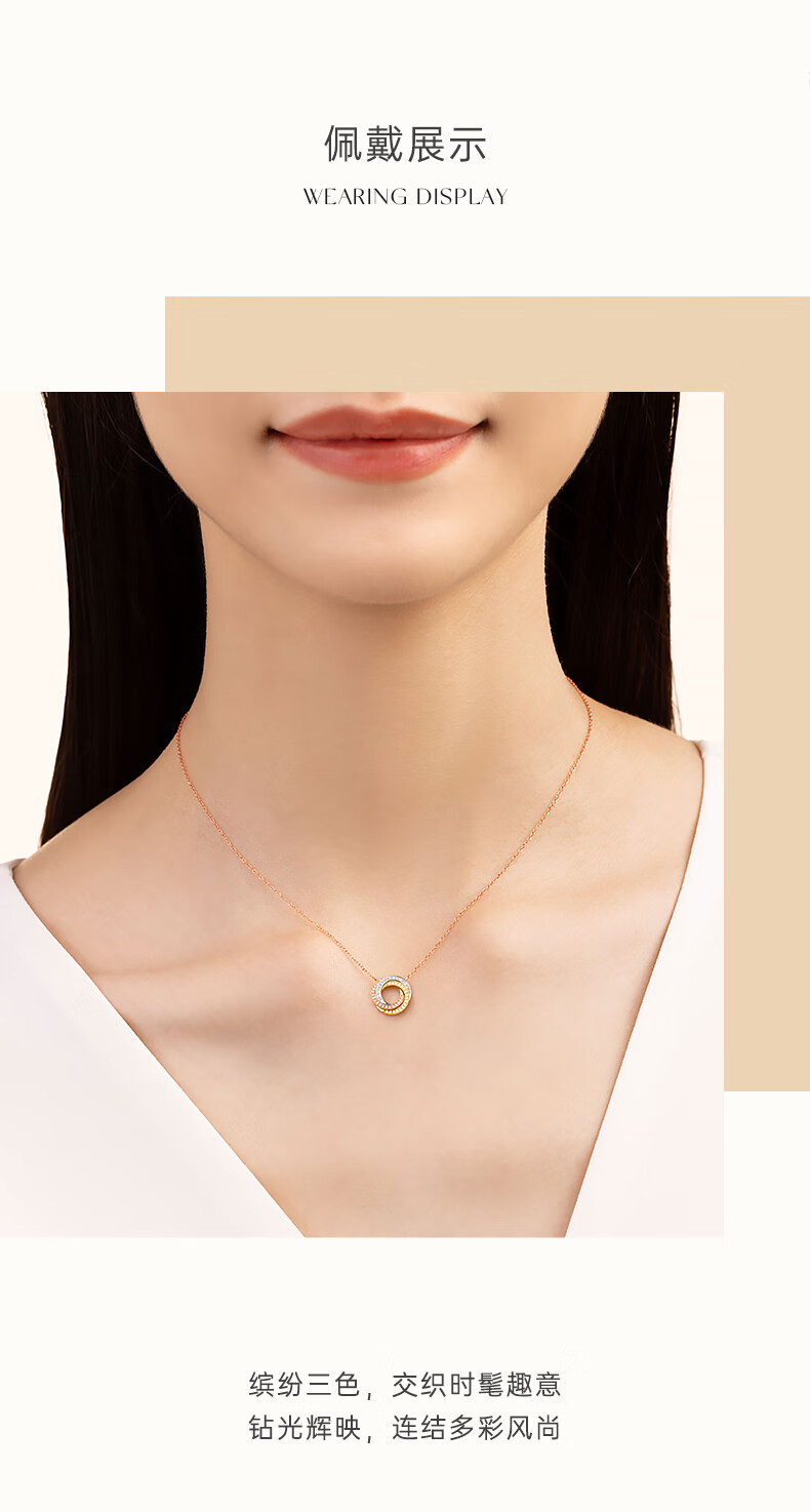 COASZE 18K gold diamond necklace, three-color gold surround, real diamond and colored gold for girlfriend's birthday, light luxury 18K gold diamond necklace
