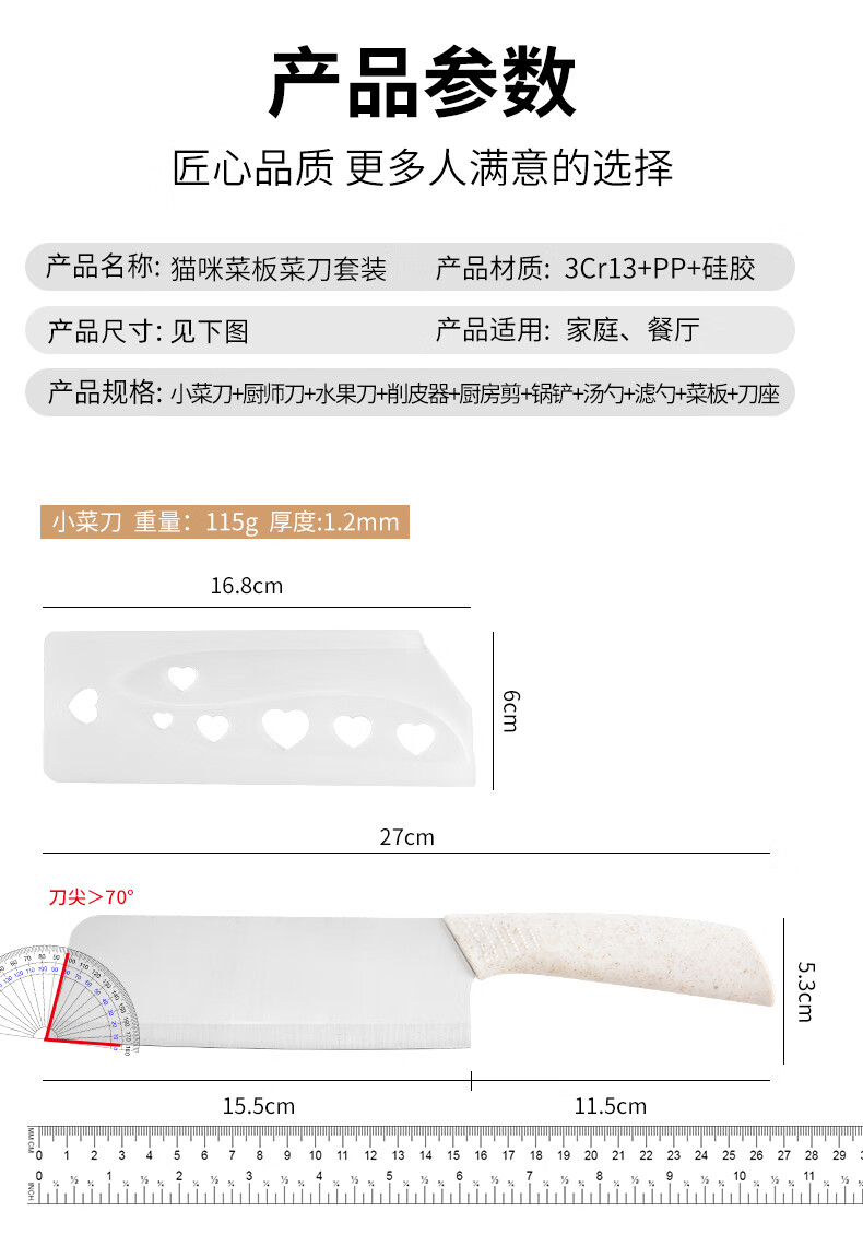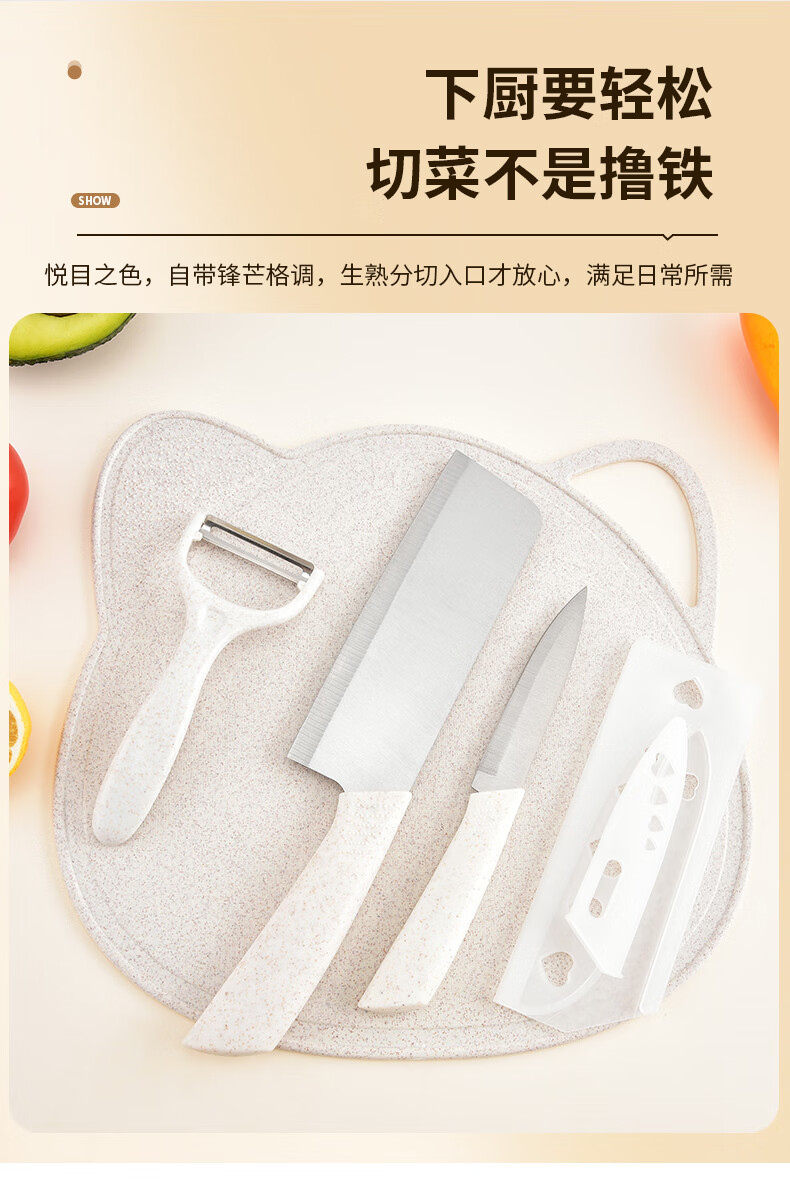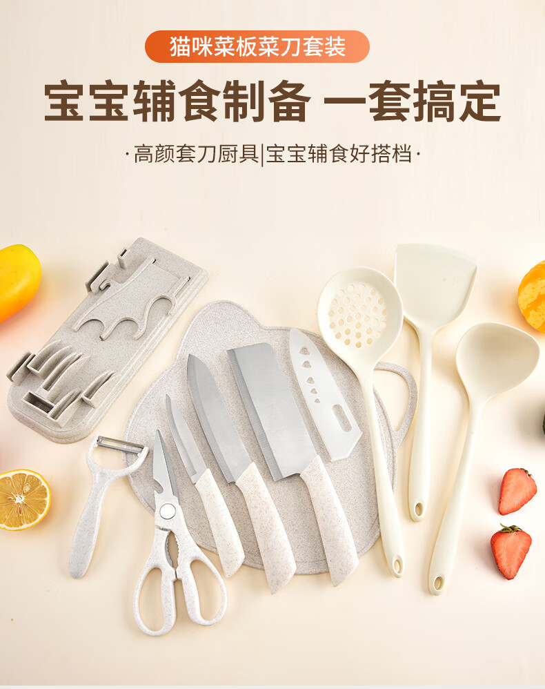 Kitchen knife and cutting board two-in-one knife combination set, meat slicer, sharp women's knife, home kitchen dormitory food supplement, 10 pieces - 3 knives + 3 kitchen utensils + board + scissors + planer + knife holder