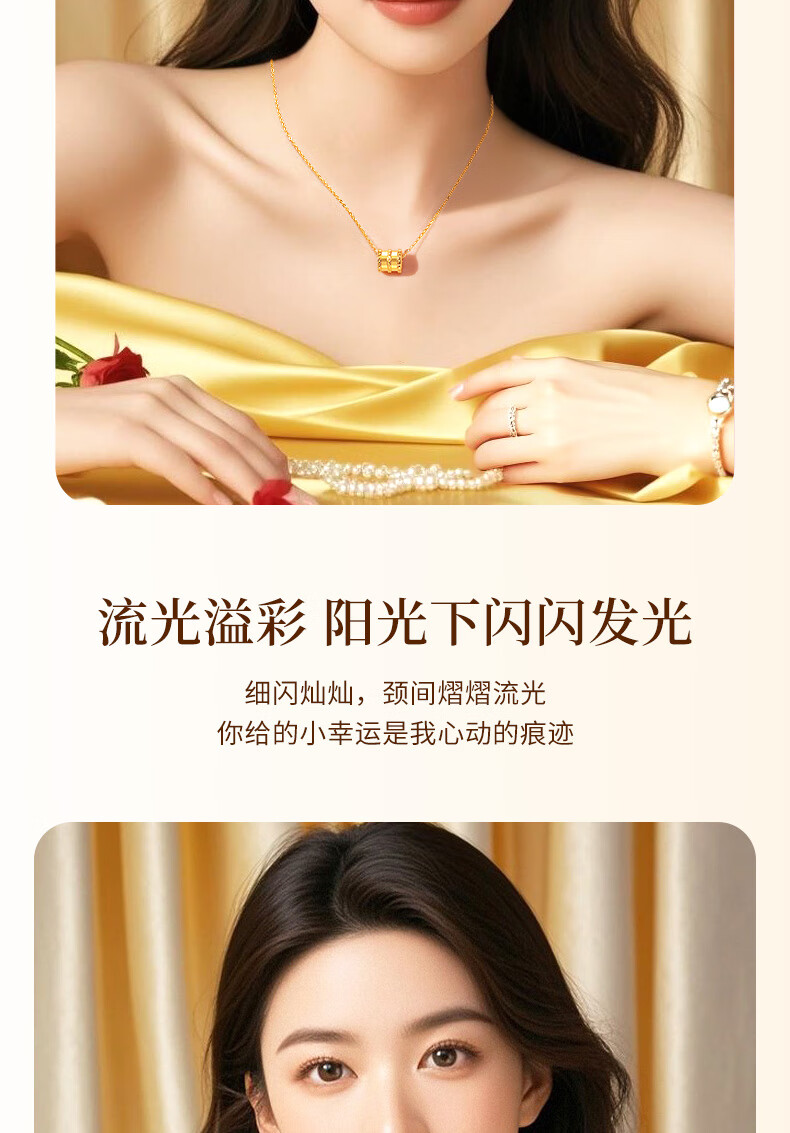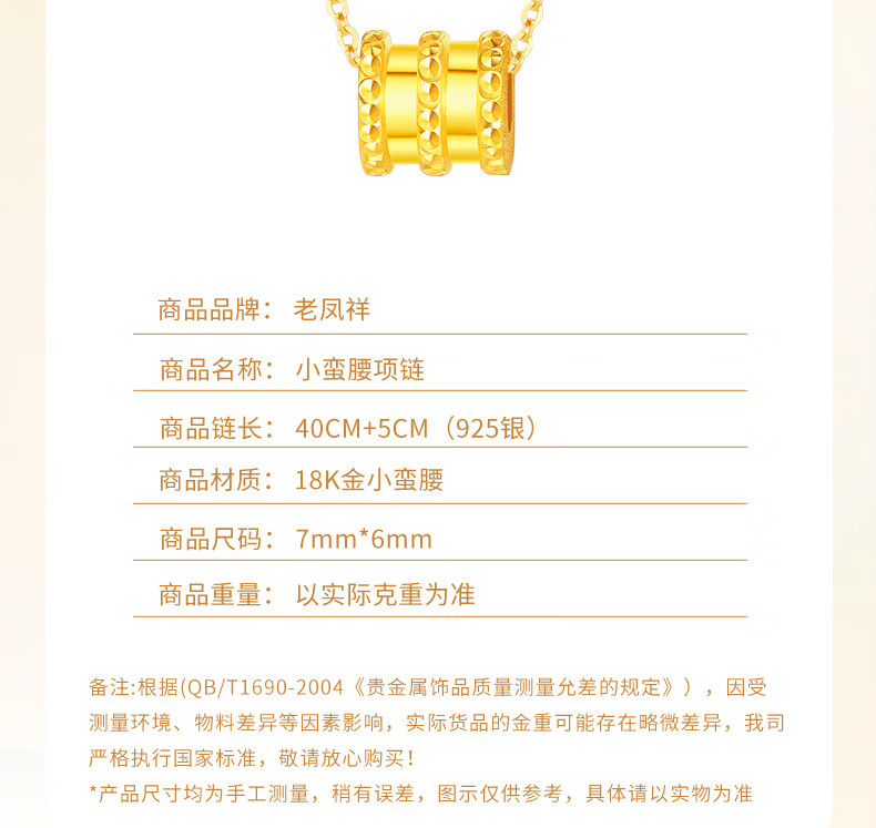 Lao Fengxiang small waist gold necklace for women 18K gold pendant clavicle chain wedding anniversary gift for girlfriend and wife birthday 18k small waist accessories + free 925 silver chain