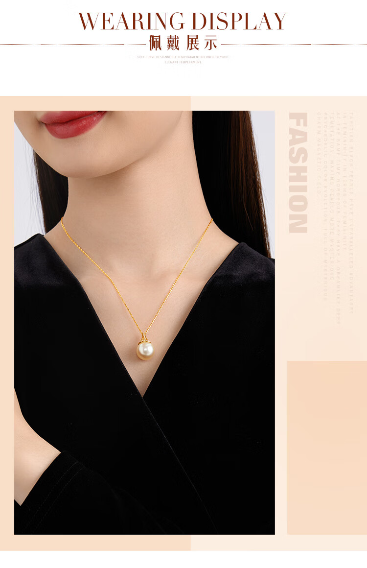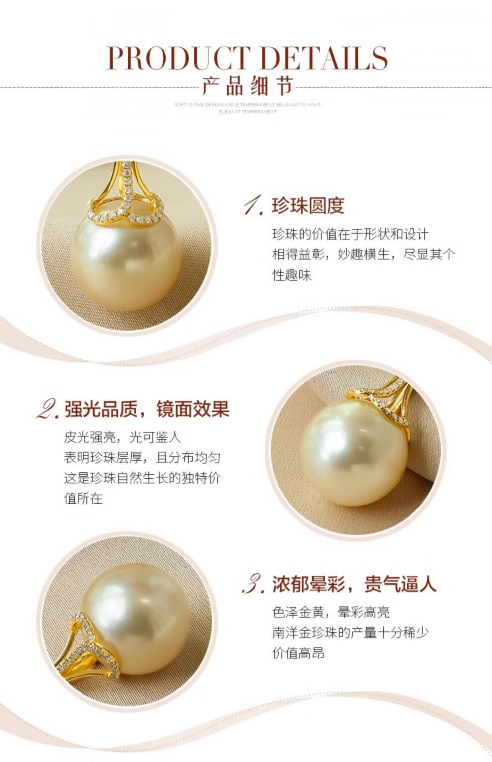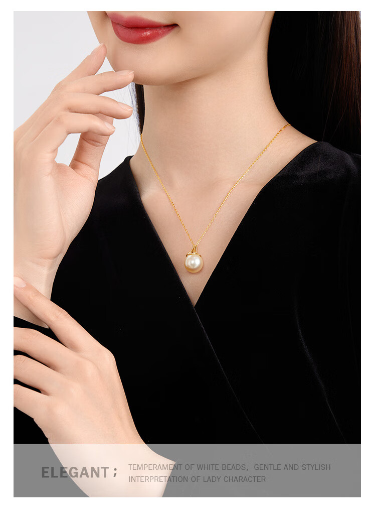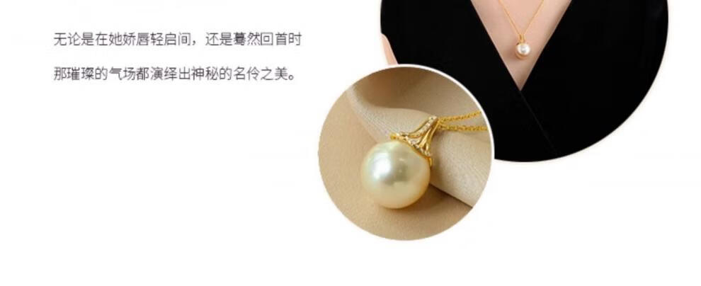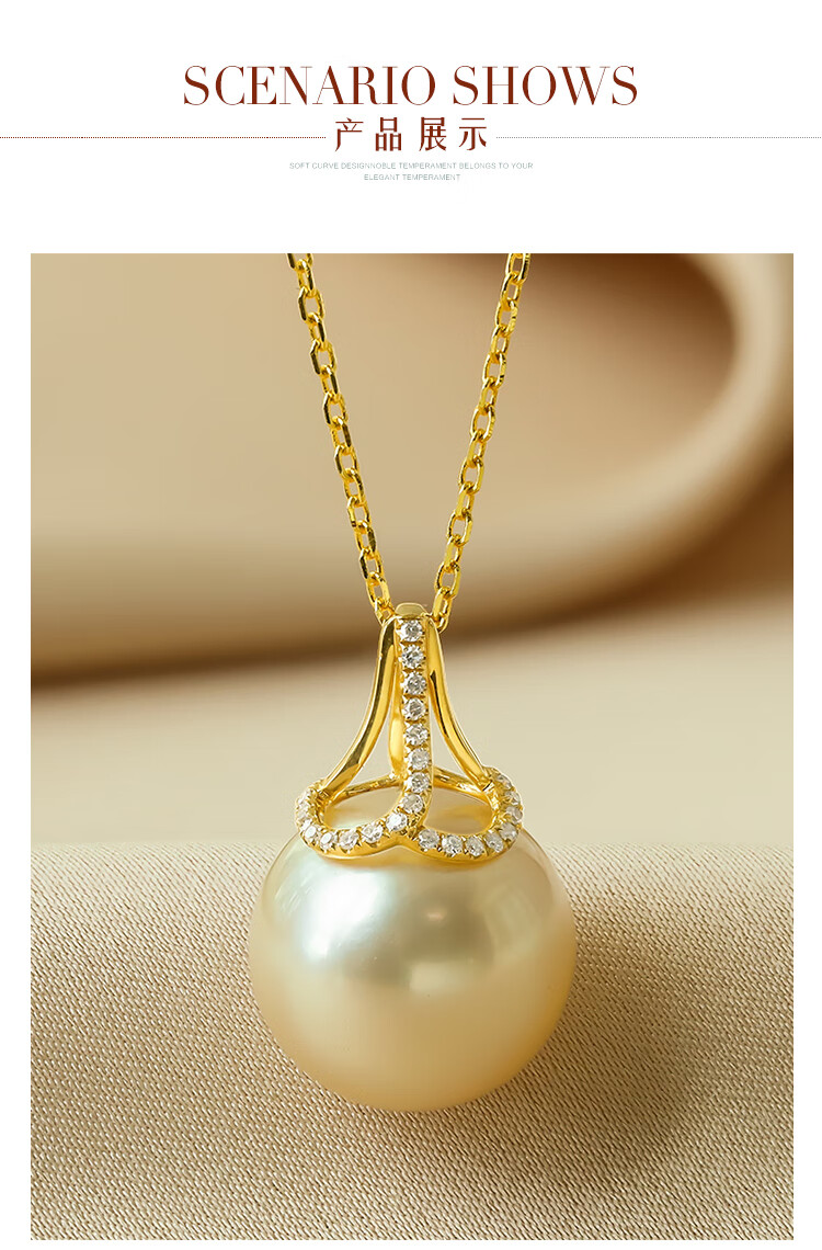 Pearl Queen (PearlQueen) Chinese Valentine's Day gift South Sea gold pearl pendant for women 18K diamond 13-14mm, perfect round, strong light, slight flaws 13-14mm