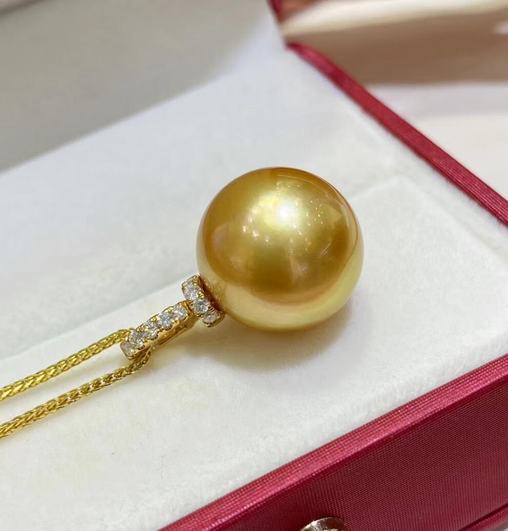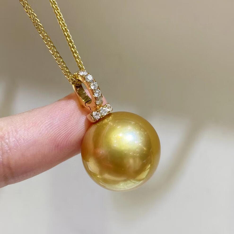 DL 1998 Fat Donglai same style South Sea pearl pendant 18k gold seawater necklace gold beads round strong light rich gold stud earrings 10-11mm