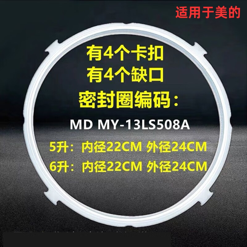 Suitable for Midea electric pressure cooker sealing ring, pressure cooker silicone sealing ring, new and old models 4 liters, 5 liters, 6 liters apron, suitable for Midea sealing ring 4 buckle-5/6L (1 pack)