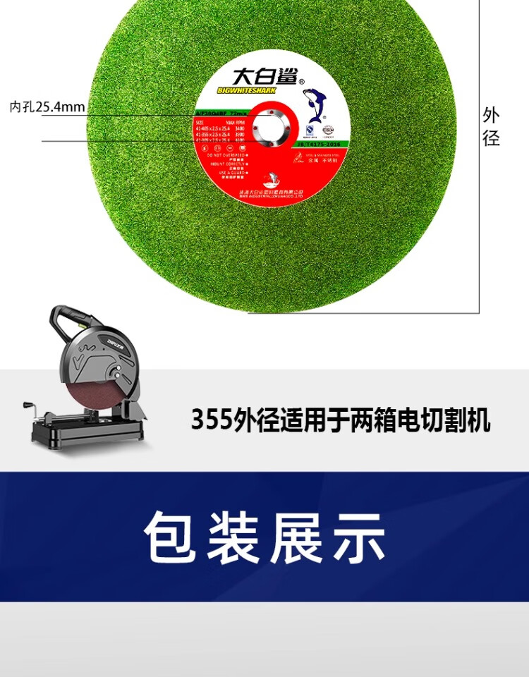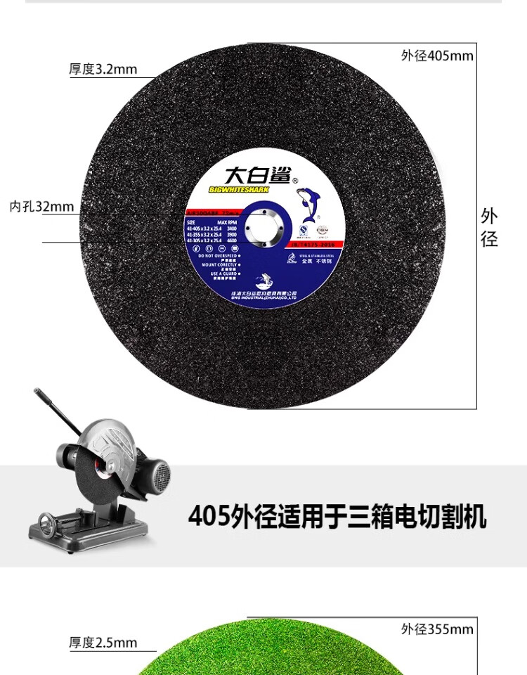 Great White Shark cutting blade 400 type grinding wheel blade profile cutting machine 350mm stainless steel metal large cutting blade saw blade 355x3.2x25.4mm thickened black durable type 5 pieces